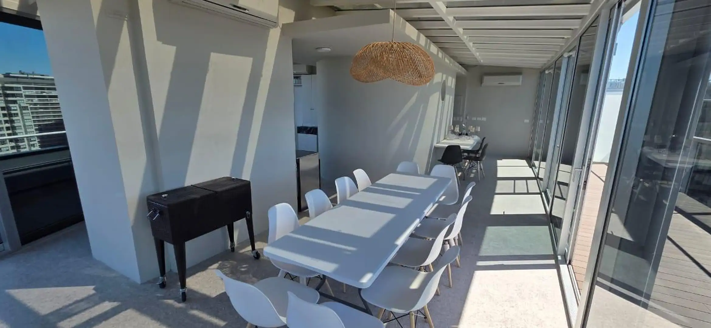 Penthouse en alquiler de 3 dormitorios en Regatta Olivos, en dos pisos. Tiene 273,33 m² cubiertos, balcón de 48,16 m², terraza de 87 m² y un quincho de 75 m². Cuenta con 3 cocheras y 2 bauleras, vigilancia 24 h y palier exclusivo con acceso no privado por el 1501 y 02. Carpinterías Shuco con DVH, aires acondicionados split en todos los ambientes y calefacción y aire acondicionado central. En amenities: gimnasio, jacuzzi, piscina cubierta, terraza común con asador y solarium.