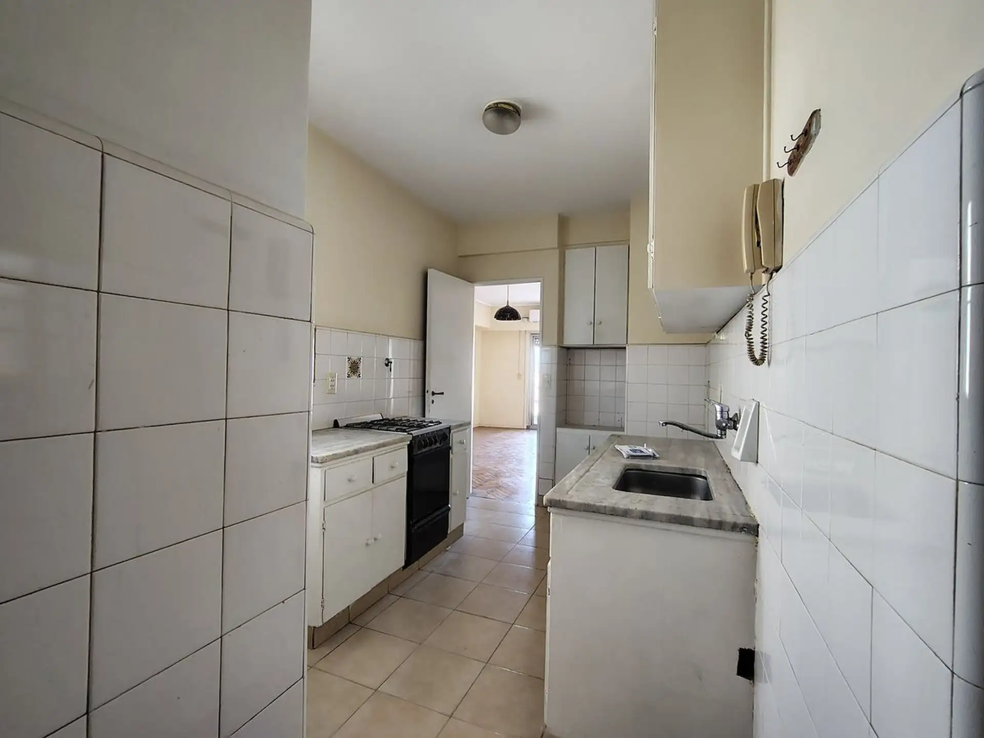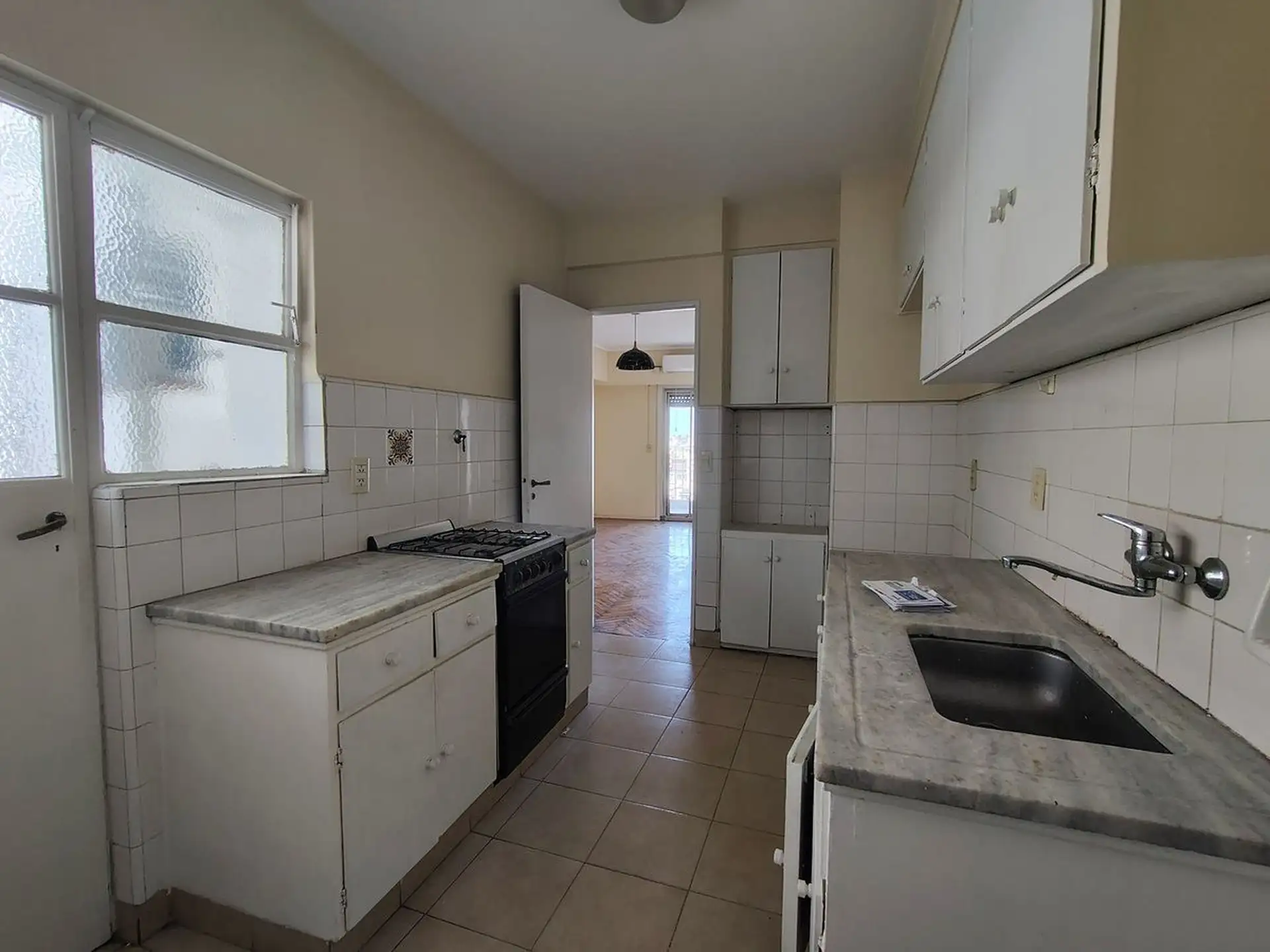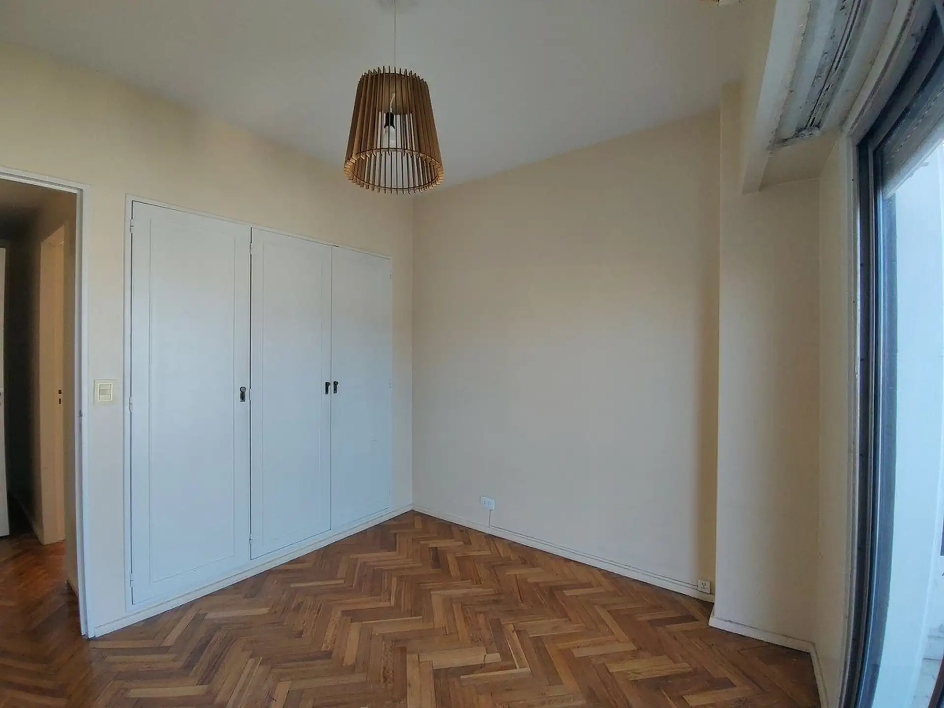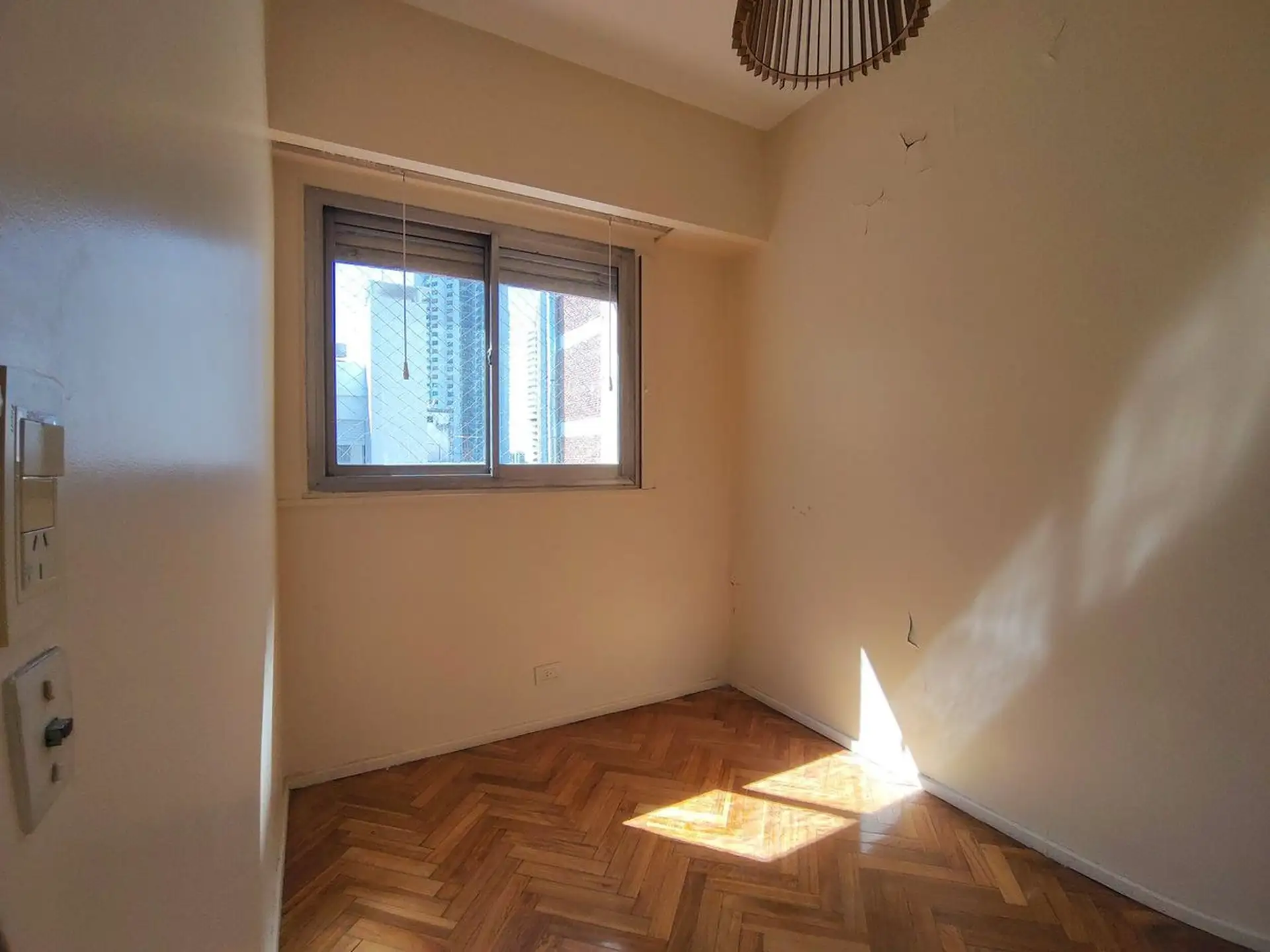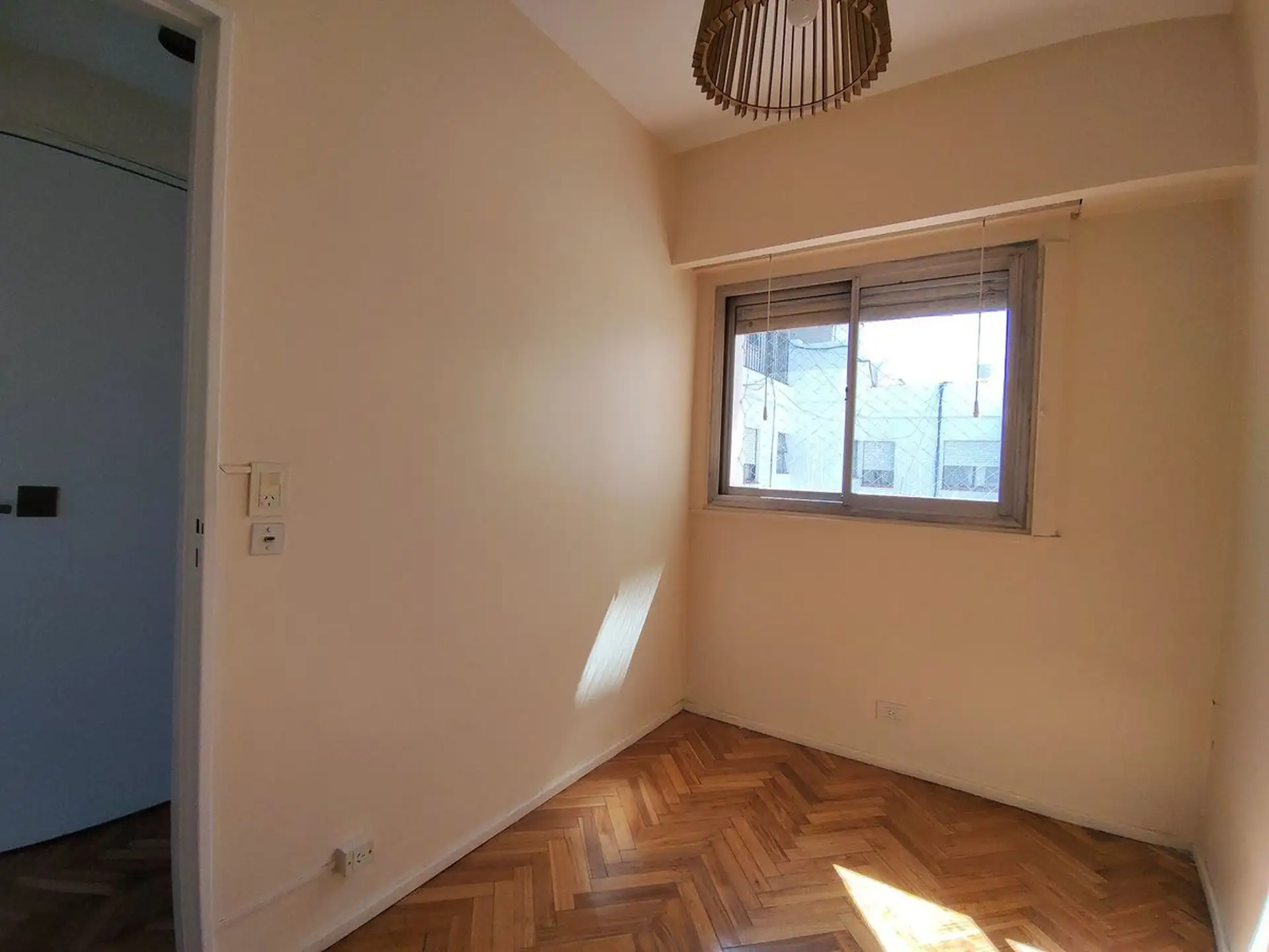 Departamento de 3 ambientes en Palermo, sobre Av. Santa Fe, en el piso 14. Incluye living comedor con salida a balcón terraza, 2 dormitorios con placard empotrado y un baño completo. Cuenta con cocina independiente y lavadero con cerramiento, pileton de lavado y conexión para lavarropas, además de una habitación de servicio u oficina con baño con ducha. Se alquila con 2 AA (F/C) nuevos y tiene cochera que puede adicionarse por $200.000. El alquiler es opcional en dólares (u$s 950).
