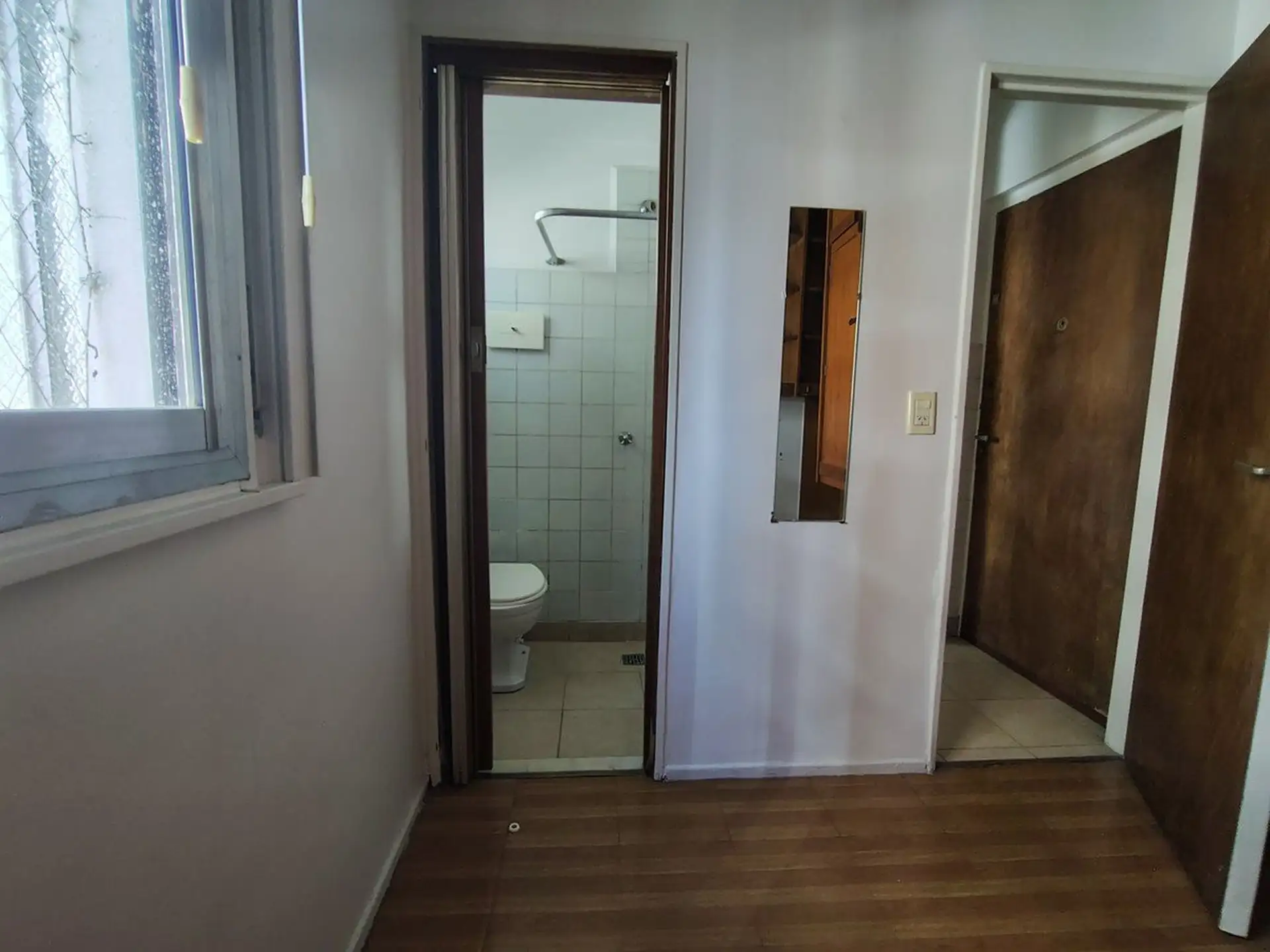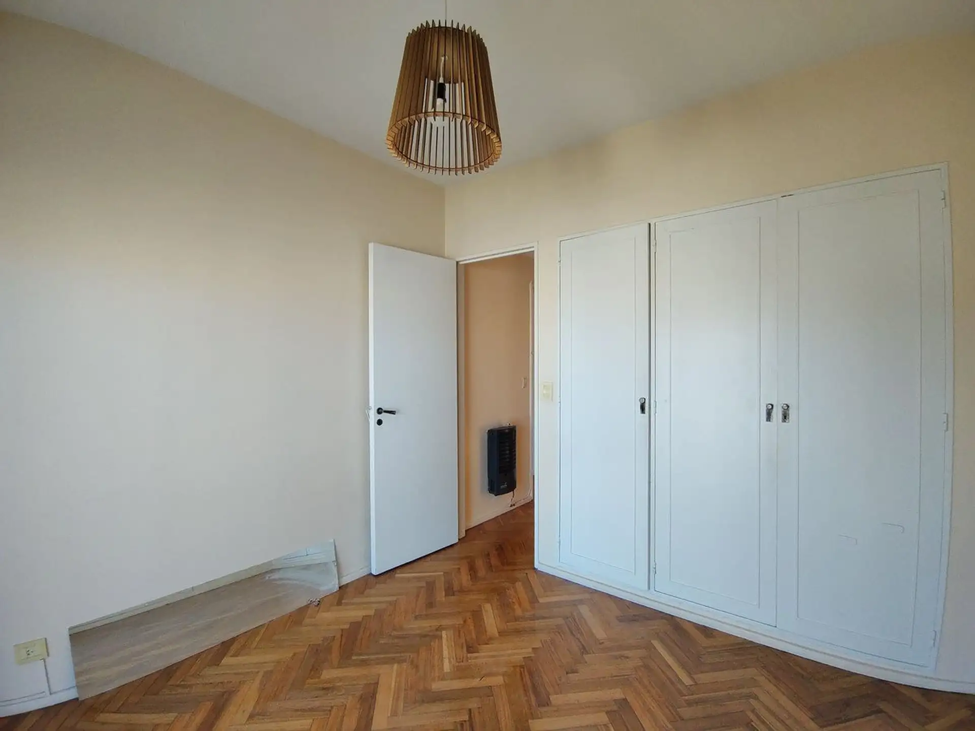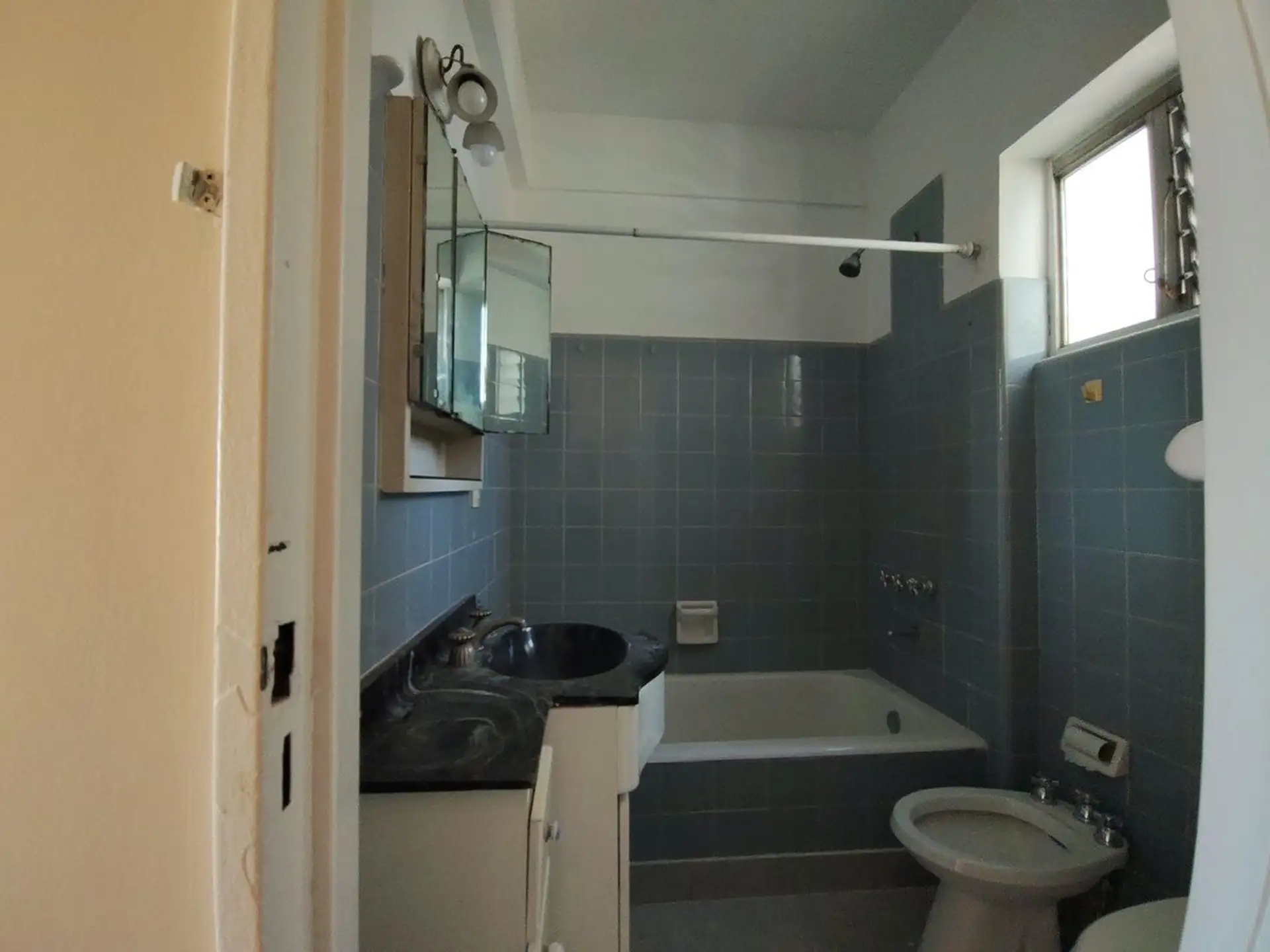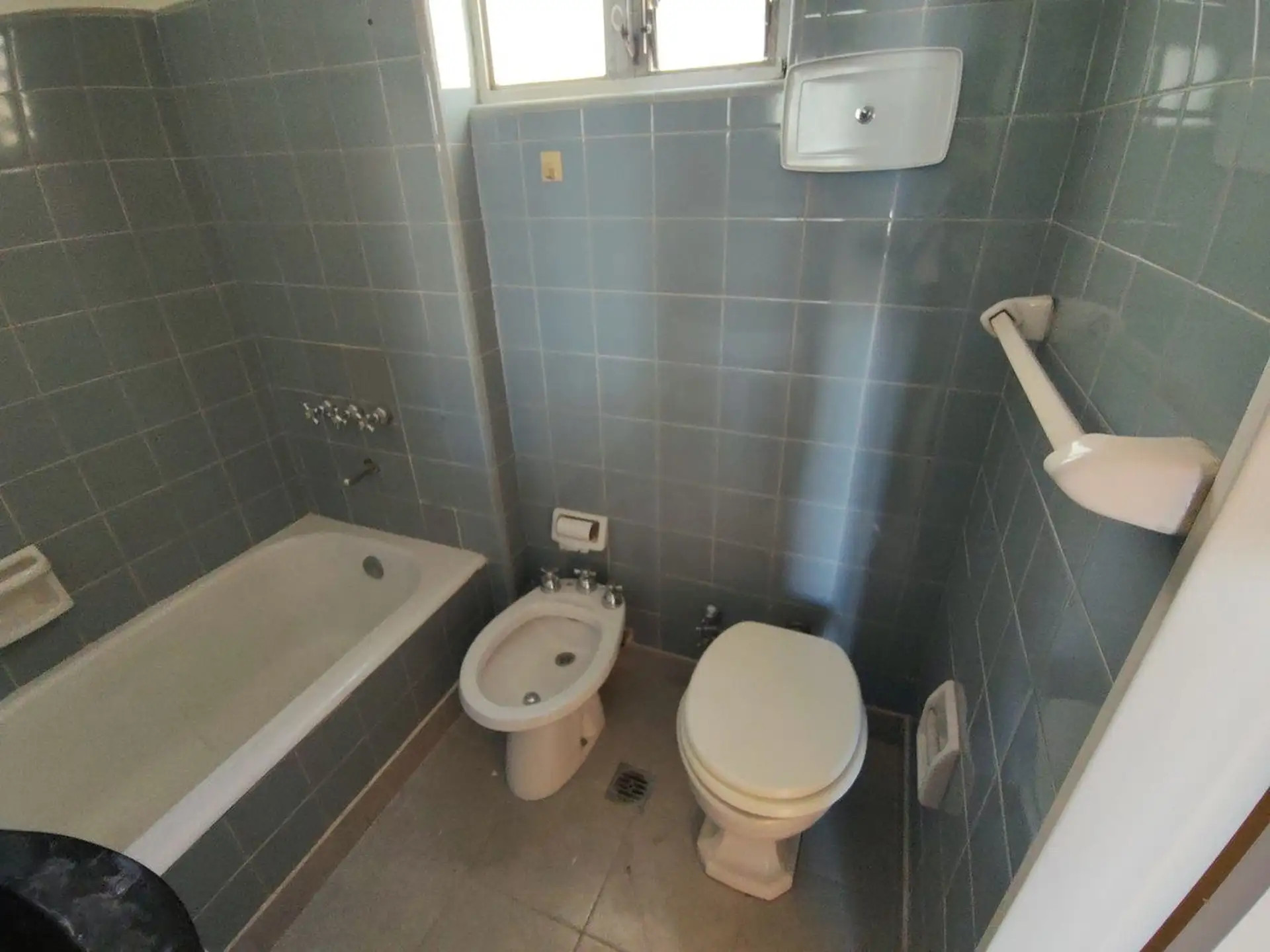 Departamento de 3 ambientes en Palermo, sobre Av. Santa Fe, en el piso 14. Incluye living comedor con salida a balcón terraza, 2 dormitorios con placard empotrado y un baño completo. Cuenta con cocina independiente y lavadero con cerramiento, pileton de lavado y conexión para lavarropas, además de una habitación de servicio u oficina con baño con ducha. Se alquila con 2 AA (F/C) nuevos y tiene cochera que puede adicionarse por $200.000. El alquiler es opcional en dólares (u$s 950).