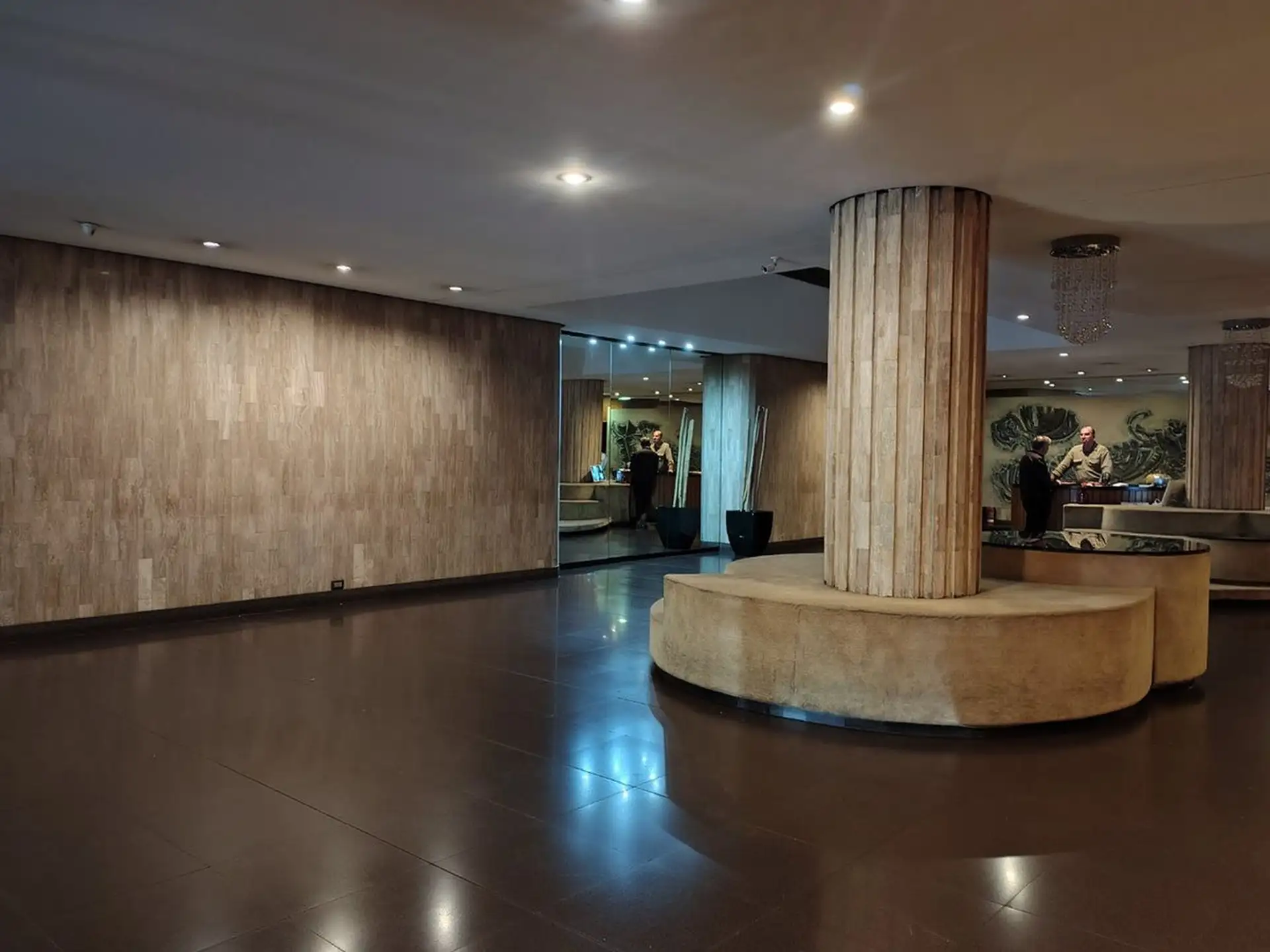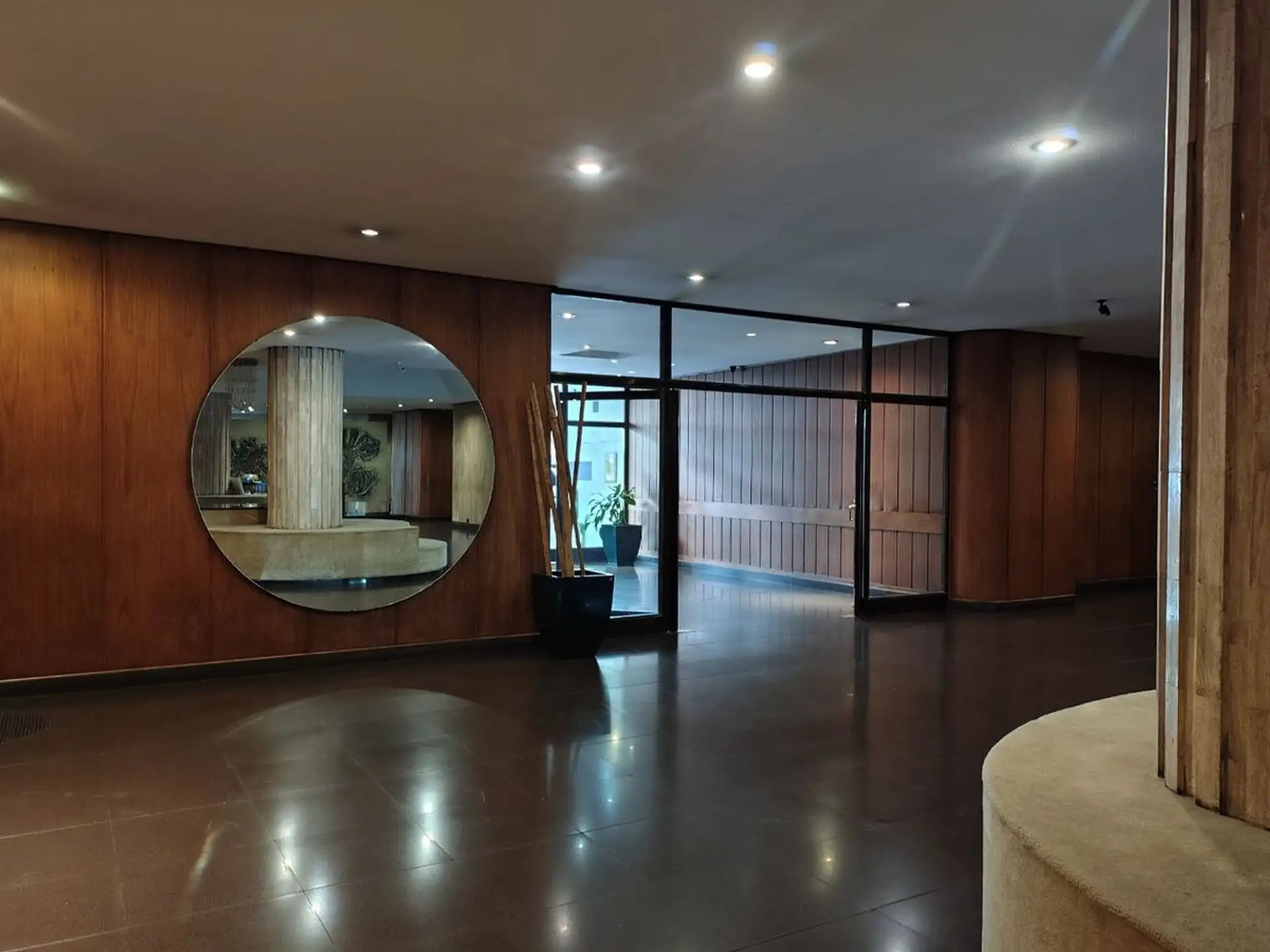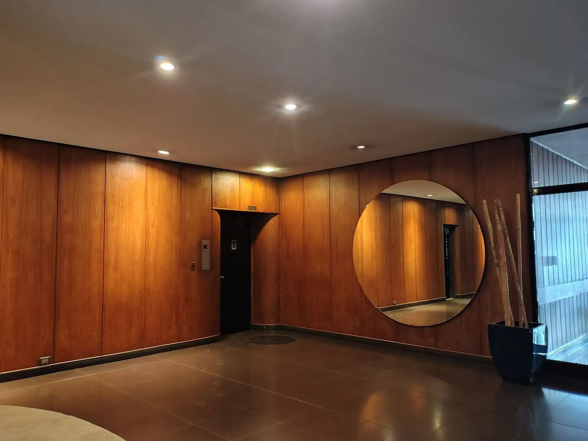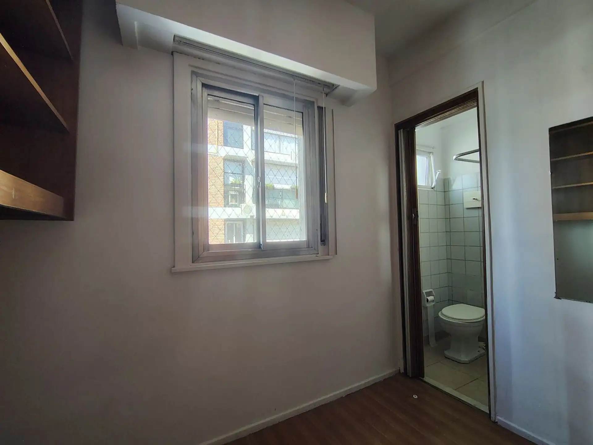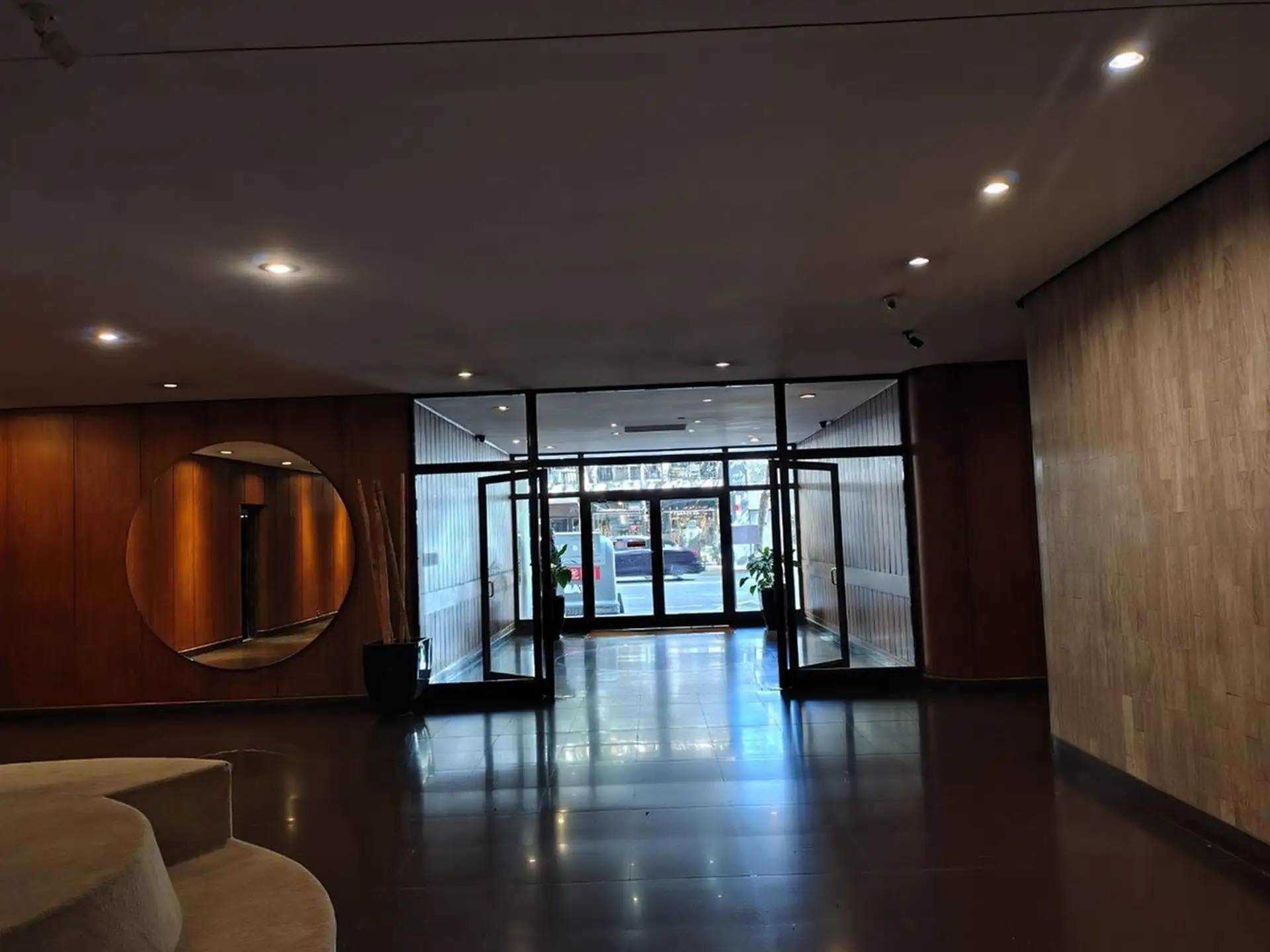 Departamento de 3 ambientes en Palermo, sobre Av. Santa Fe, en el piso 14. Incluye living comedor con salida a balcón terraza, 2 dormitorios con placard empotrado y un baño completo. Cuenta con cocina independiente y lavadero con cerramiento, pileton de lavado y conexión para lavarropas, además de una habitación de servicio u oficina con baño con ducha. Se alquila con 2 AA (F/C) nuevos y tiene cochera que puede adicionarse por $200.000. El alquiler es opcional en dólares (u$s 950).
