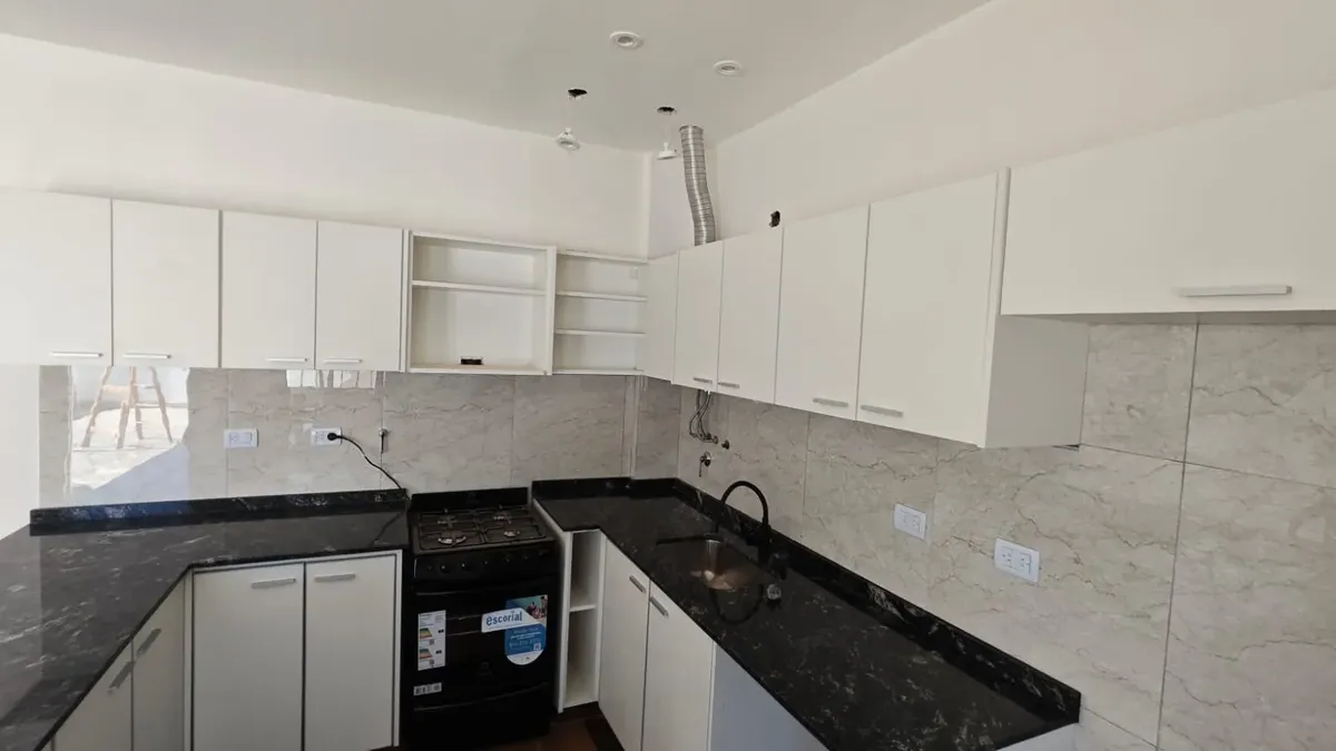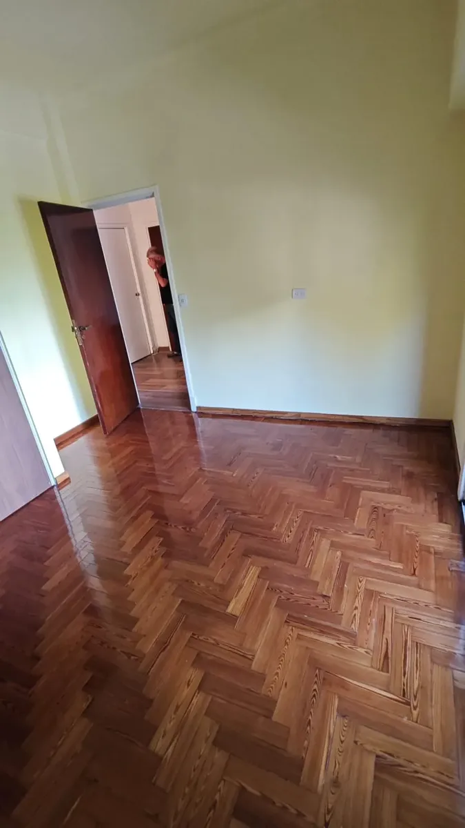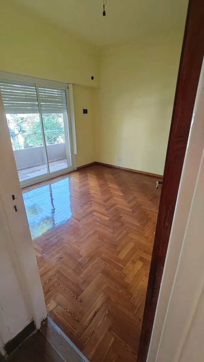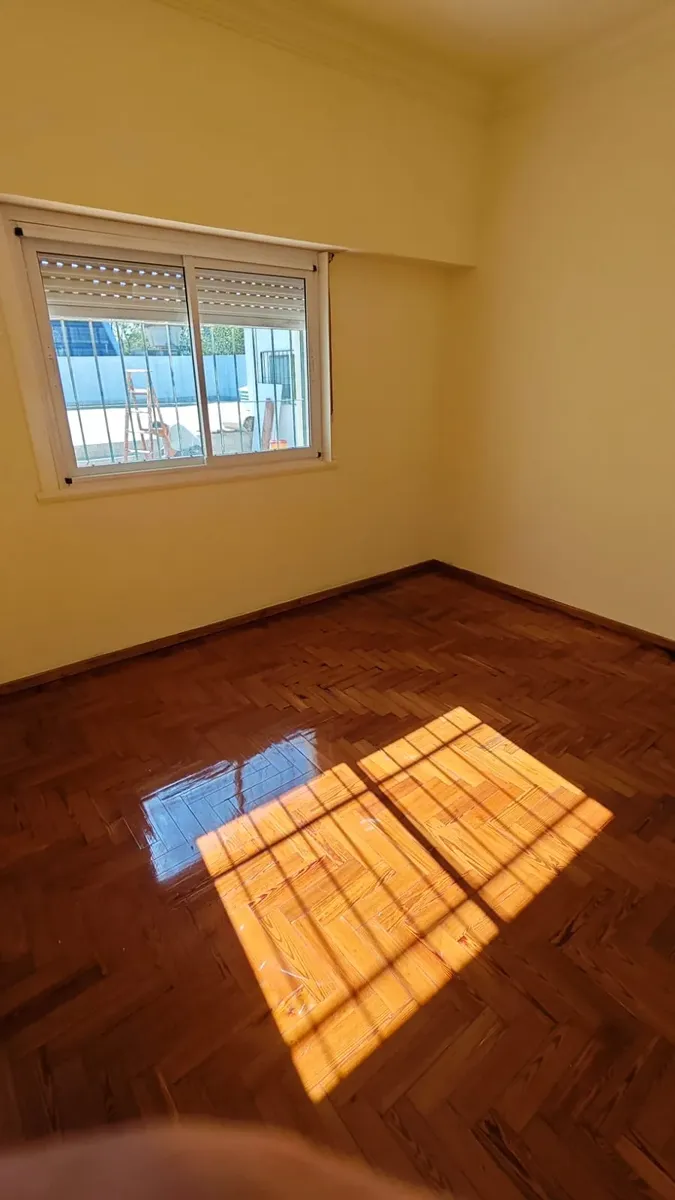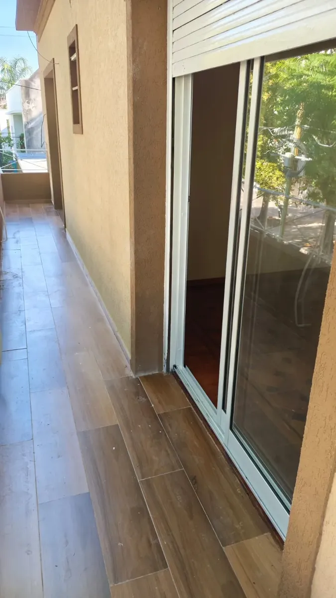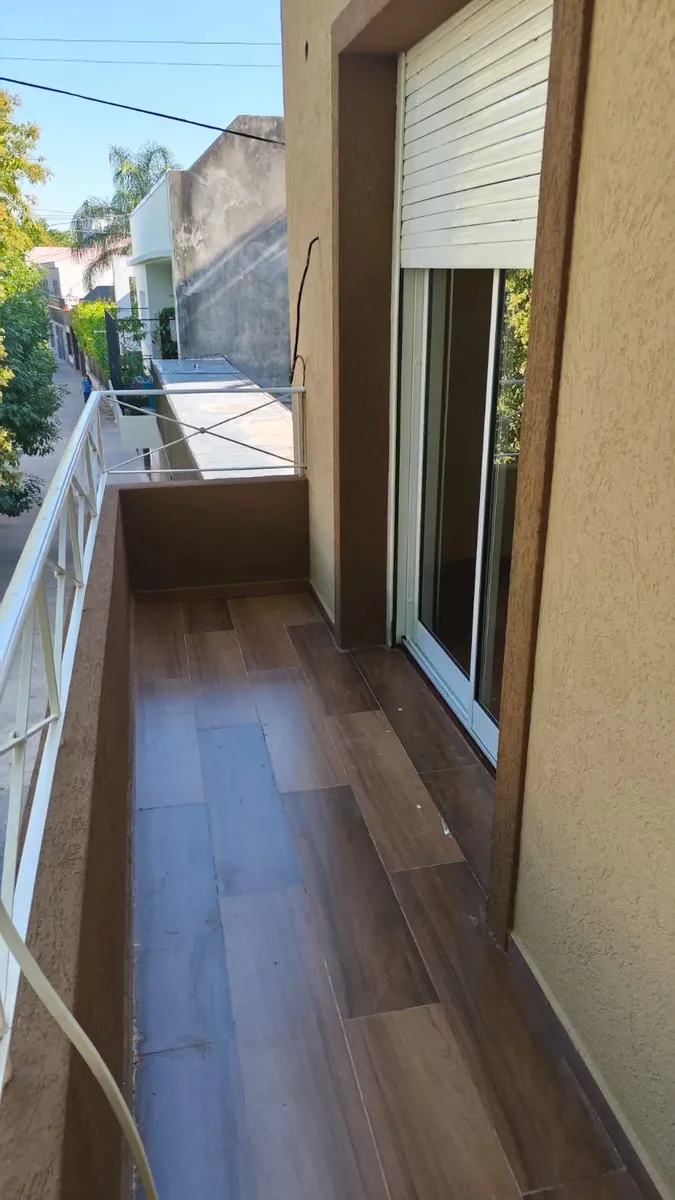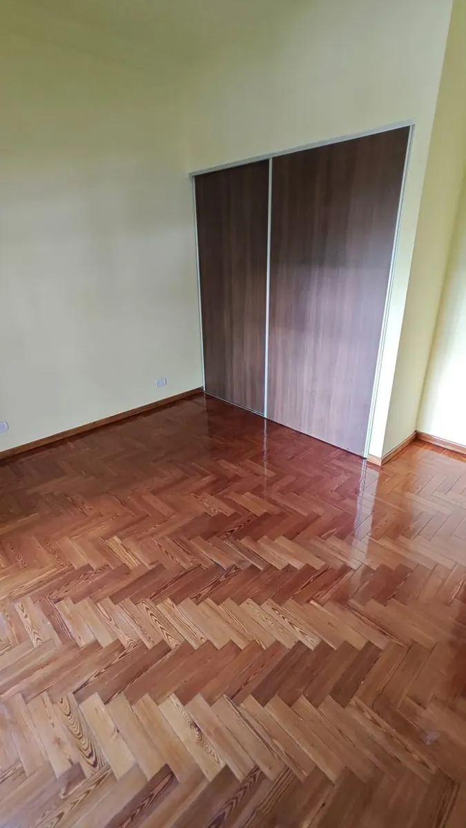Casa en 1er piso, refaccionada. Cuenta con 3 habitaciones, 2 baños completos y cocina integrada al comedor. Dispone de un patio de 120 m².