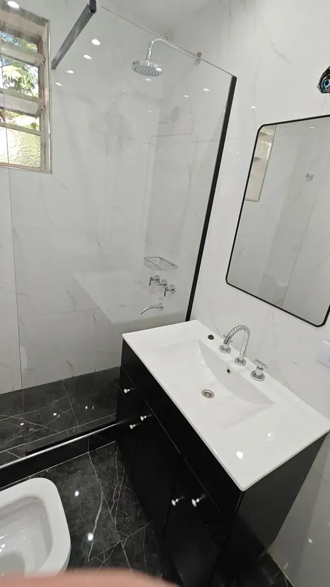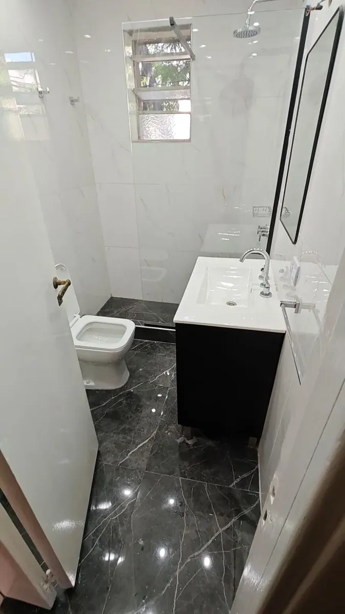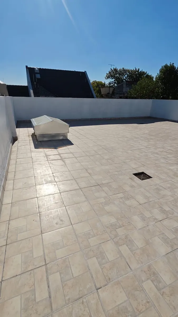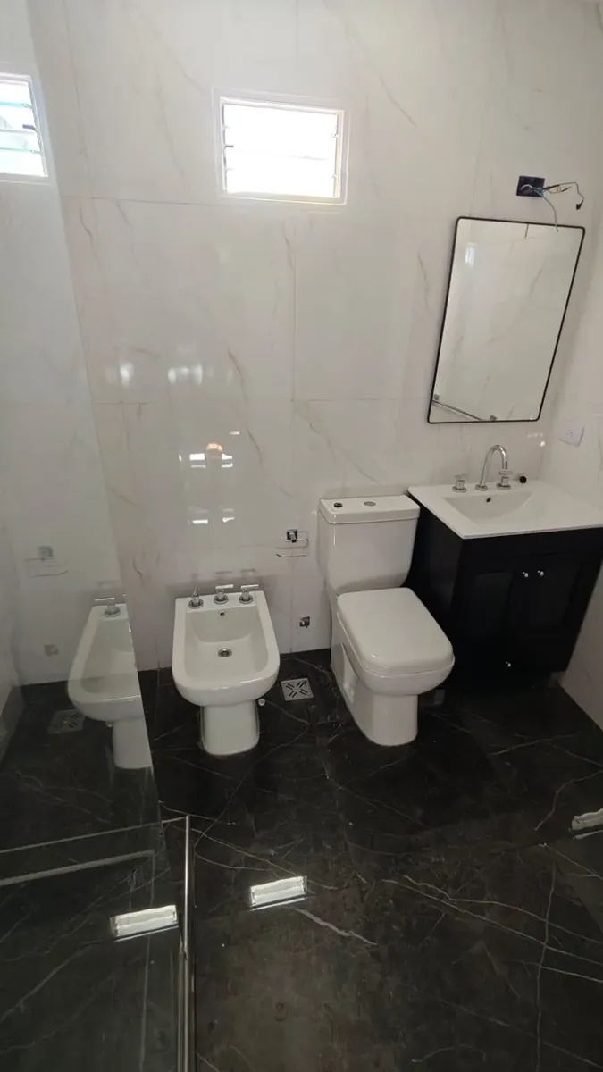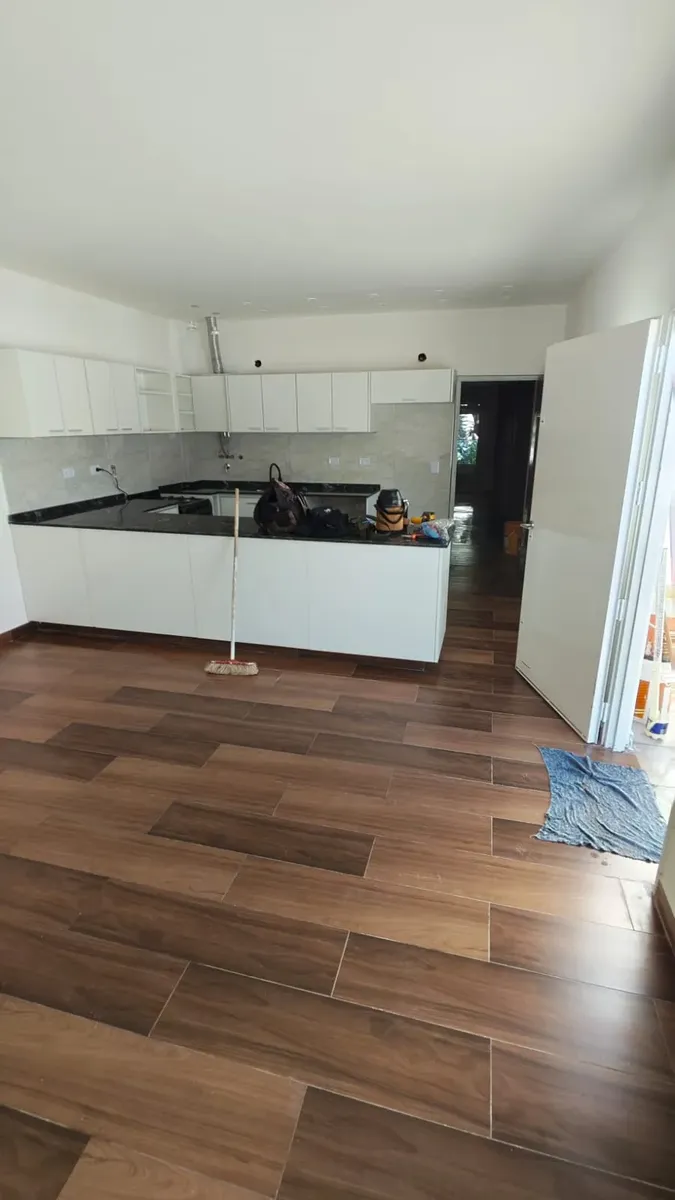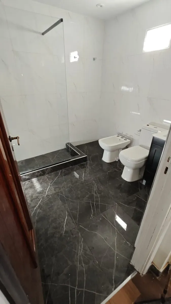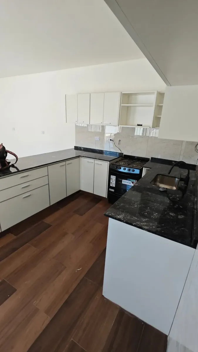 Casa en 1er piso, refaccionada. Cuenta con 3 habitaciones, 2 baños completos y cocina integrada al comedor. Dispone de un patio de 120 m².