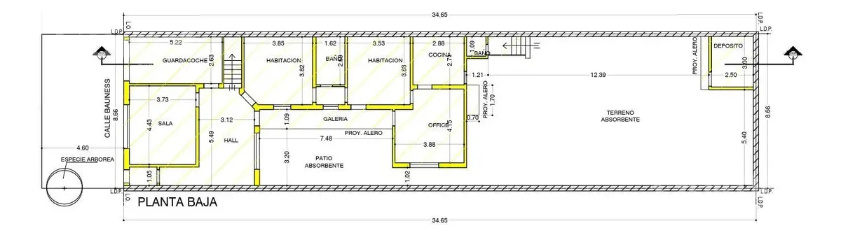 Casa de uso comercial, no apta para vivienda, en Villa Urquiza. Se alquila para emprendimiento gastronómico, oficinas o showroom. Desarrollada sobre un lote propio de 8,66 x 34,64 m, con 300 m² de superficie total y 179 m² cubiertos, a reciclar. Dispone de sala al frente de 4,43 x 3,73 m, hall de distribución, cochera fija cubierta y dos habitaciones amplias; al contrafrente tiene un patio descubierto de 8,66 x 12,39 m.