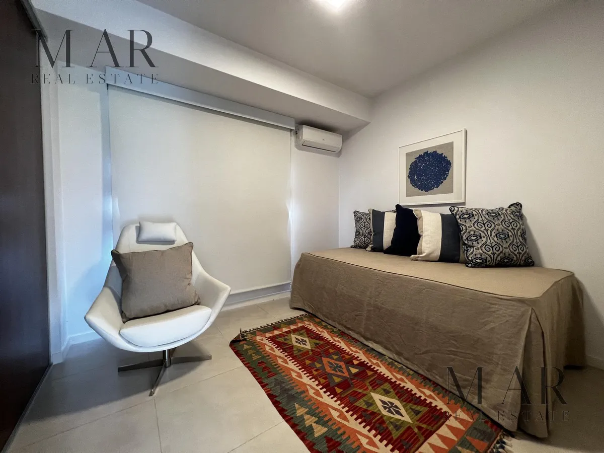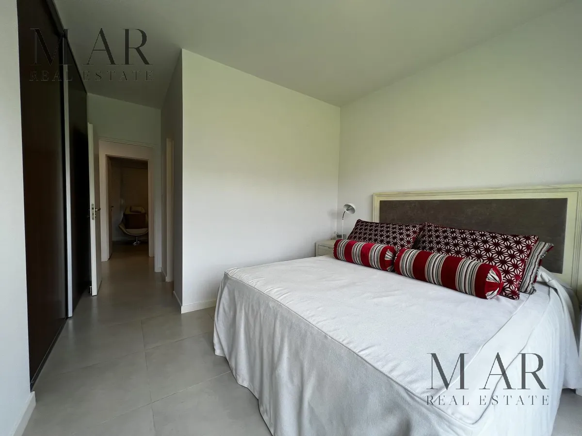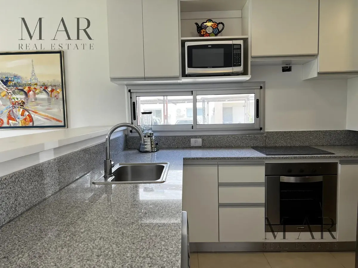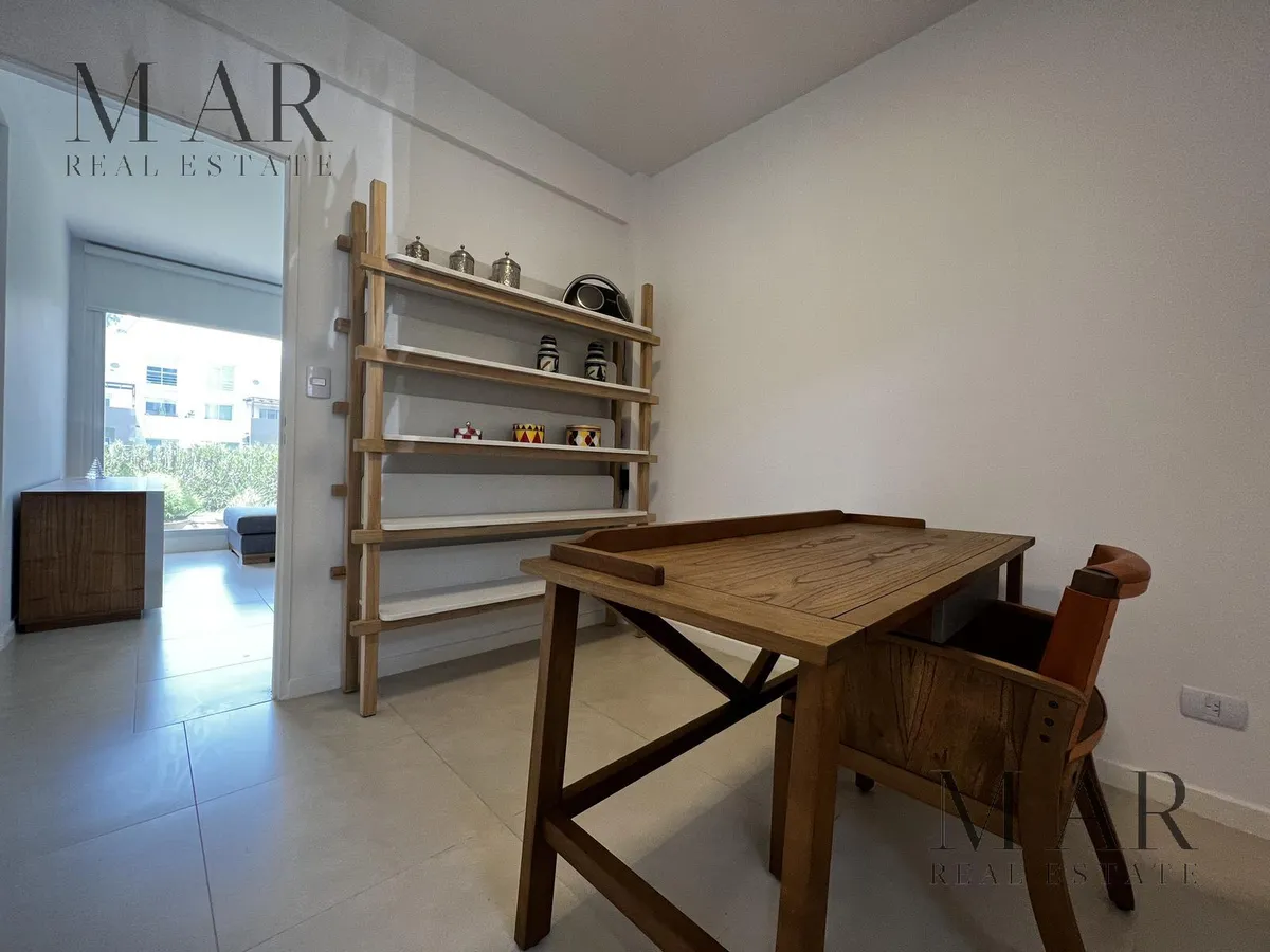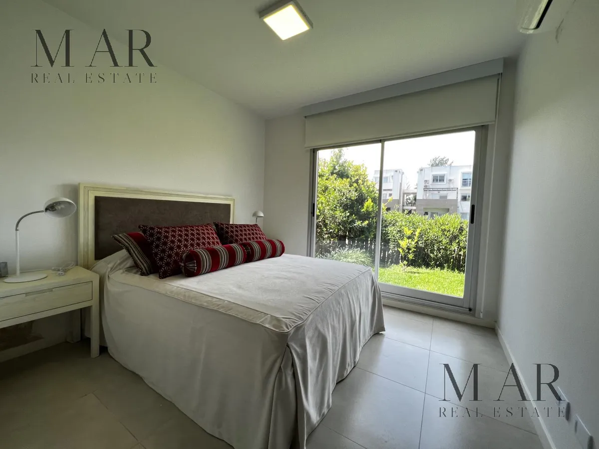 Departamento de 4 ambientes con jardín en Los Senderos, Nordelta, Tigre. Incluye cortinas, luces y aires acondicionados en todos los ambientes. Cuenta con living comedor, cocina semi-integrada con barra, lavadero y 1 dormitorio en suite, más 2 dormitorios y 1 baño completo. Tiene galería con parrilla y cochera con pérgola.