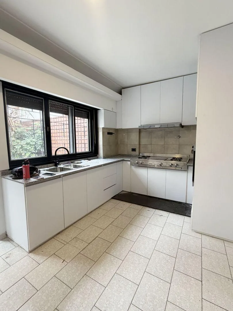 Casa de 4 ambientes en dos plantas, en Versalles. Cuenta con living-comedor en planta baja, cocina separada y toilette, con salida desde la cocina a un patio con parrilla. En el primer piso hay 3 dormitorios, baño completo y dependencia de servicio. Orientación frente noreste. Tiene cocina a gas natural y agua caliente provista por termotanque eléctrico. Incluye cochera para dos autos.