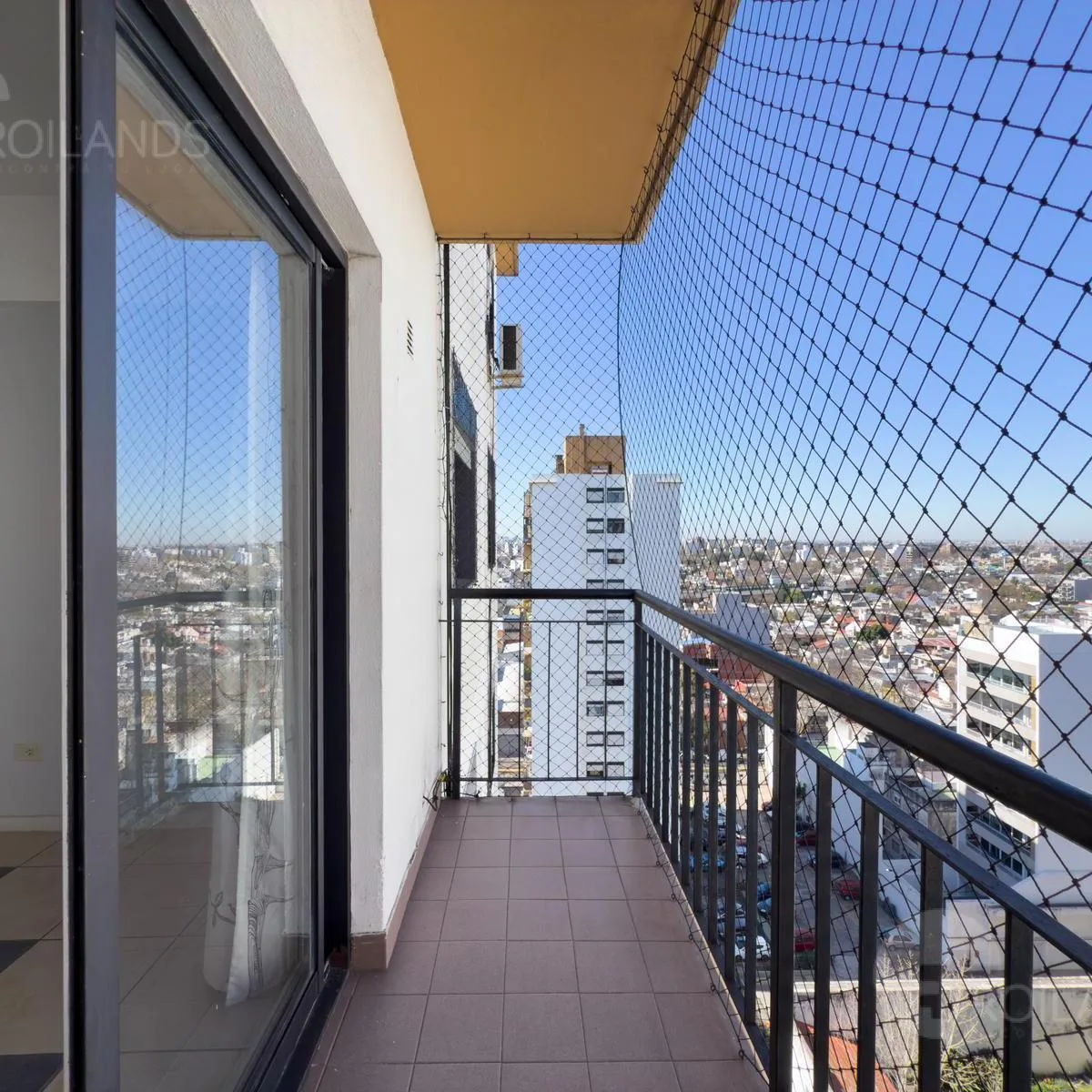 Departamento de 4 ambientes en el piso 14 de un complejo de 3 torres de 15 pisos. Tiene 67 m² cubiertos y 3 m² de balcón, con balcón al living comedor y aire acondicionado. Cocina independiente con lavadero integrado; 3 dormitorios con placares empotrados y persianas. Cuenta con baño completo y toilette, agua caliente central y cochera fija descubierta en planta baja.