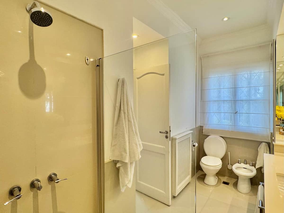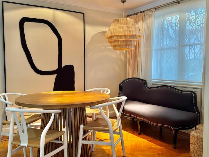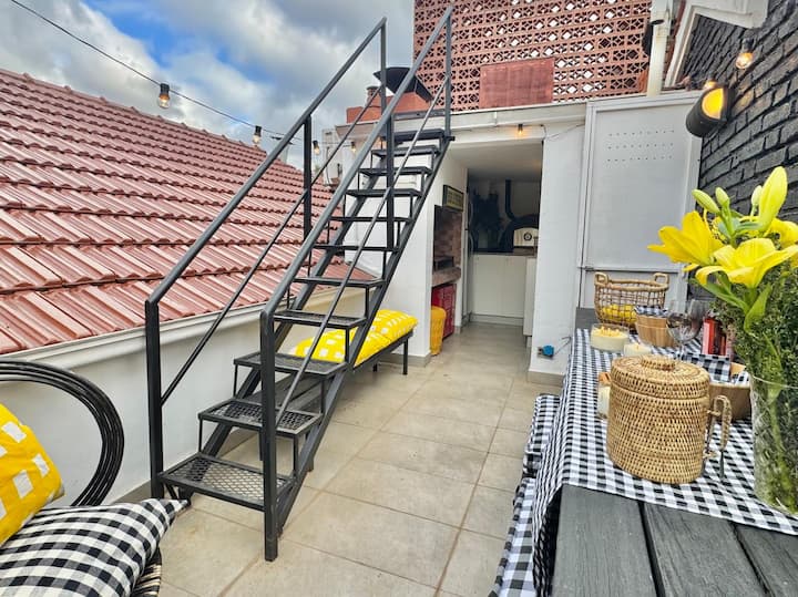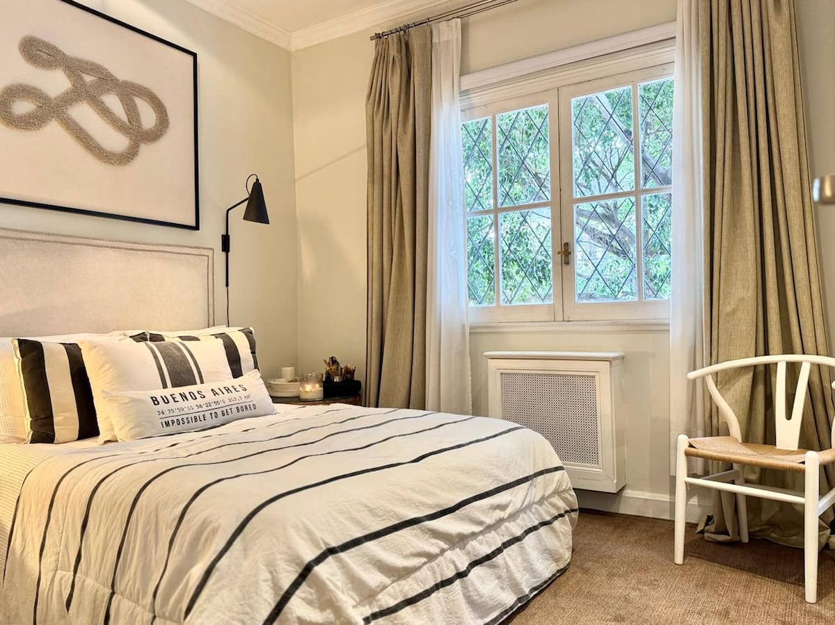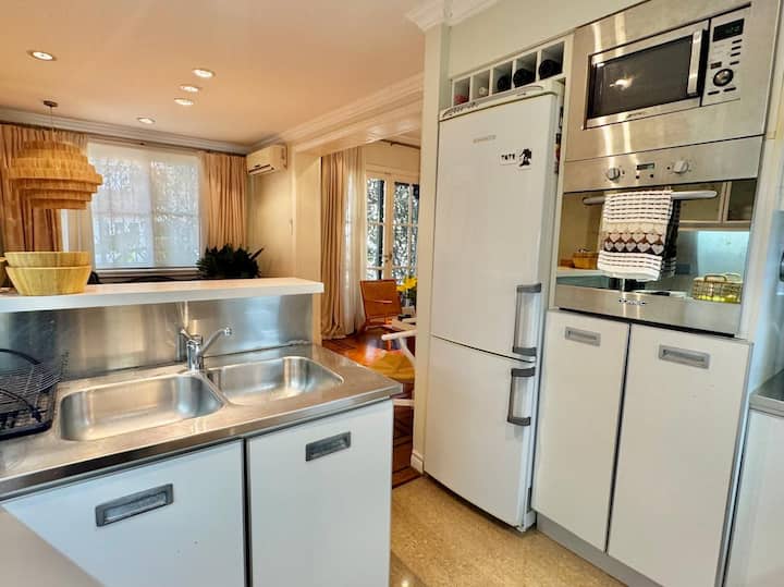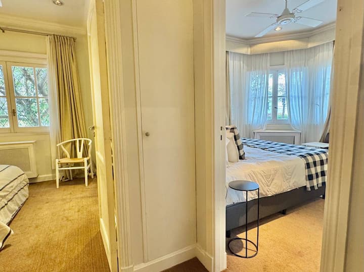 Departamento de 3 dormitorios con acceso independiente desde la calle, en esquina. Incluye 3 suites con baño en suite con ducha y placards empotrados. Cuenta con estar con Smart TV y hogar, comedor separado, cocina equipada con heladera, horno, microondas, lavavajilla y lavarropas, además de patio privado y terraza con parrilla y horno pizzero. Cada dormitorio tiene aire acondicionado frío/calor y calefacción por radiadores con regulación independiente.