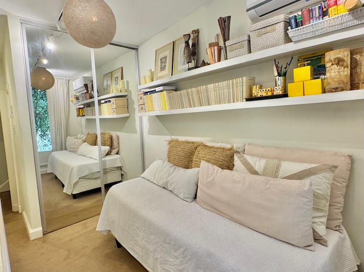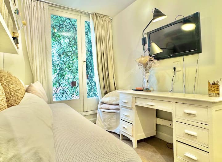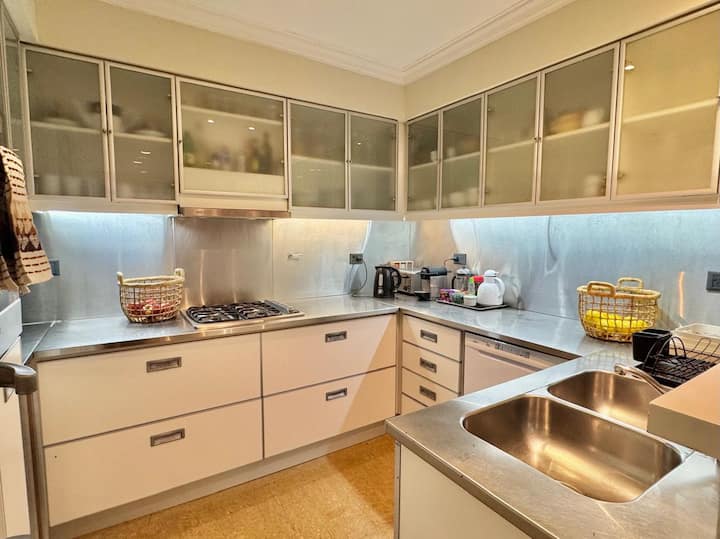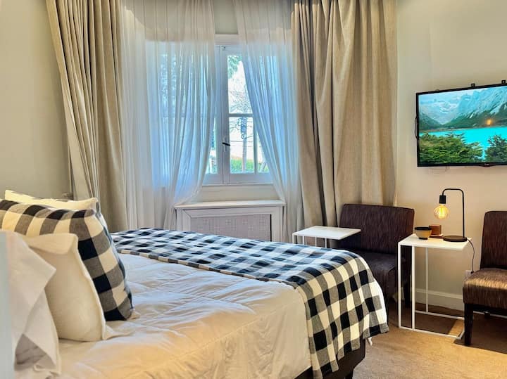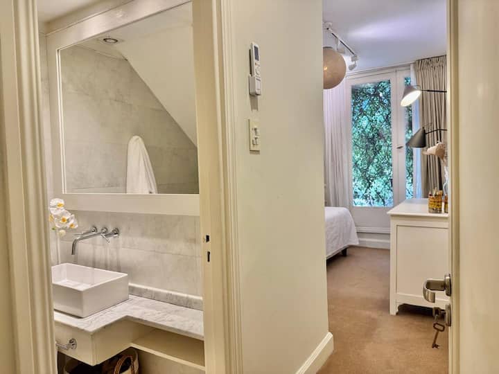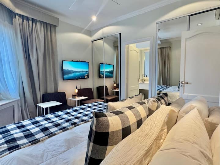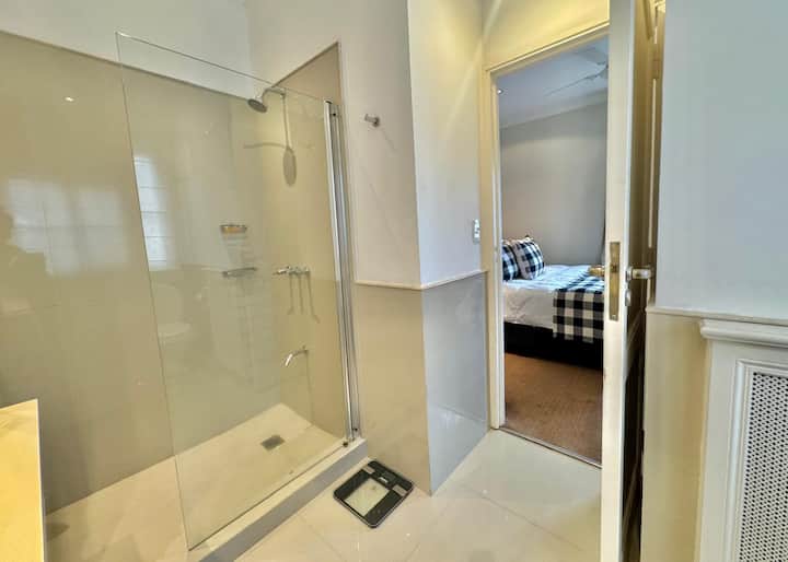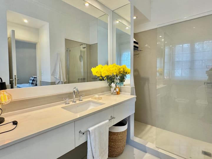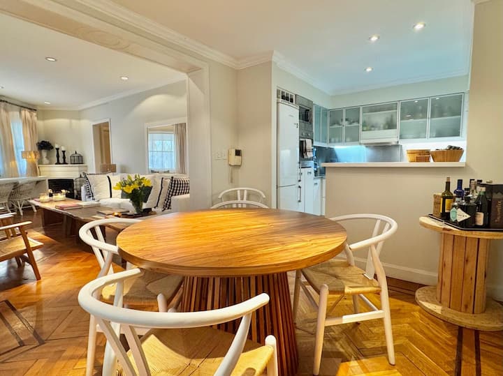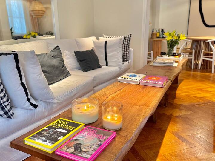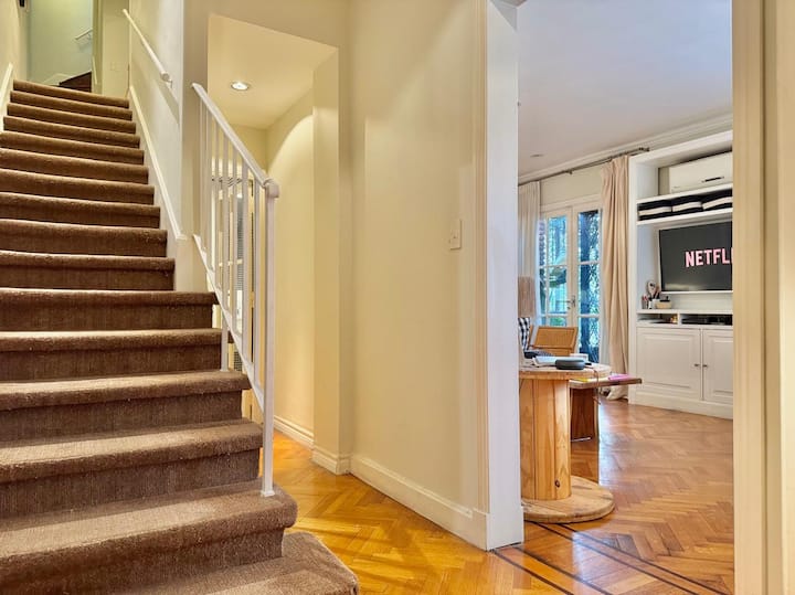Departamento de 3 dormitorios con acceso independiente desde la calle, en esquina. Incluye 3 suites con baño en suite con ducha y placards empotrados. Cuenta con estar con Smart TV y hogar, comedor separado, cocina equipada con heladera, horno, microondas, lavavajilla y lavarropas, además de patio privado y terraza con parrilla y horno pizzero. Cada dormitorio tiene aire acondicionado frío/calor y calefacción por radiadores con regulación independiente.