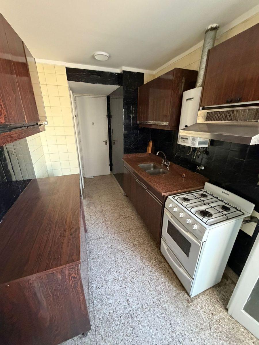 Departamento de 4 ambientes con dependencia, cocina con comedor diario y gran living en L con vista al frente. Orientación este, con 1 baño completo, 1 toilette y 1 baño de servicio, además de lavadero e ingreso de servicio. Se solicita depósito de D1.000 y garantía propietaria en CABA o seguro de caución; no se aceptan mascotas.