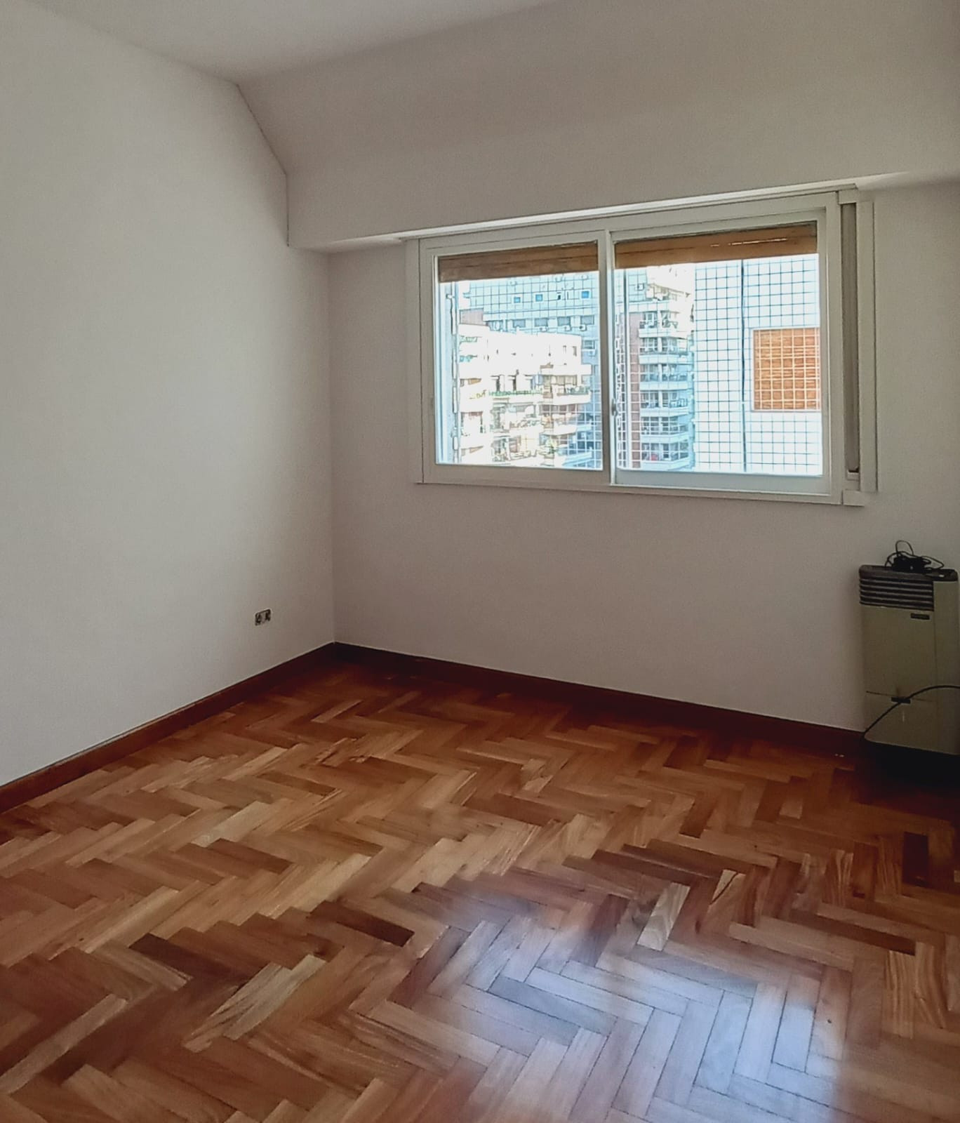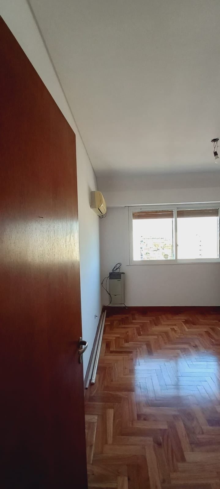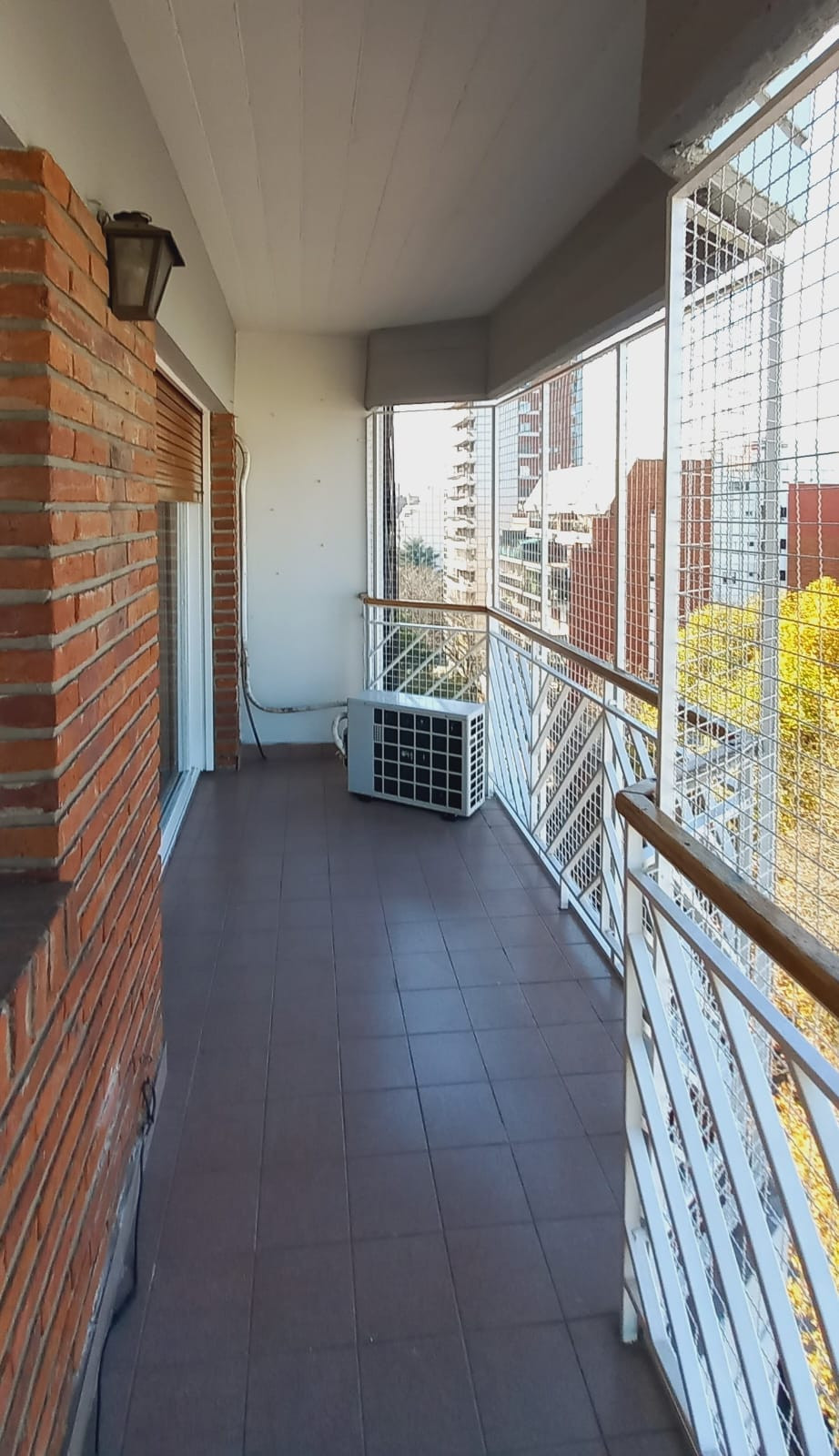 Departamento semipiso de 4 ambientes al frente, en el 8° piso. Cuenta con balcón corrido con vista abierta a la ciudad. Tiene 3 dormitorios, toilette y baño completo con ventana al exterior. La cocina separada mide 3 m x 2,30 m, con muebles bajo mesada y alzada, y artefacto a gas. Incluye lavadero de 1,20 m x 2 m separado, living comedor de aprox. 6,20 m x 3,10 m con salida al balcón y 3 estufas de tiro balanceado. La unidad tiene aire acondicionado y pisos de viraró plastificados, y fue totalme