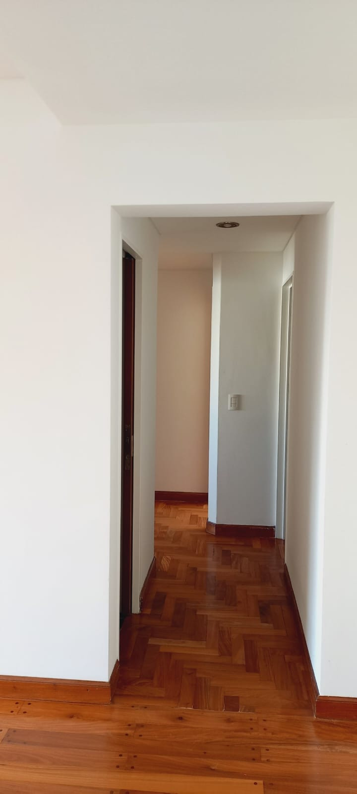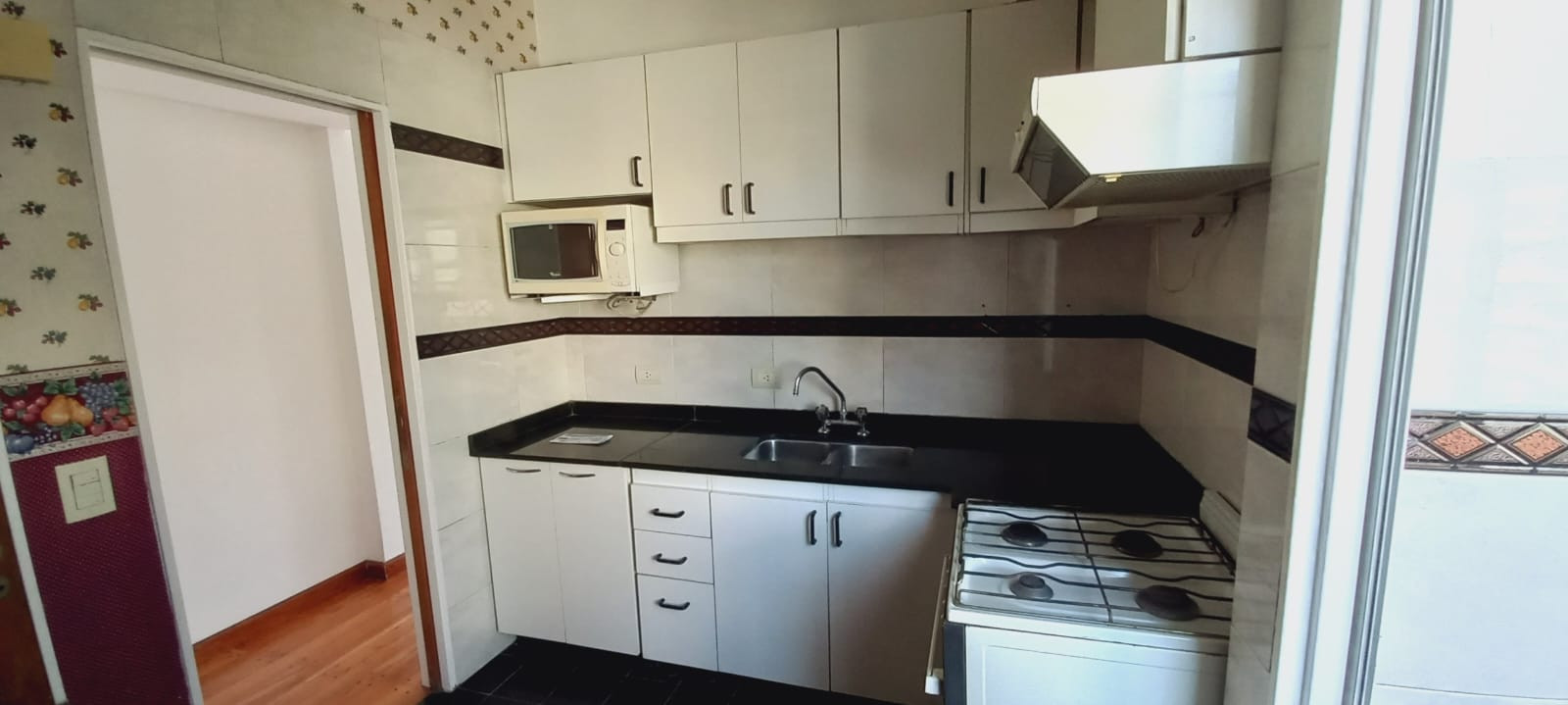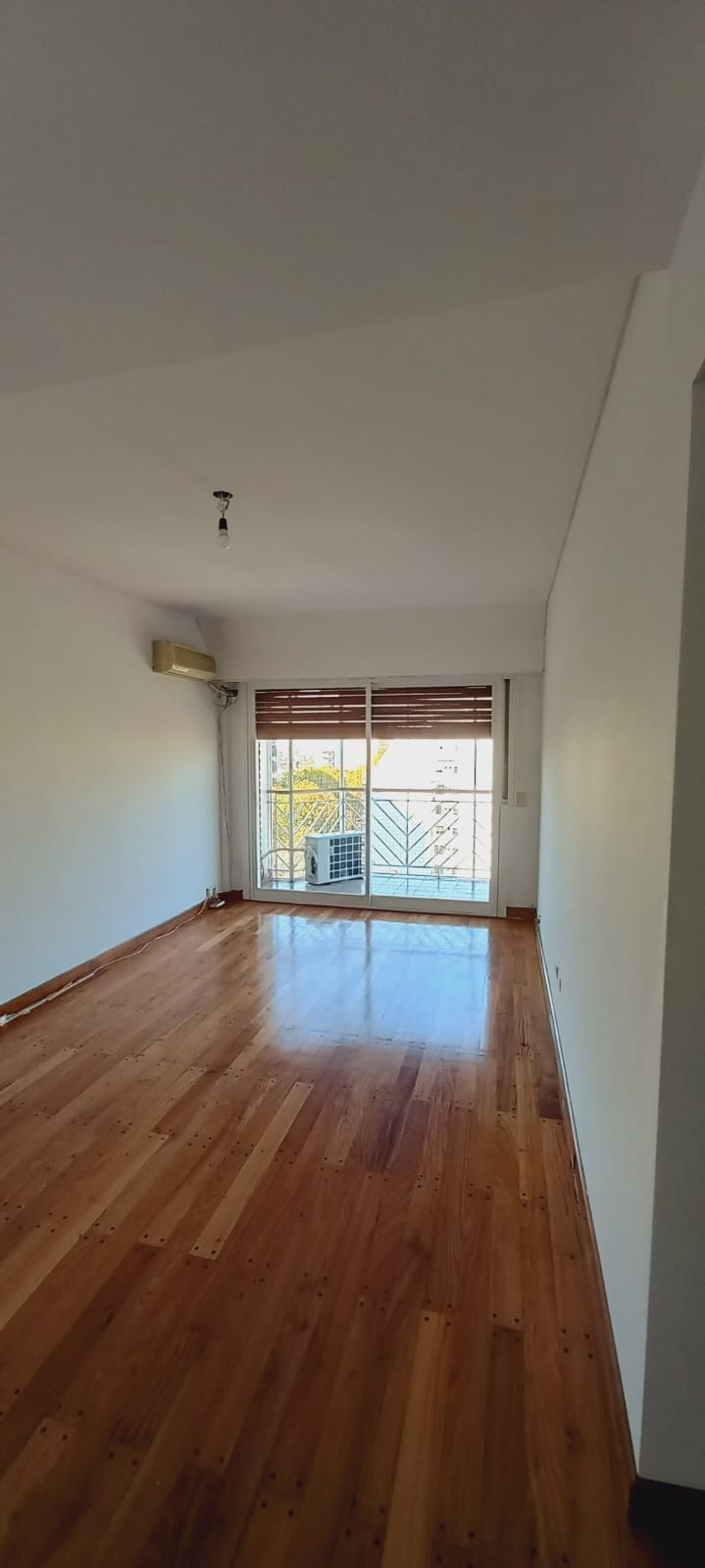 Departamento semipiso de 4 ambientes al frente, en el 8° piso. Cuenta con balcón corrido con vista abierta a la ciudad. Tiene 3 dormitorios, toilette y baño completo con ventana al exterior. La cocina separada mide 3 m x 2,30 m, con muebles bajo mesada y alzada, y artefacto a gas. Incluye lavadero de 1,20 m x 2 m separado, living comedor de aprox. 6,20 m x 3,10 m con salida al balcón y 3 estufas de tiro balanceado. La unidad tiene aire acondicionado y pisos de viraró plastificados, y fue totalme