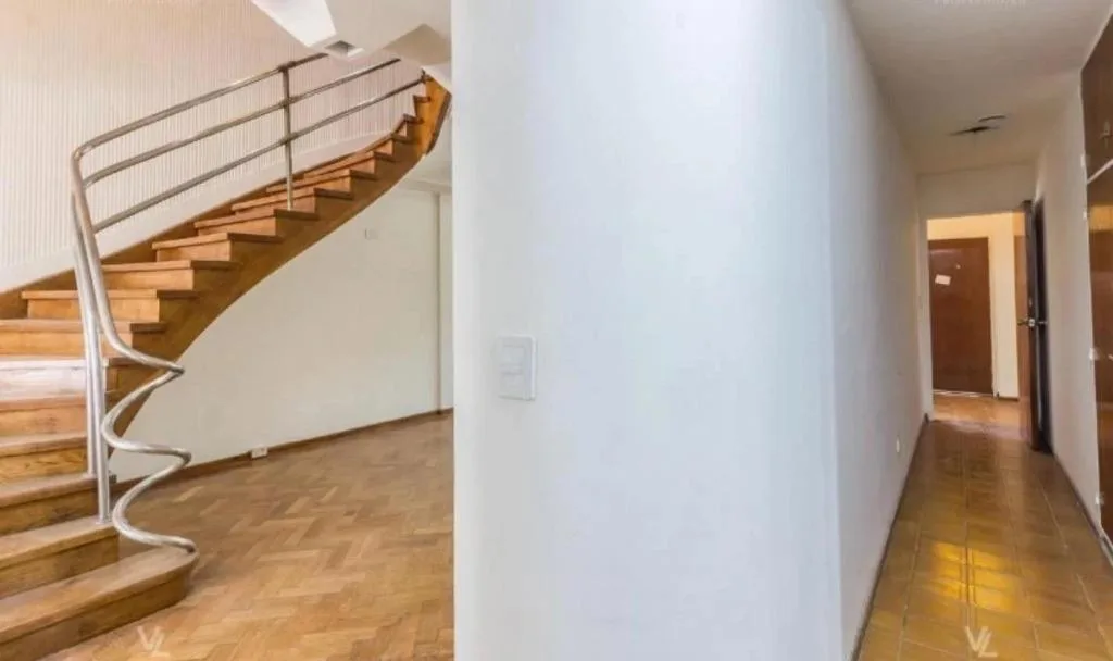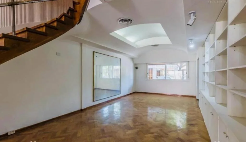 Casa en 2 plantas en Almagro, con 4 dormitorios. Cuenta con living comedor de gran tamaño con pisos de parquet; en la planta baja hay una escalera de madera que conecta con 3 habitaciones, una en suite con kitchenette y baño completo con doble bañera, y una habitación de servicio con acceso por escalera propia y terraza. Incluye sótano y cochera para 2 vehículos, sobre un lote de 7,68 m de ancho y 50 m² de fondo, con una superficie total de 382 m². Se indica que el inmueble puede destinarse a of