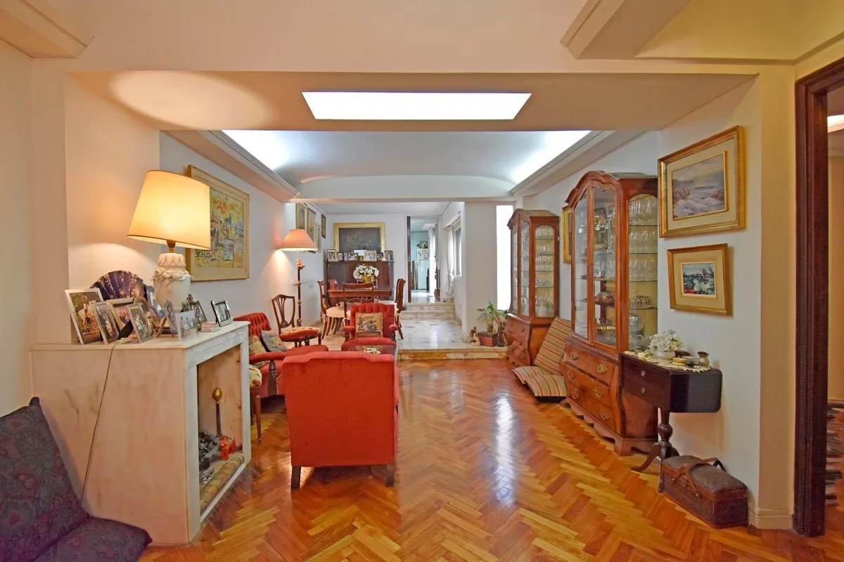 Departamento tipo dúplex de 4 dormitorios en Belgrano, en 1er piso por escalera. Planta baja con living y comedor con ventana al pulmón de manzana; dormitorio principal, 2° y 3° dormitorio con placard empotrado y baño principal. Comedor con acceso a patio tipo andaluz de 25 m²; cocina comedor en L; dependencia de servicio con toilette. Escalera a planta alta con dormitorio amplio con placard, baño completo, espacio para lavadero y segunda dependencia o cuarto de servicio, además de un segundo pa