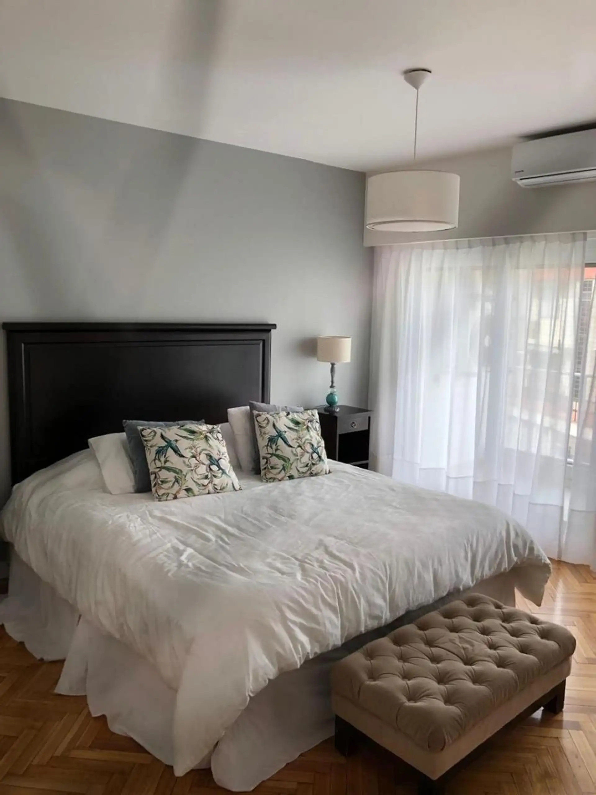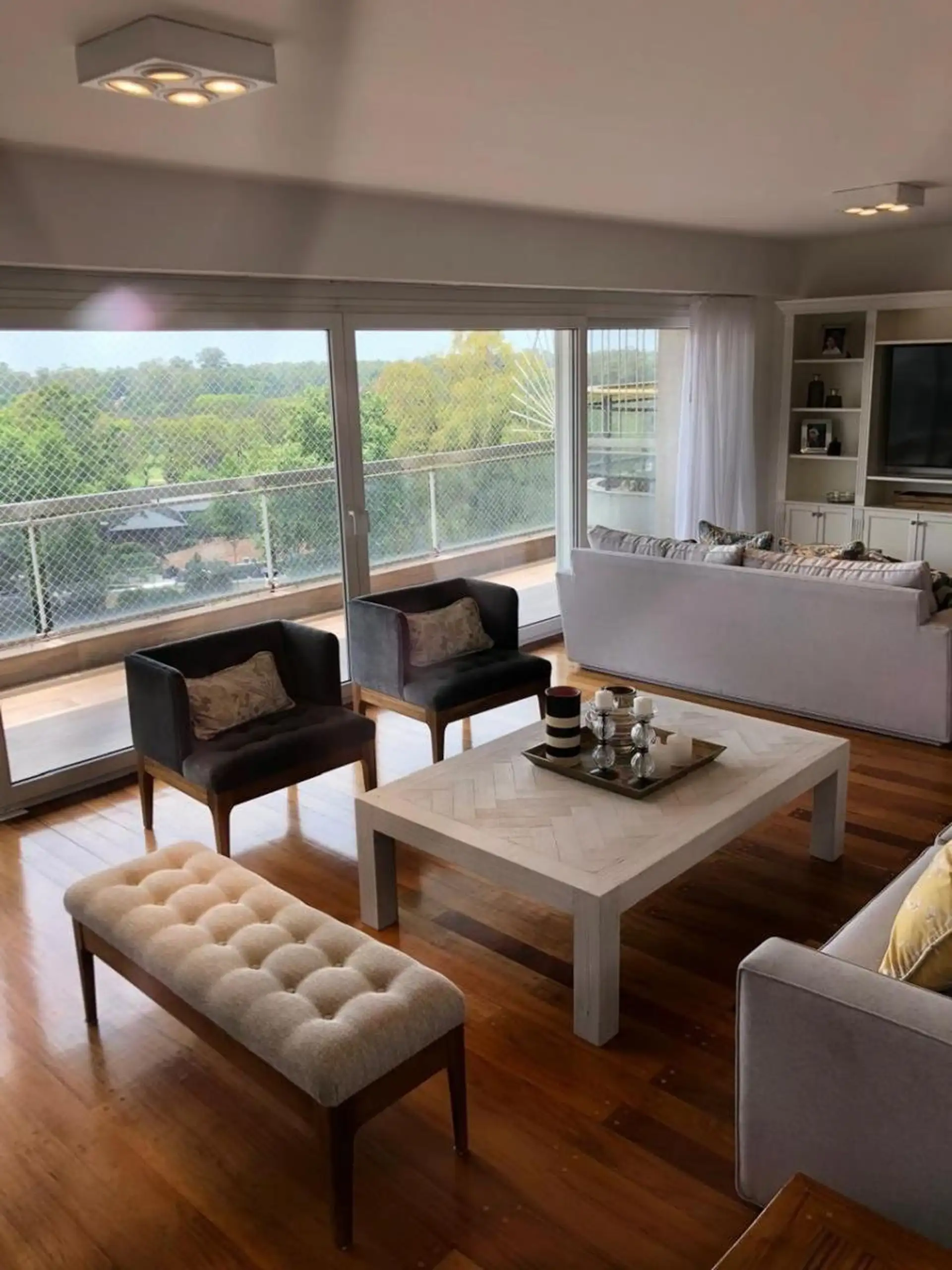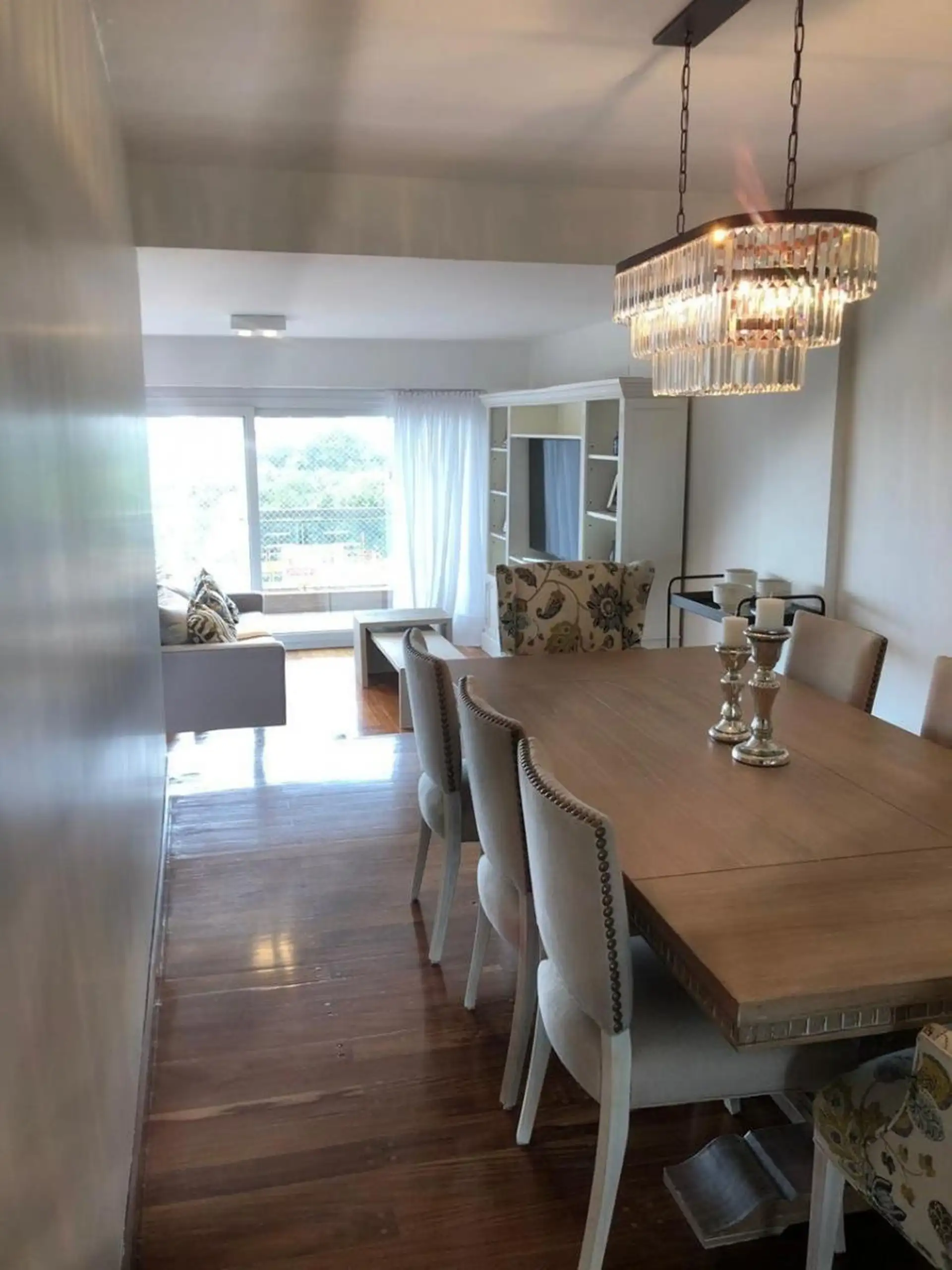 Departamento de 4 dormitorios en piso alto en Belgrano, sobre Av. Libertador, entre Zabala y Teodoro García. Cuenta con 2 baños completos, toilette y baño en dependencia de servicio; además, living y comedor, cocina refaccionada integrada a comedor diario y playroom, y lavadero. Tiene balcón al frente y balcón al contrafrente, ventanas doble vidriado DVH en todo el departamento, losa radiante y aire acondicionado en 3 dormitorios y playroom. Incluye cochera con espacio de maniobra y portero, y S