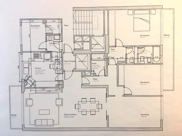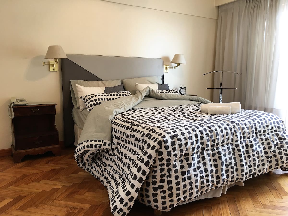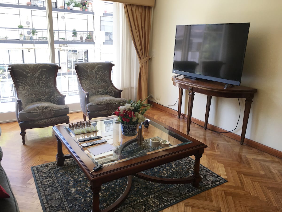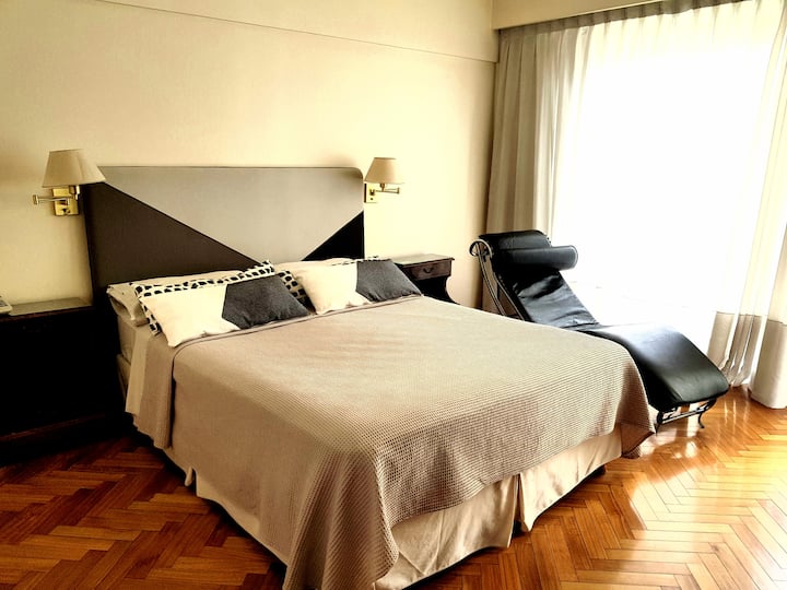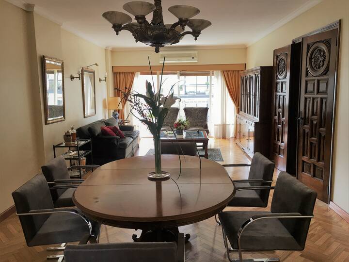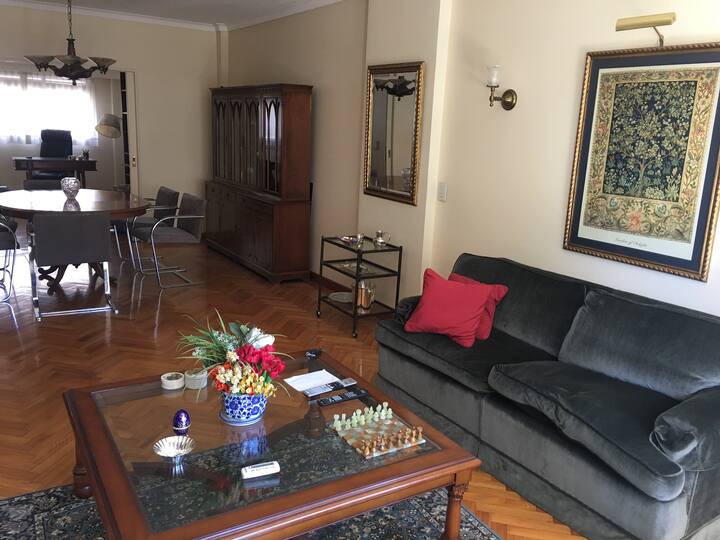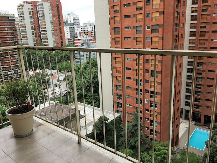 Departamento de 4 dormitorios de 150 m². Vista de las dependencias a las Barrancas de Belgrano. Cuenta con cochera con espacio asignado y seguridad con vigilancia permanente.