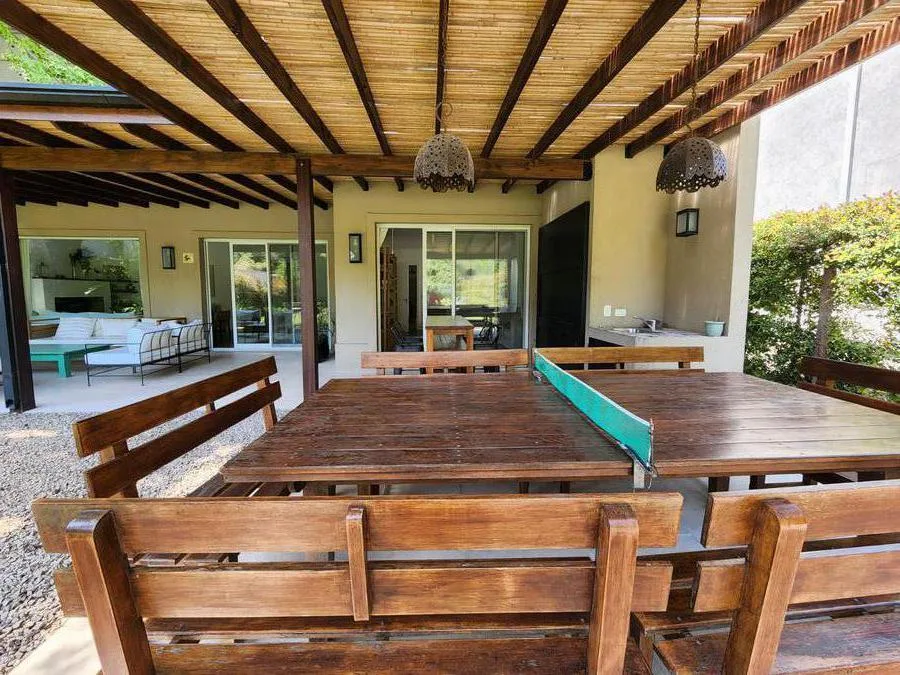 Casa de 4 dormitorios en Boulogne, ubicada en un barrio de 3 casas. Cuenta con living, comedor, toilette, family, cocina y lavadero, además de área de servicio. Dispone de una suite principal, una suite junior y dos dormitorios con baño compartido; galería con parrilla, área de comedor y de living, pileta, fogón y quincho separado con aire acondicionado. El alquiler tiene valor desde el 23 de diciembre al 31 de enero. Los gastos de seguridad son $350.000, más gastos de jardinero y piletero de $8