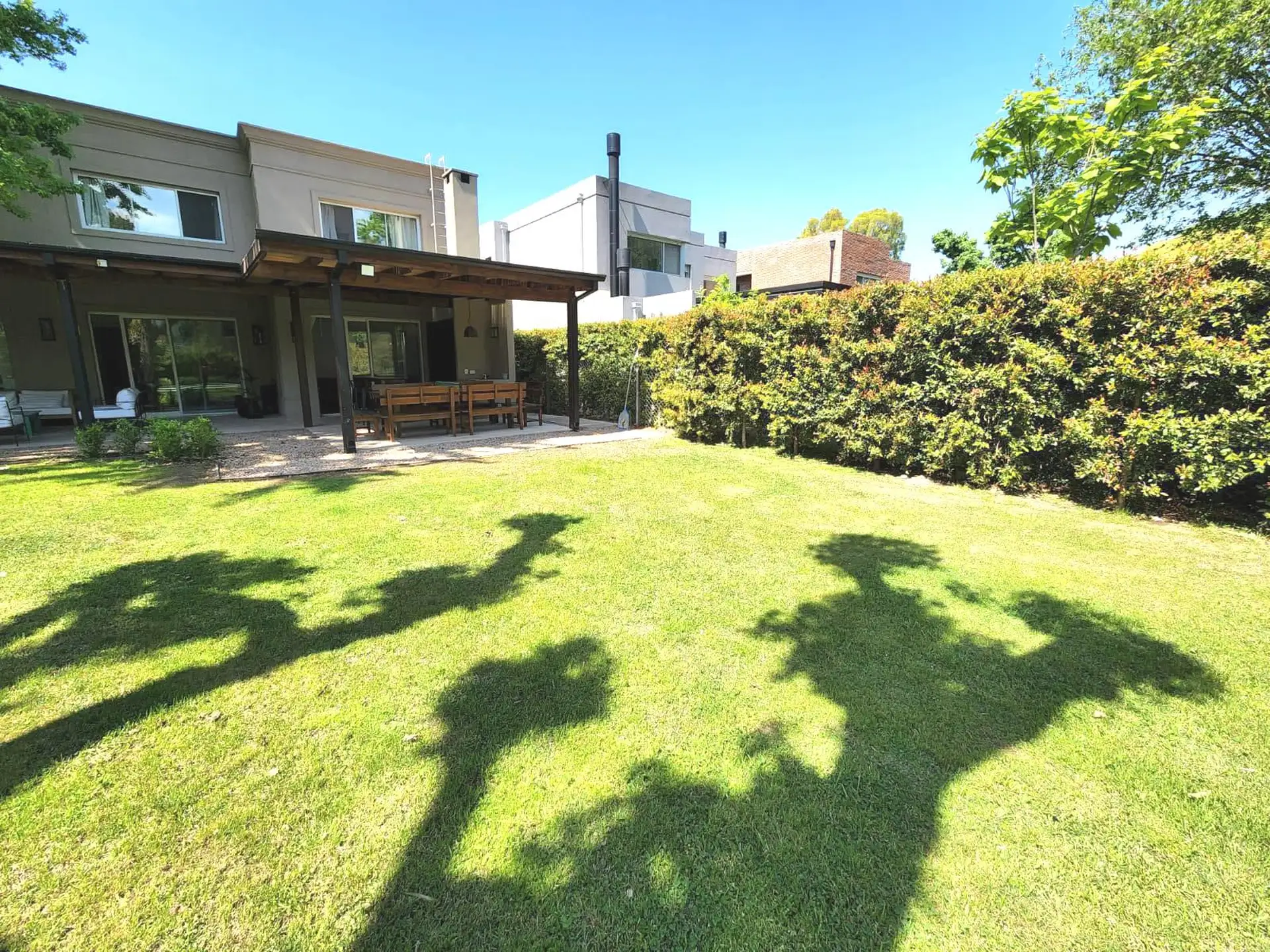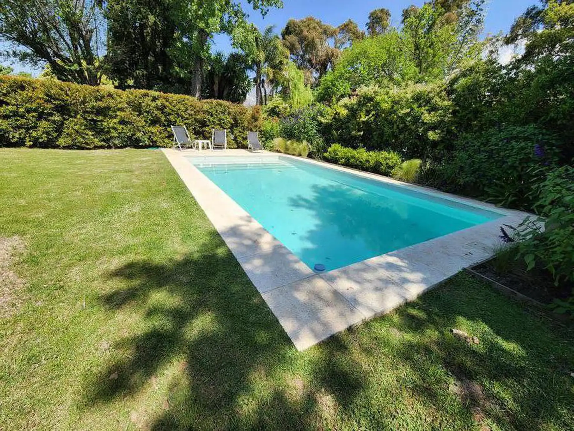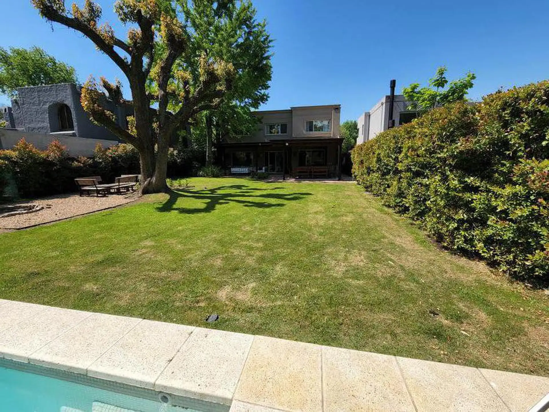 Casa en alquiler temporal en Boulogne, Partido de San Isidro. Disponible entre el 23 de diciembre y el 31 de enero. Cuenta con living, comedor, toilette, family, cocina, lavadero y área de servicio en planta baja, y en planta alta una suite principal, una suite junior y dos cuartos que comparten baño. Dispone de galería con parrilla, área de comedor y de living, pileta y fogón, con quincho separado con aire acondicionado. En agosto, los gastos de seguridad son de $350.000, más gastos de jardiner