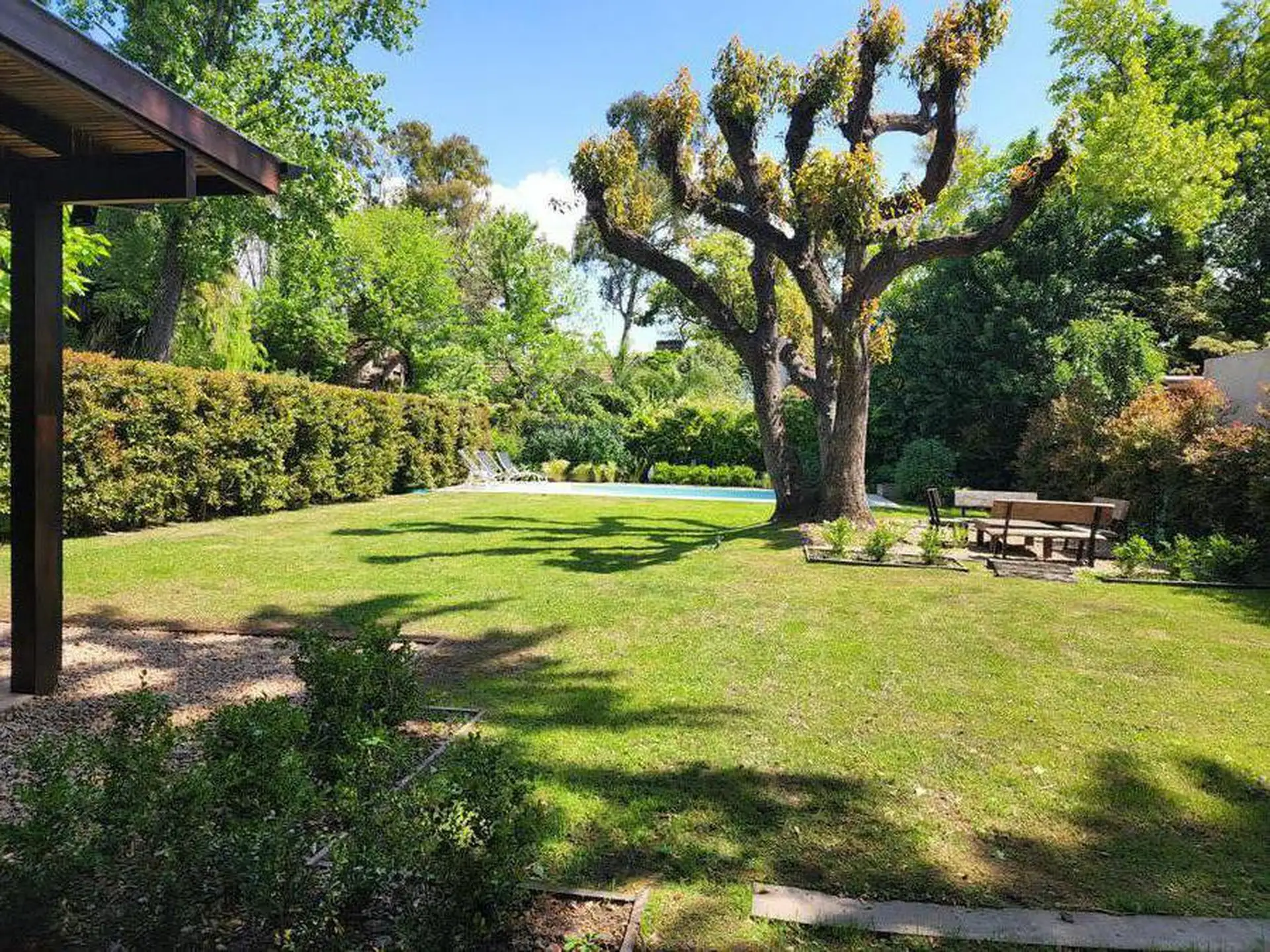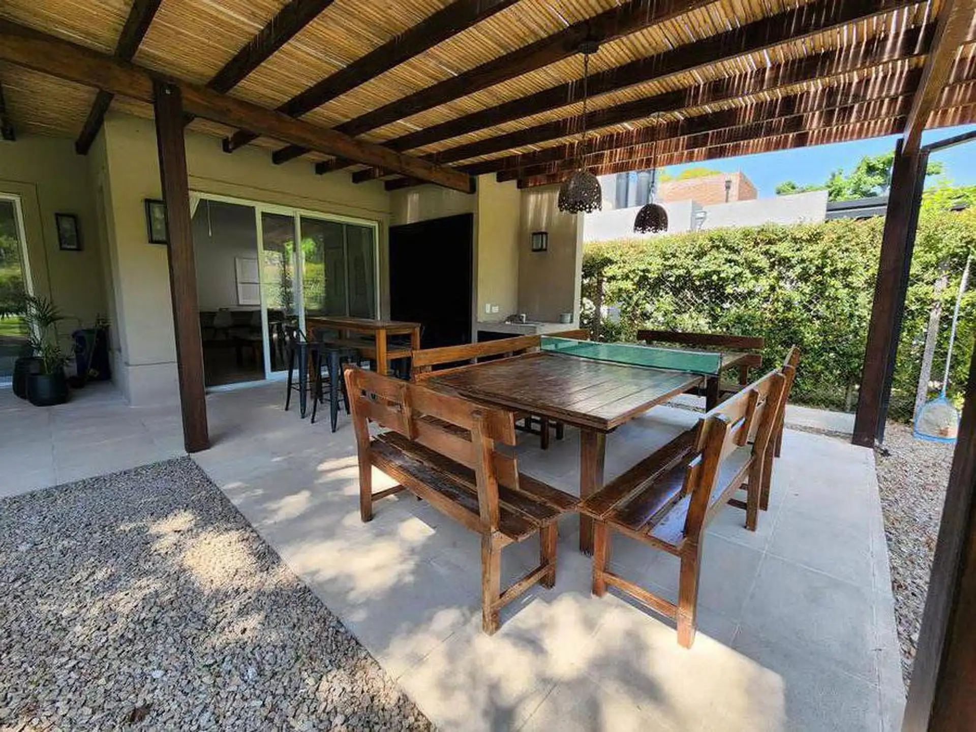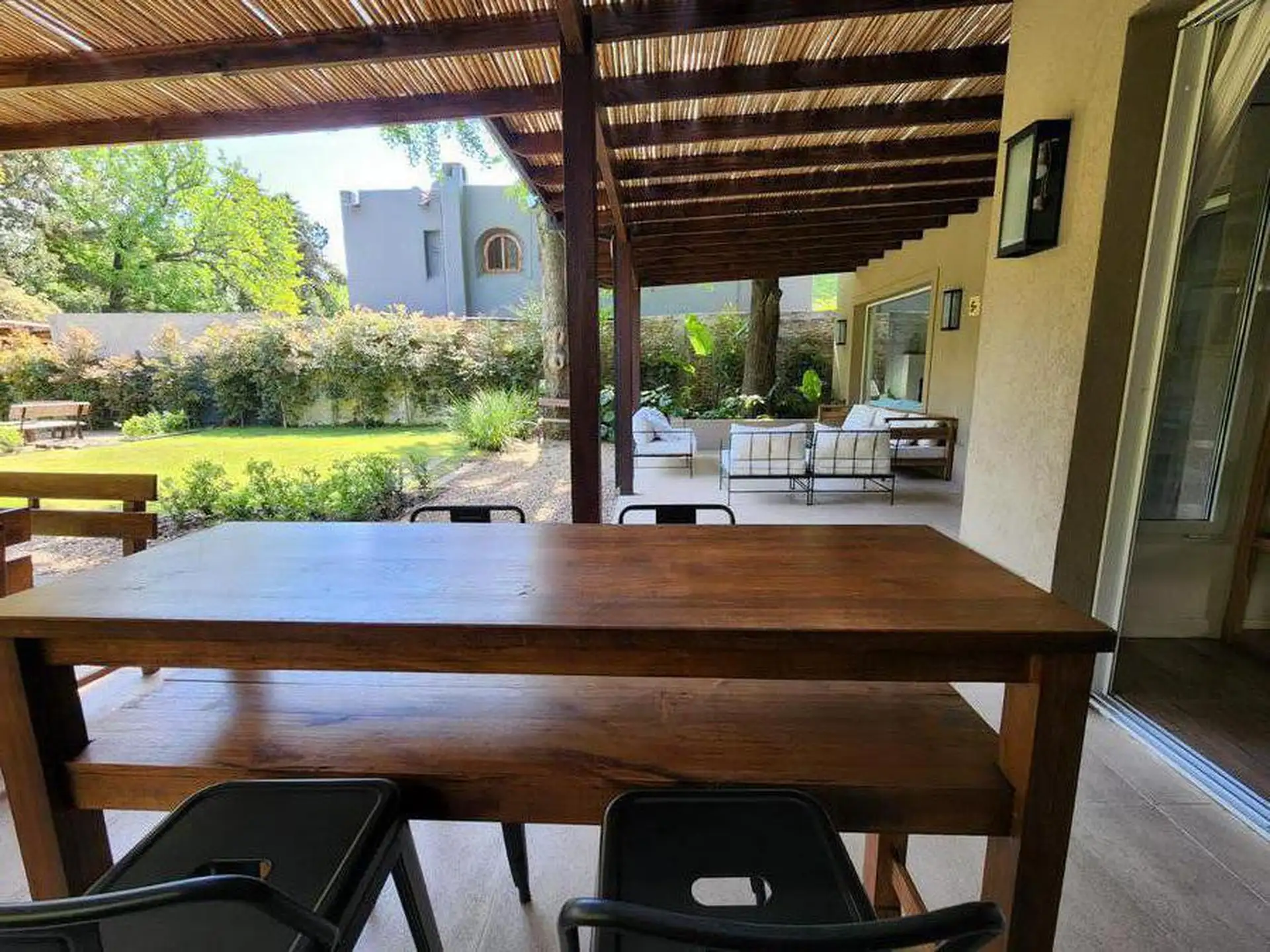 Casa en alquiler temporal en Boulogne, Partido de San Isidro. Disponible entre el 23 de diciembre y el 31 de enero. Cuenta con living, comedor, toilette, family, cocina, lavadero y área de servicio en planta baja, y en planta alta una suite principal, una suite junior y dos cuartos que comparten baño. Dispone de galería con parrilla, área de comedor y de living, pileta y fogón, con quincho separado con aire acondicionado. En agosto, los gastos de seguridad son de $350.000, más gastos de jardiner