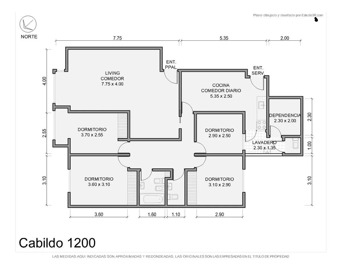 Departamento de 5 ambientes en la zona de Belgrano, sobre Av. Cabildo y Céspedes, en 3er piso al contrafrente. Cuenta con gran living comedor con balcón cerrado, cocina con espacio para comedor diario, lavadero y cuarto con baño de servicio. Dispone de 2 dormitorios al contrafrente y 2 dormitorios al pulmón de manzana, con 3 de ellos con placards; además, tiene baño completo y toilette con ducha, calefacción central y agua caliente individual por calefón. Incluye palier semiprivado y entrada de