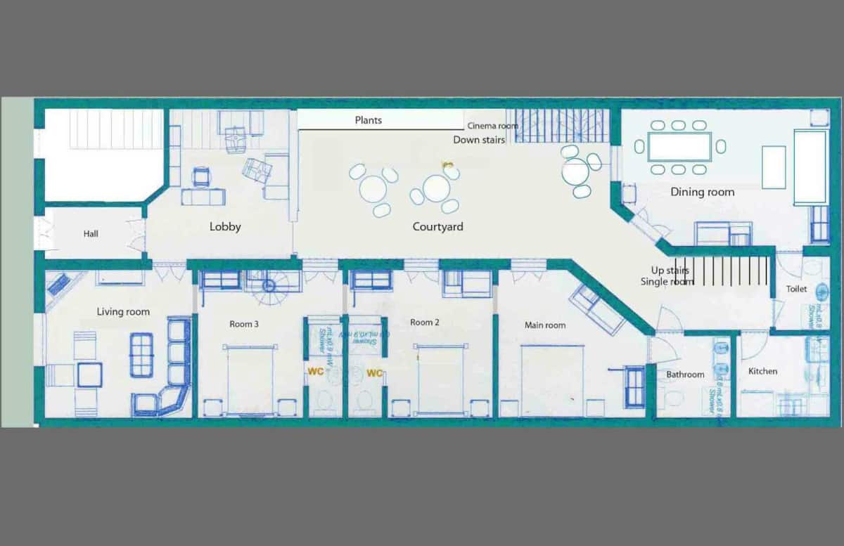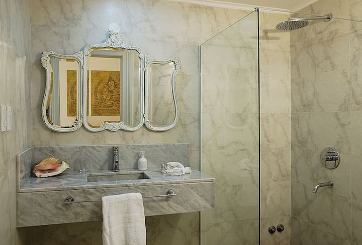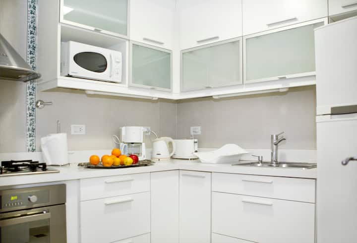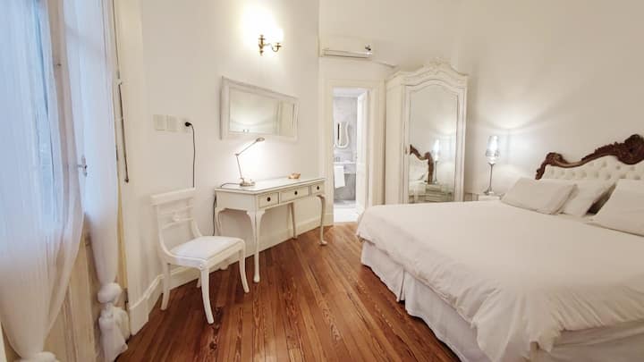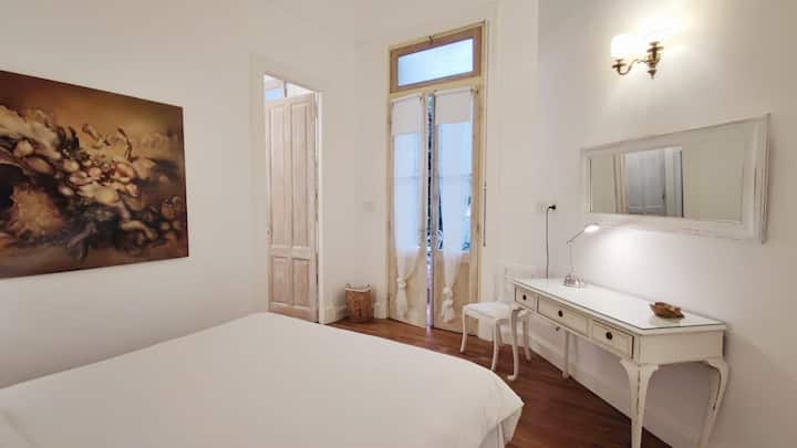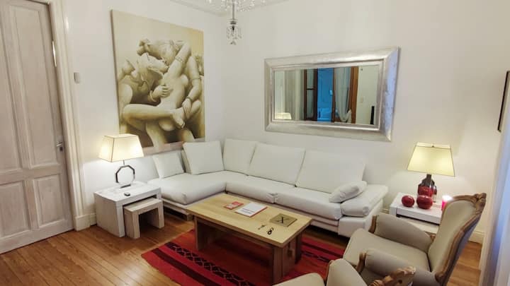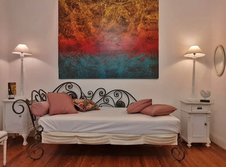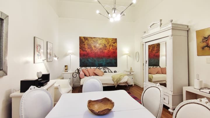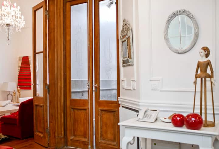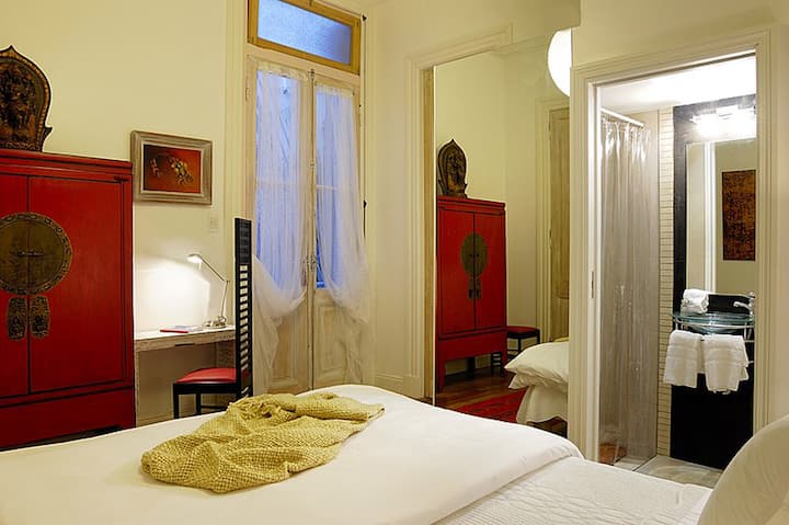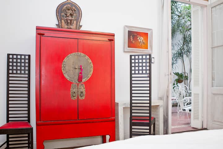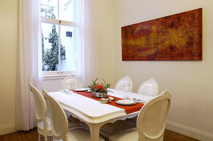 Casa de 4 dormitorios en Colegiales. Construida en 1915, cuenta con 160 m² cubiertos y un área exterior de 40 m², organizada alrededor de un patio central. Dispone de 3 dormitorios con baño en suite y estar con aire acondicionado e internet de alta velocidad (Wi-Fi).