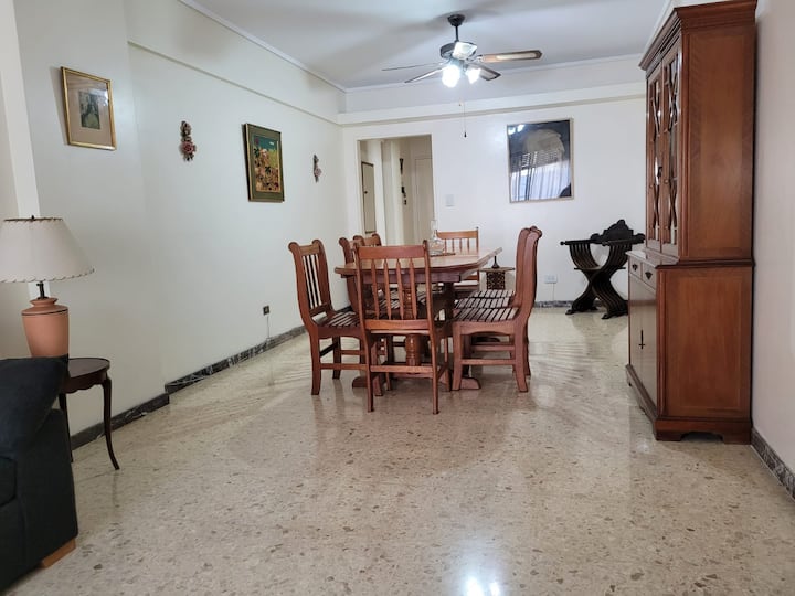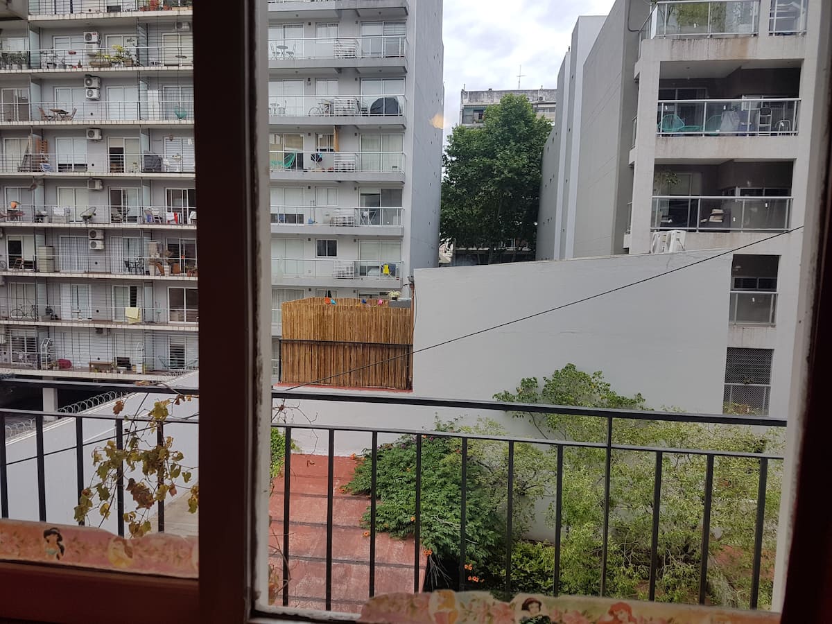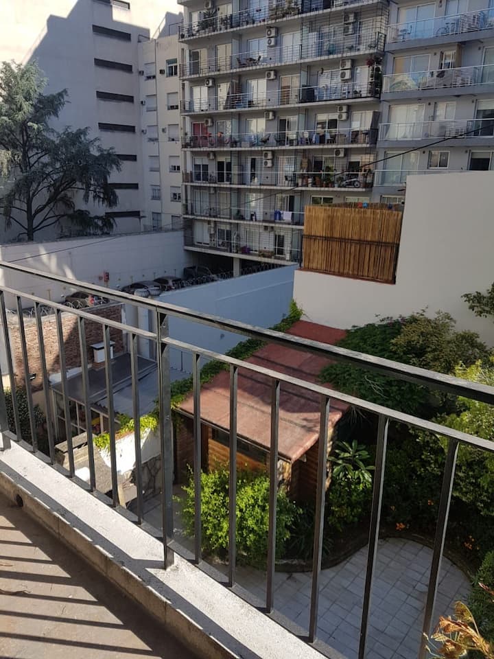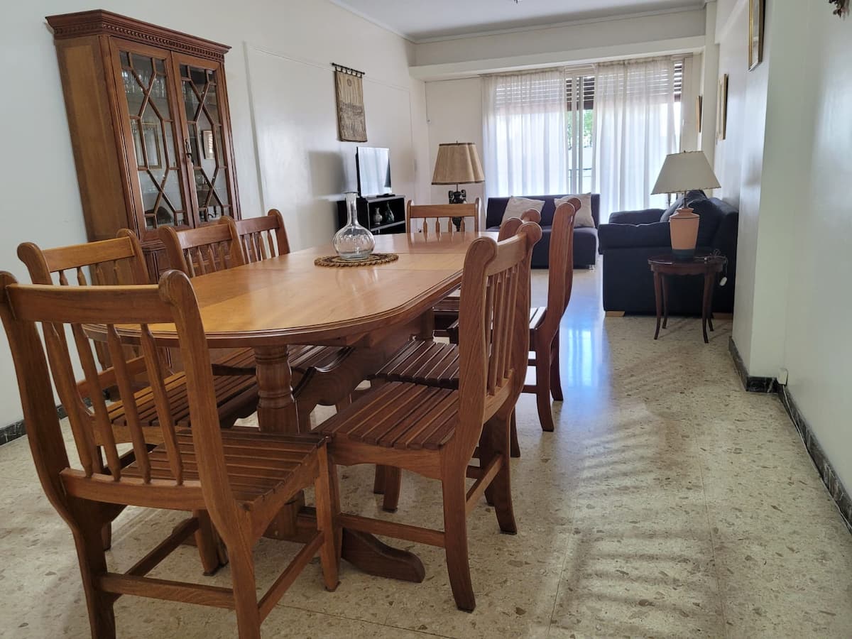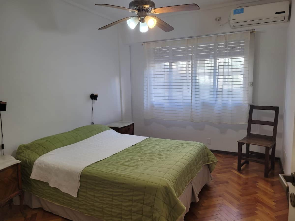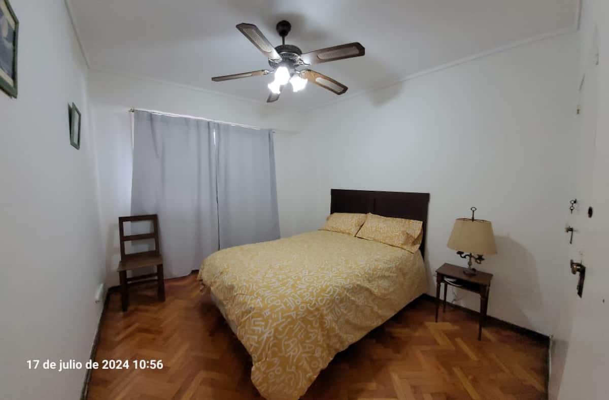 Departamento en Colegiales. Cuenta con 4 dormitorios y se ubica en un piso contrafrente, con buena luminosidad. Dispone de equipamiento en la cocina y en sectores de uso común. Para acceder a la cochera, la altura máxima del portón es de 1,80 m. Quienes utilicen el estacionamiento deben dejar una copia de la llave al encargado y se solicita una caución por el control del portón, que se devuelve al final de la estadía.