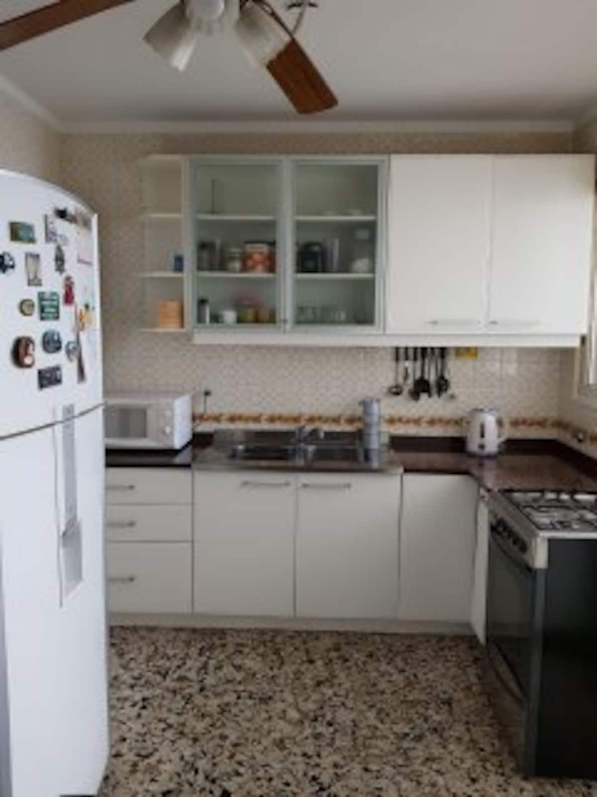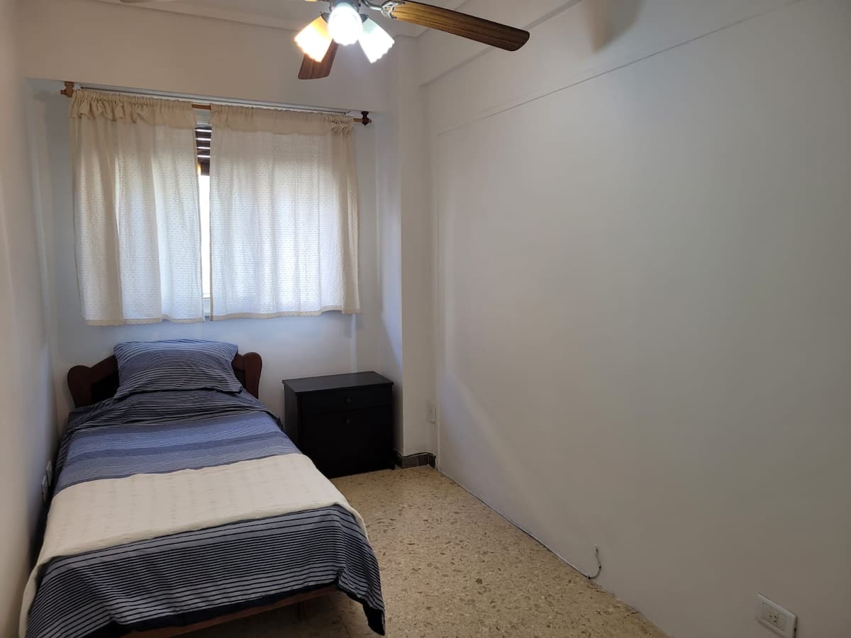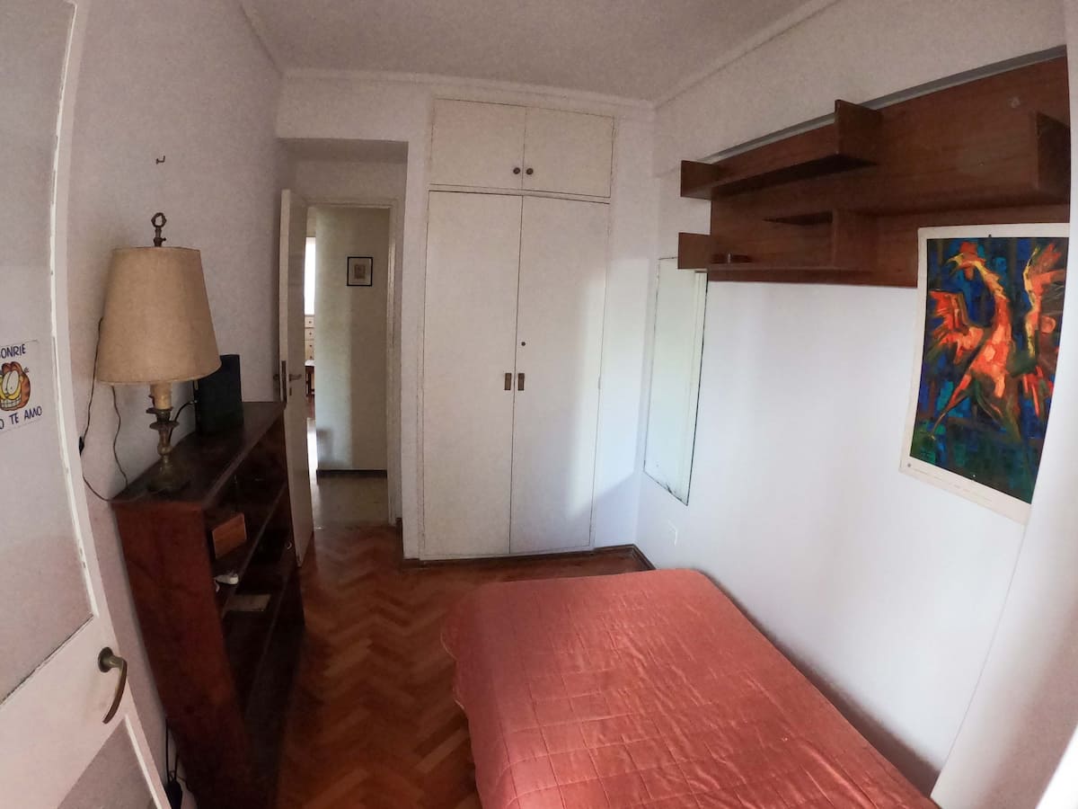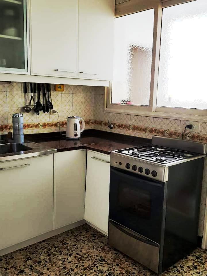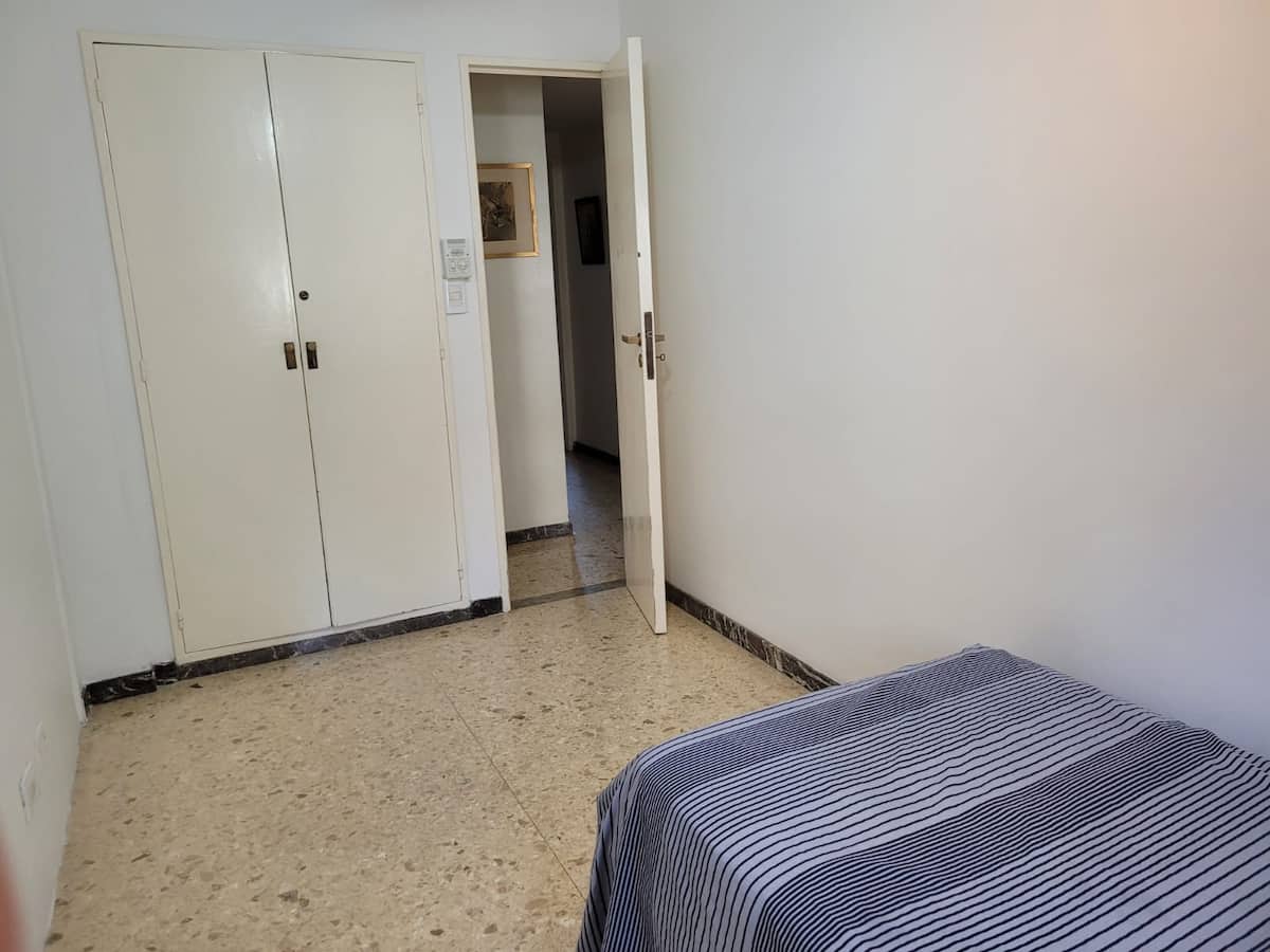 Departamento en Colegiales. Cuenta con 4 dormitorios y se ubica en un piso contrafrente, con buena luminosidad. Dispone de equipamiento en la cocina y en sectores de uso común. Para acceder a la cochera, la altura máxima del portón es de 1,80 m. Quienes utilicen el estacionamiento deben dejar una copia de la llave al encargado y se solicita una caución por el control del portón, que se devuelve al final de la estadía.