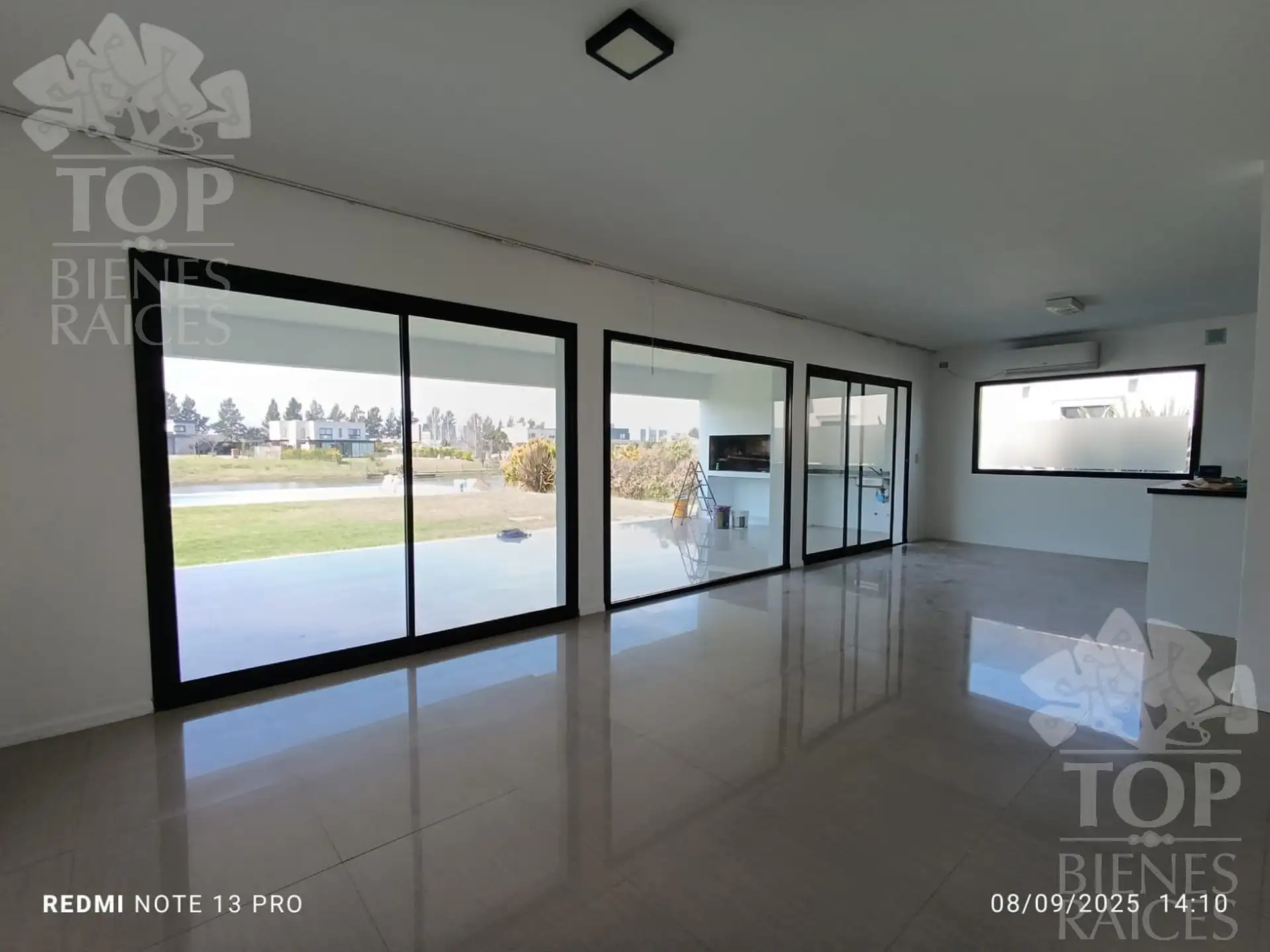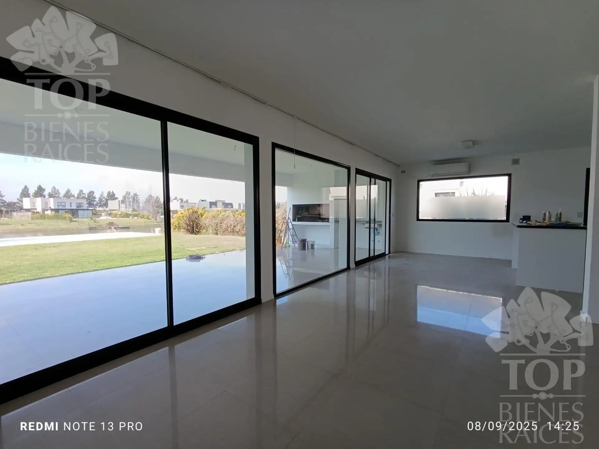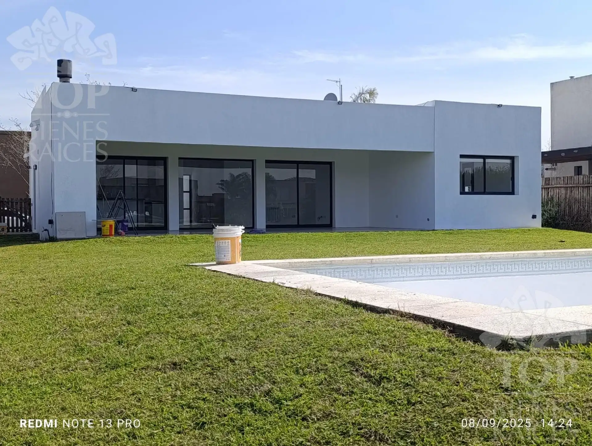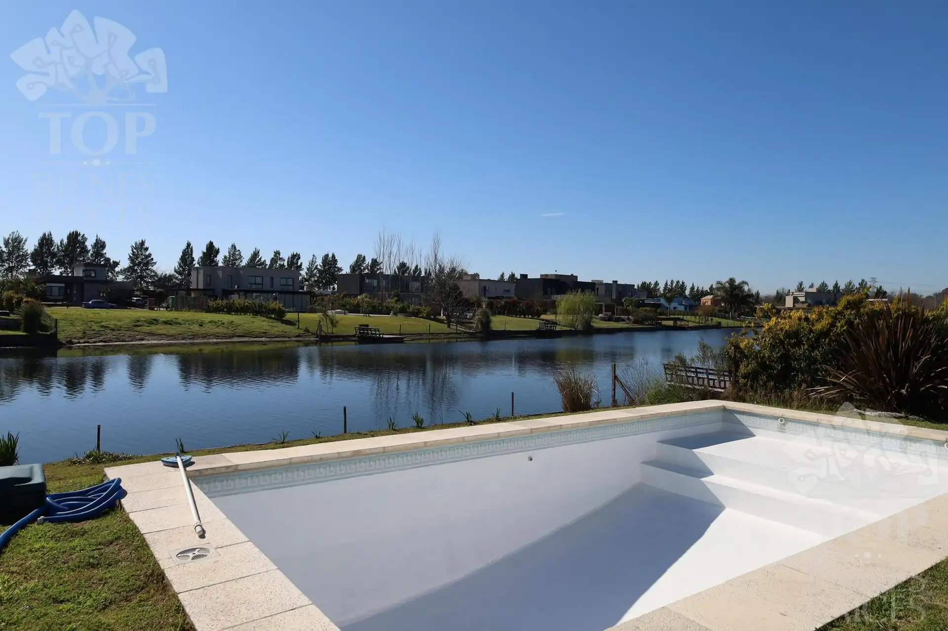 Casa desarrollada en una planta en San Matías, Escobar. Cuenta con 4 dormitorios: 2 cuartos que comparten baño con bañera, 1 dormitorio en suite con baño y vestidor, y 1 cuarto de servicio u oficina con baño; además tiene toilette y lavadero. La cocina comedor y el living comedor balconean a la galería con vista a la laguna. Incluye pileta de 8x4 sobre un lote de 900 m², gas natural, calefacción por radiadores y aberturas con doble vidriado. En la casa se están remodelando los baños.