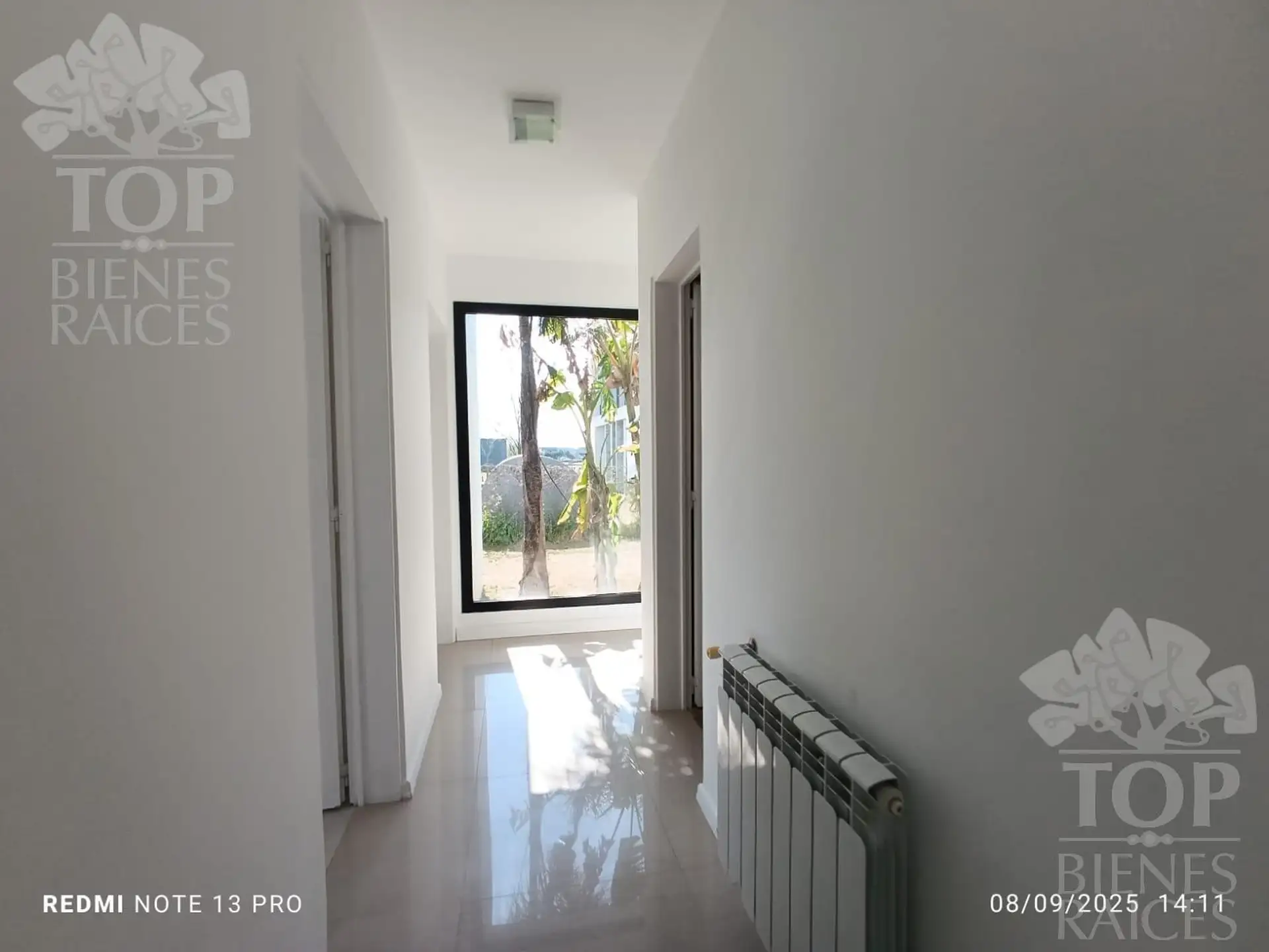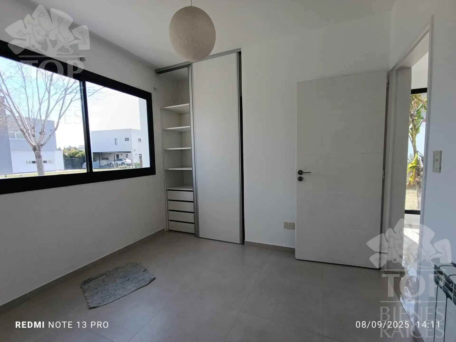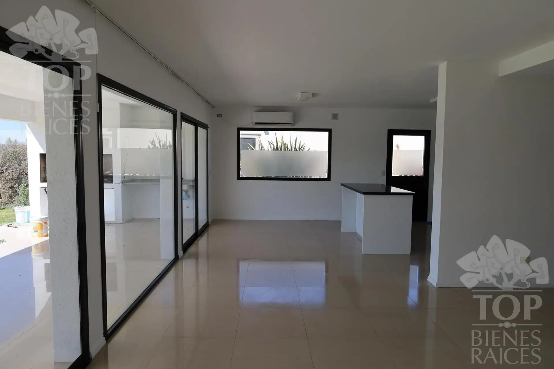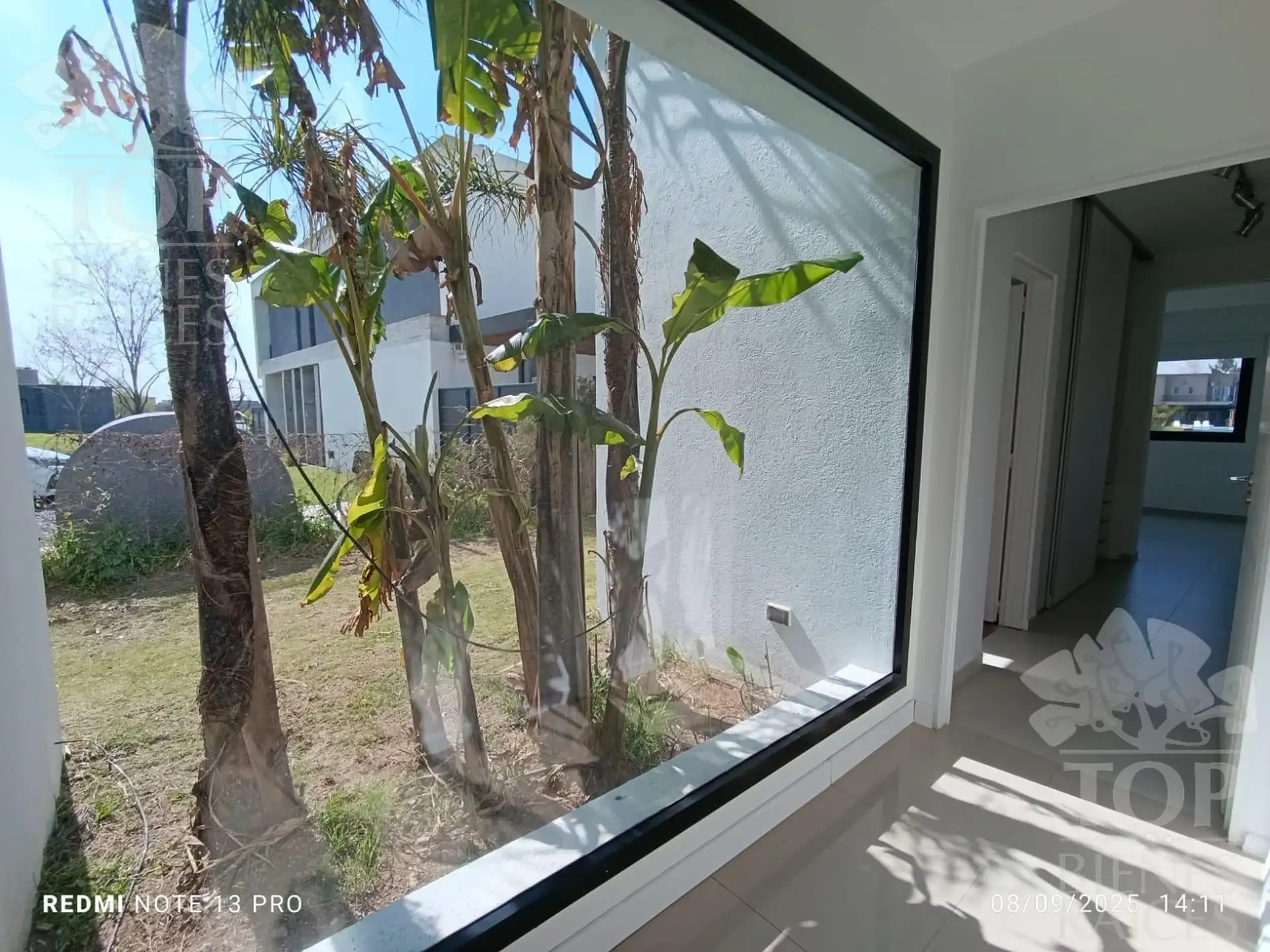 Casa desarrollada en una planta en San Matías, Escobar. Cuenta con 4 dormitorios: 2 cuartos que comparten baño con bañera, 1 dormitorio en suite con baño y vestidor, y 1 cuarto de servicio u oficina con baño; además tiene toilette y lavadero. La cocina comedor y el living comedor balconean a la galería con vista a la laguna. Incluye pileta de 8x4 sobre un lote de 900 m², gas natural, calefacción por radiadores y aberturas con doble vidriado. En la casa se están remodelando los baños.