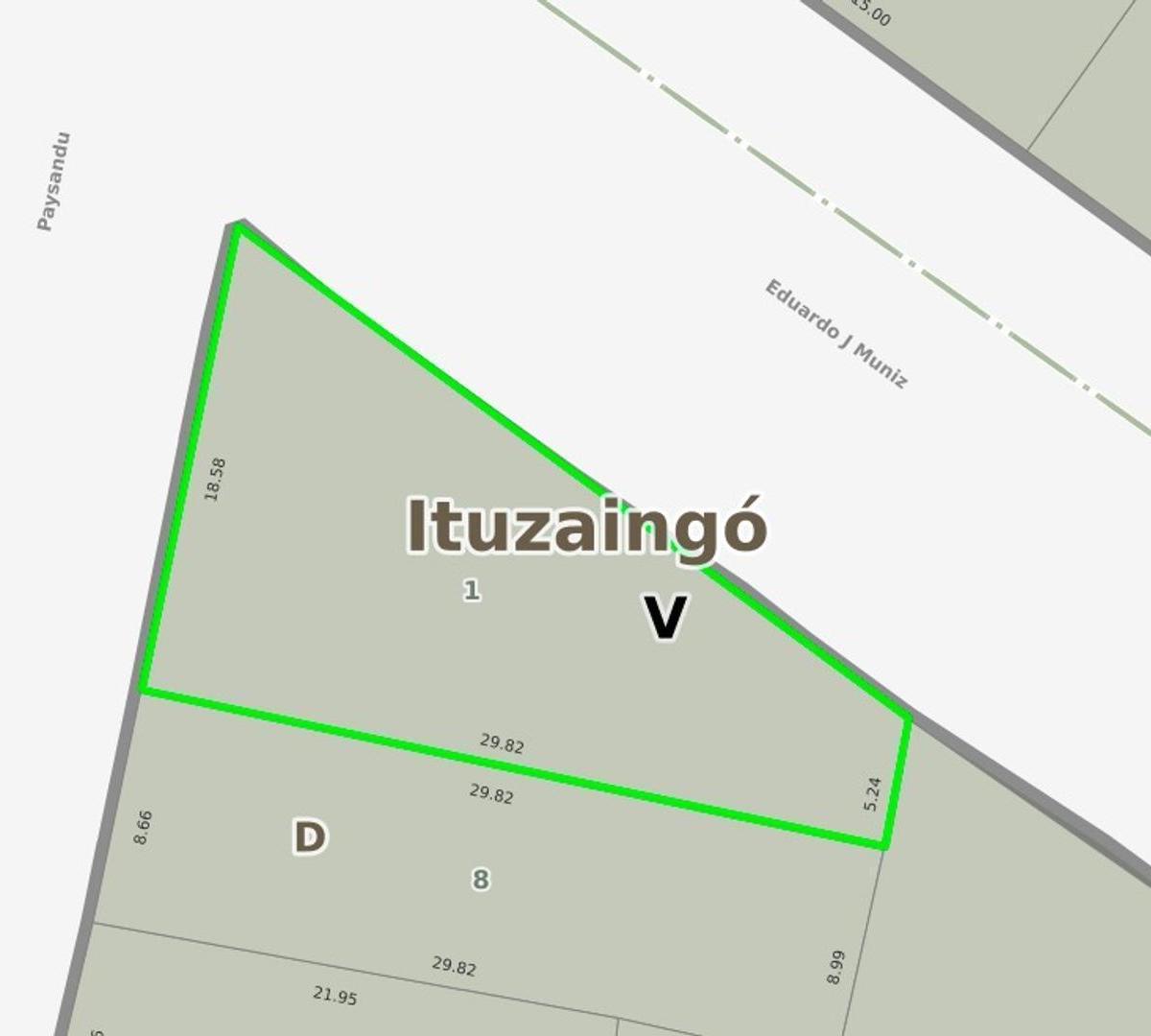 Casa en esquina de medidas irregulares, con frente sobre Muñiz de 32,57 m y sobre Paysandú de 18,58 m. Reformada para uso profesional, dispone de recepción, varias aulas y gabinetes, cocina, galería y jardín. Cuenta con 2 baños para discapacitados y toilette. Se ubica a 100 m de la esquina de Santa Rosa y Sarmiento, o Muñiz.