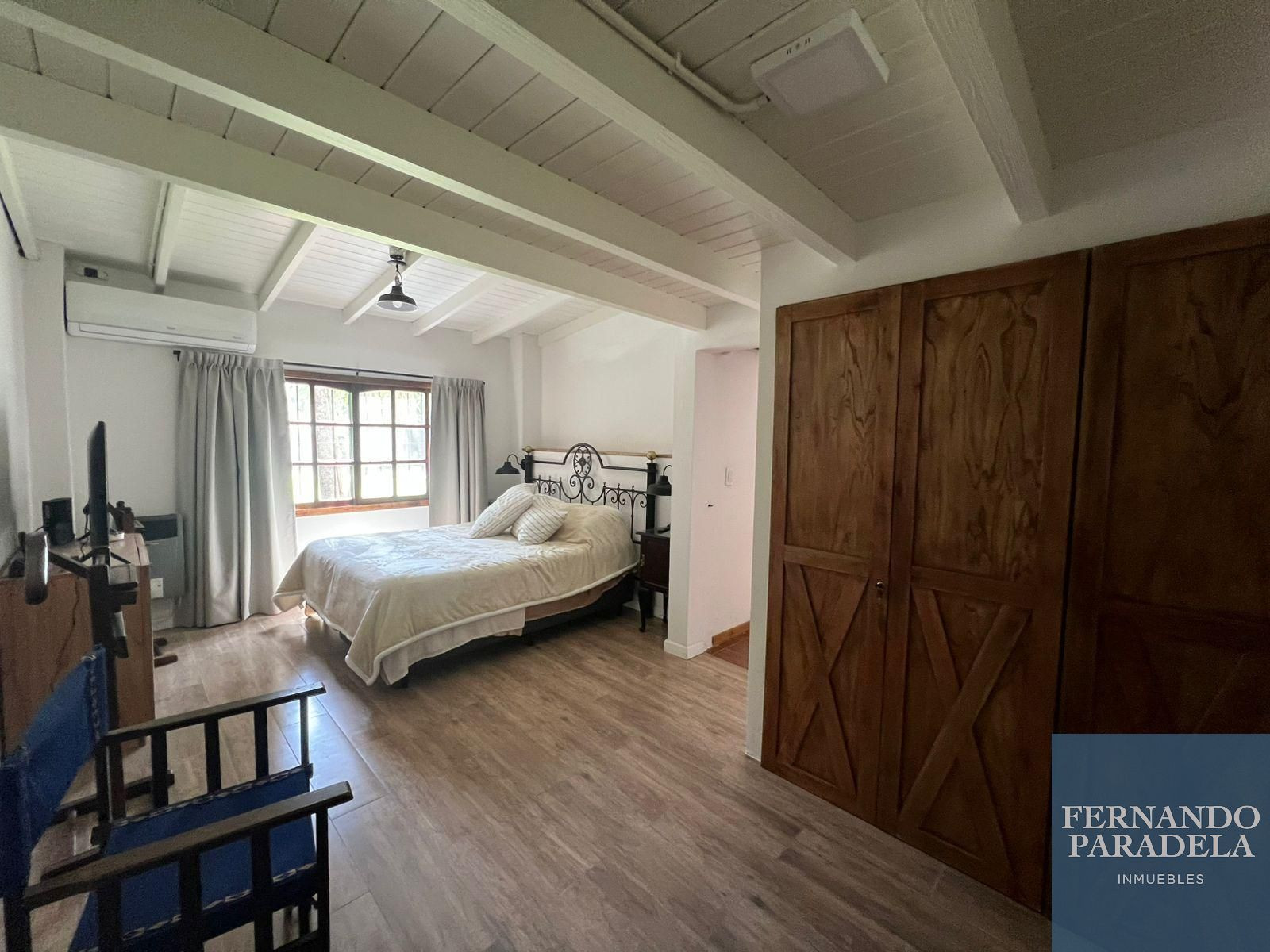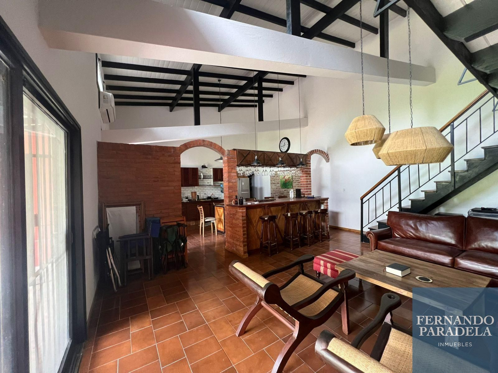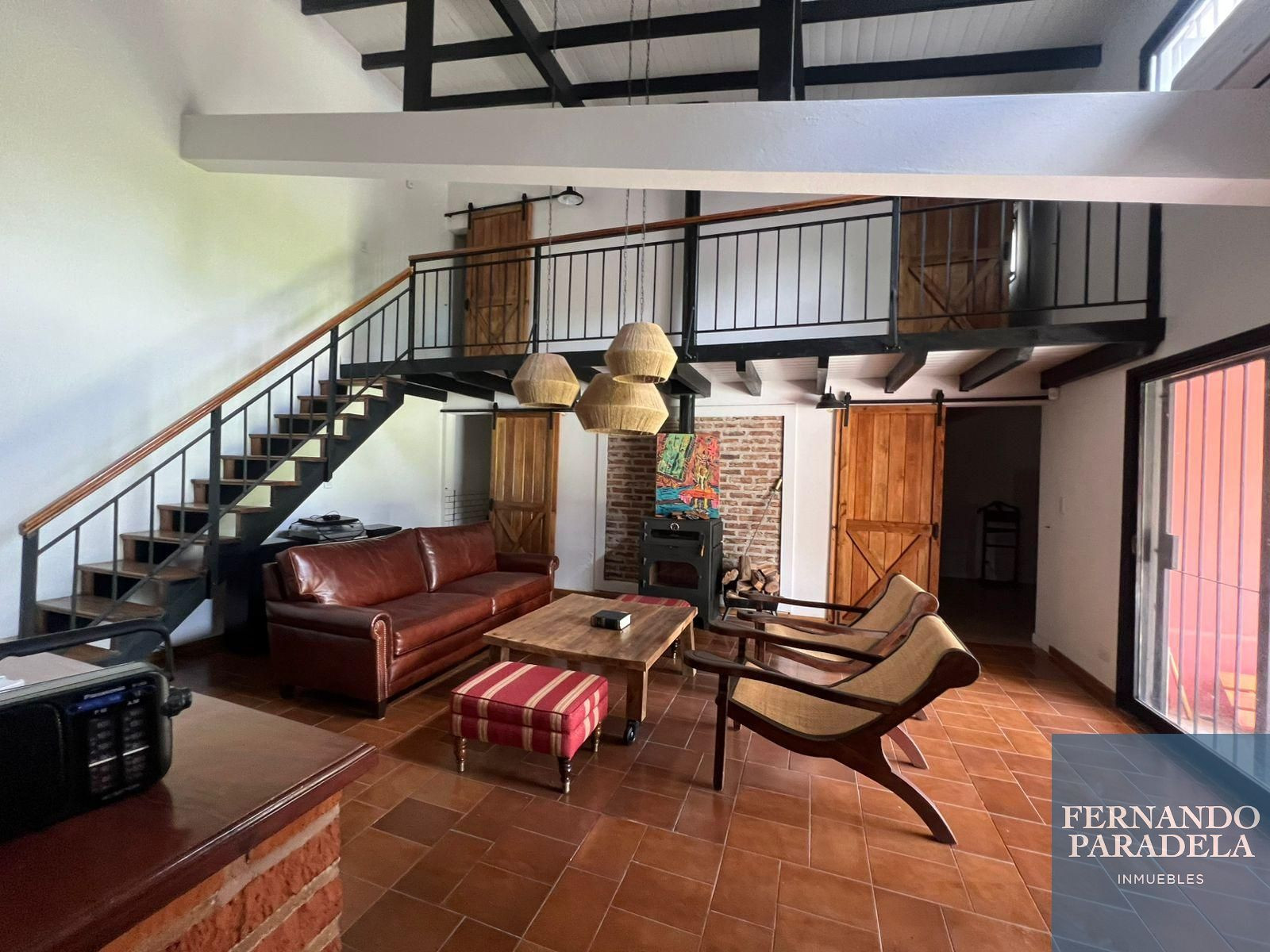 Casa reciclada a nuevo en un lote de 631 m², en Haras Myriam, ubicada al fondo del terreno. Tiene galería tipo porche con puerta doble, un ambiente integrado con cocina con barra y living, y vistas al jardín. Cuenta con suite principal con baño completo y placard, segundo dormitorio y otro baño completo; en planta alta, balcón hacia el living y 2 dormitorios. Dispone de lavadero y altillo de guardado con acceso al tanque, jardín con pileta con filtro y quincho semicubierto. Incluye portón automá