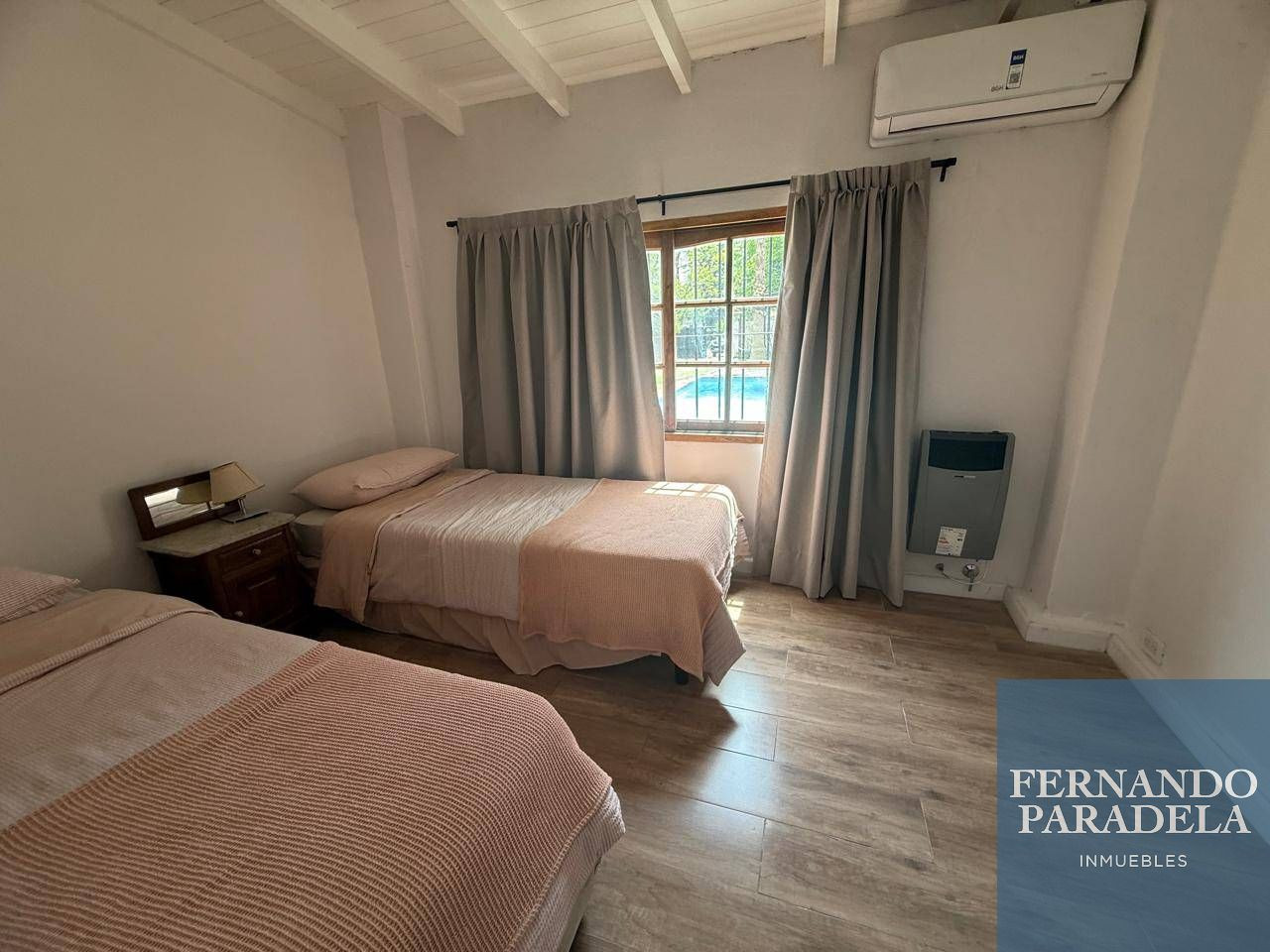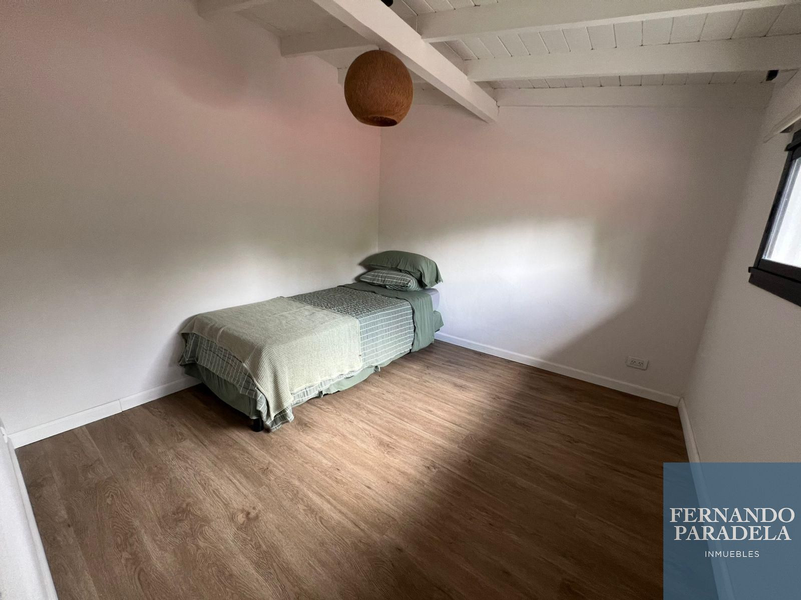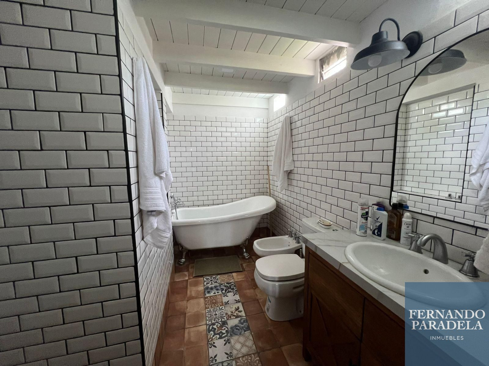 Casa reciclada a nuevo en un lote de 631 m², en Haras Myriam, ubicada al fondo del terreno. Tiene galería tipo porche con puerta doble, un ambiente integrado con cocina con barra y living, y vistas al jardín. Cuenta con suite principal con baño completo y placard, segundo dormitorio y otro baño completo; en planta alta, balcón hacia el living y 2 dormitorios. Dispone de lavadero y altillo de guardado con acceso al tanque, jardín con pileta con filtro y quincho semicubierto. Incluye portón automá