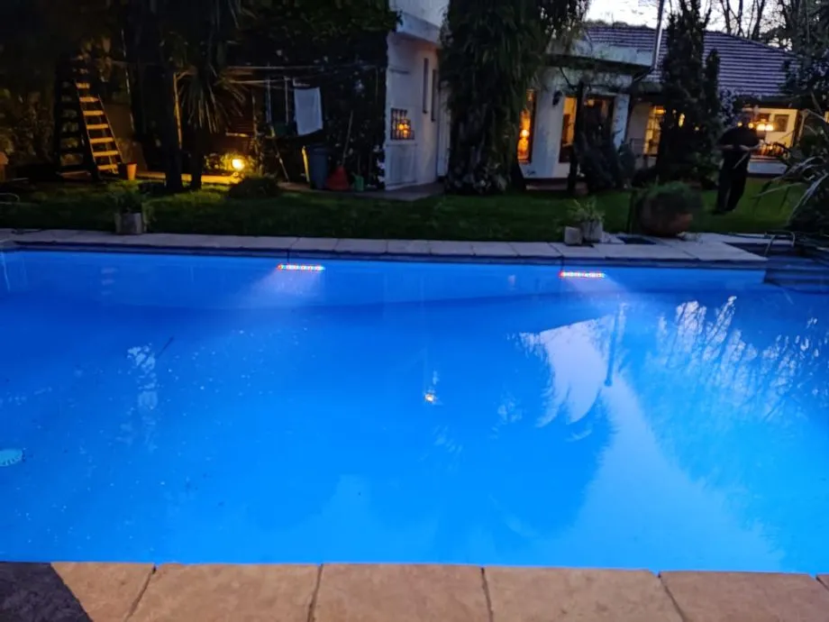 Chalet para alquiler temporario en Parque Leloir con 4 dormitorios y gran piscina en un parque. Cuenta con quincho completo con parrilla tradicional y parrilla a gas, aire acondicionado en todos los dormitorios y en el quincho, y galería. Hay 3 baños distribuidos entre planta baja y planta alta. Incluye mantenimiento de parque y pileta; el consumo de luz y gas se toma para ver el gasto. El servicio eléctrico y gas es “todo incluido” para el inquilino; se solicita depósito en garantía y honorario