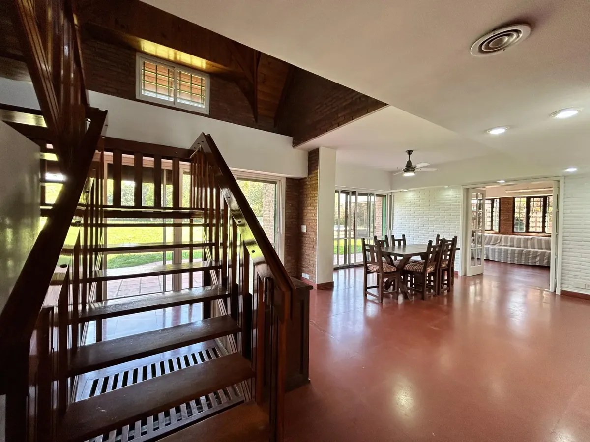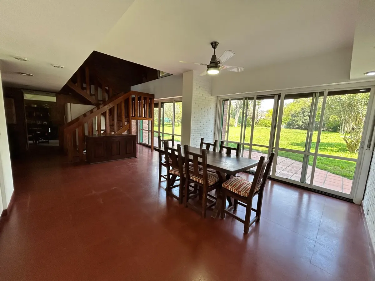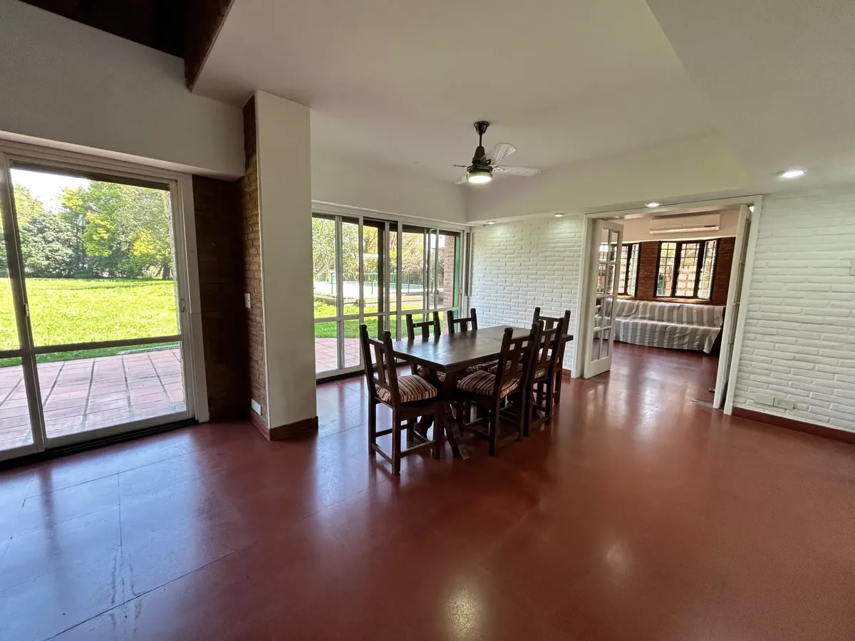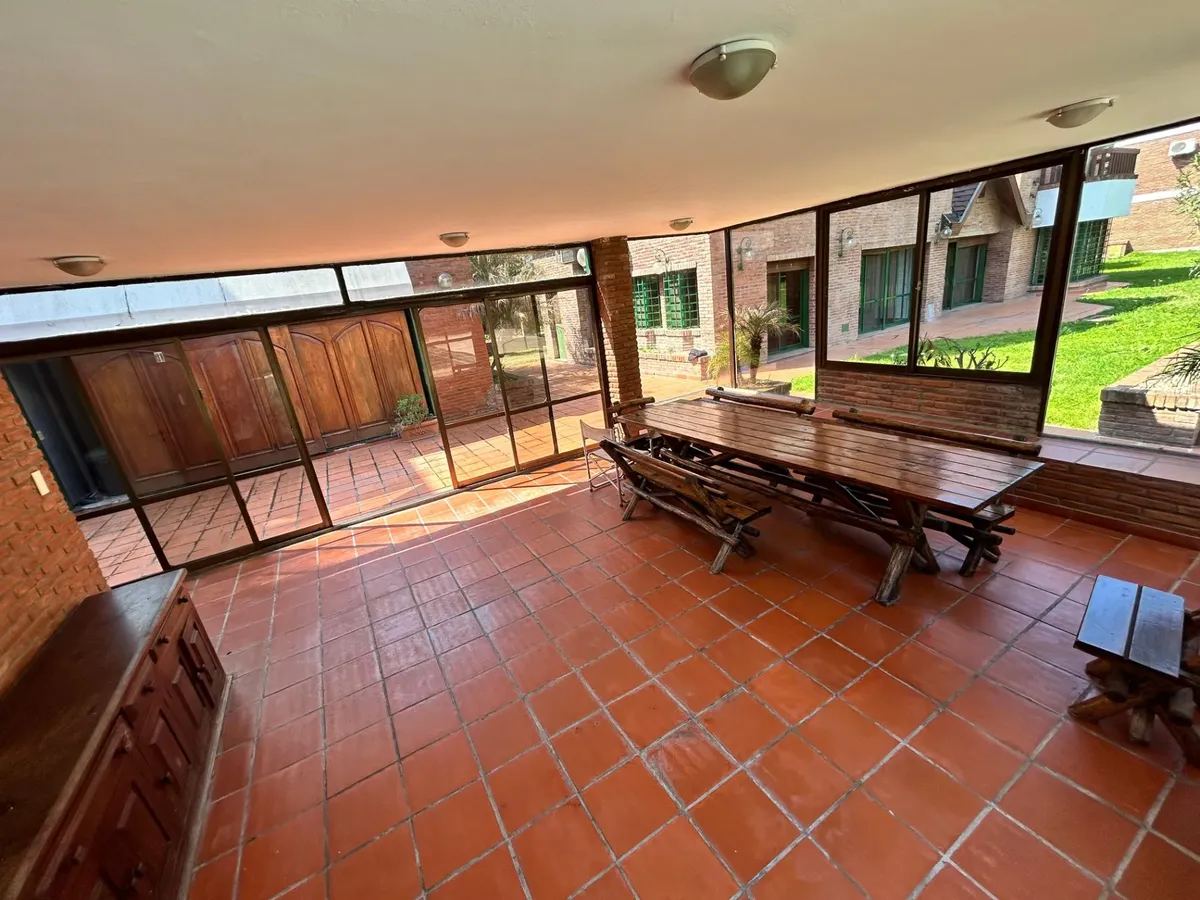 Casa en alquiler en Ituzaingó, desarrollada sobre un lote de 4000 m². Cuenta con 4 dormitorios y 4 baños completos. Incluye pileta, parque y quincho, y cochera cubierta con capacidad para 4 vehículos. Se ofrece amueblada y acepta mascotas.