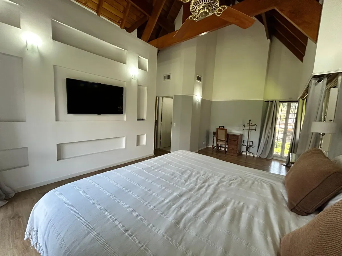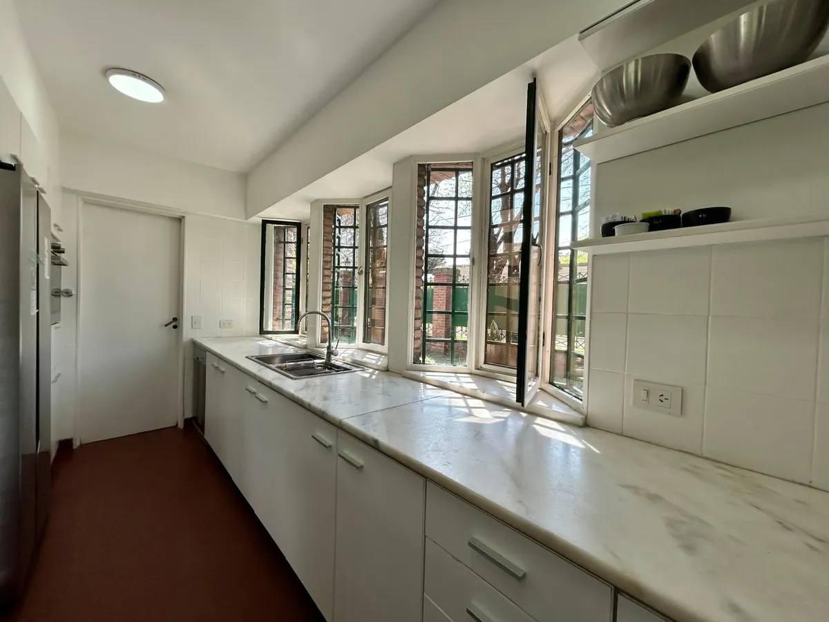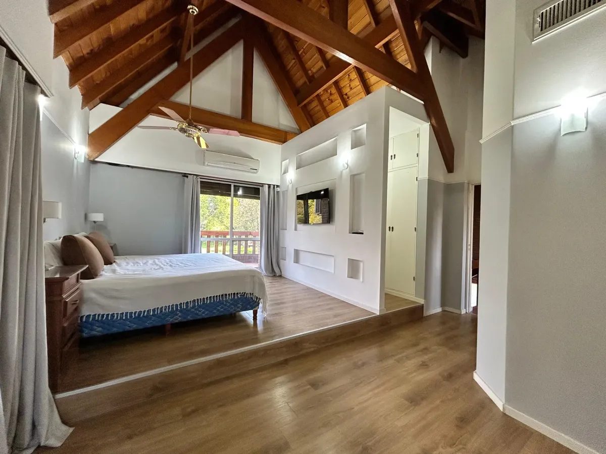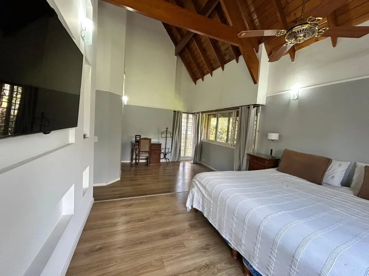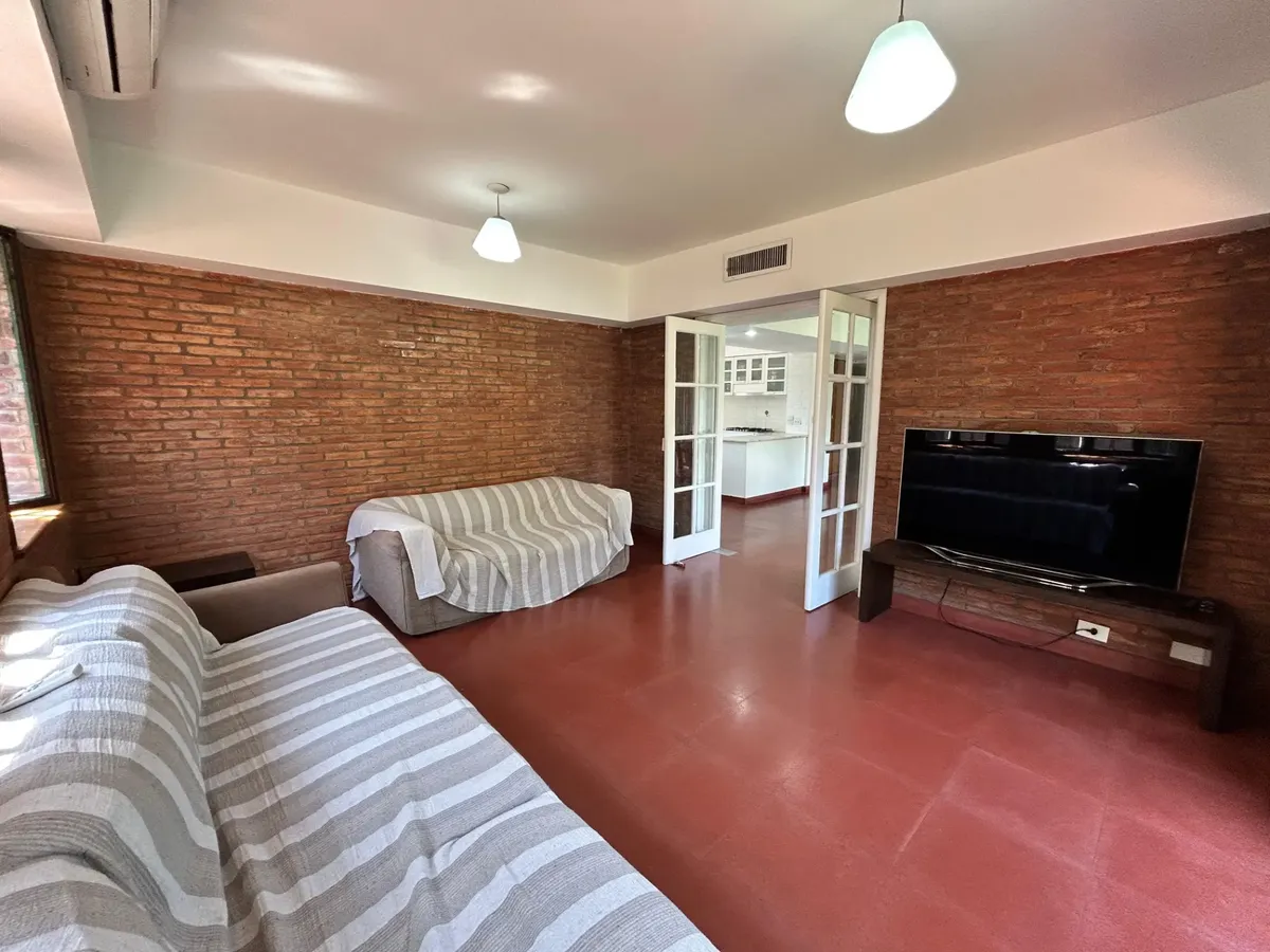 Casa en alquiler en Ituzaingó, desarrollada sobre un lote de 4000 m². Cuenta con 4 dormitorios y 4 baños completos. Incluye pileta, parque y quincho, y cochera cubierta con capacidad para 4 vehículos. Se ofrece amueblada y acepta mascotas.