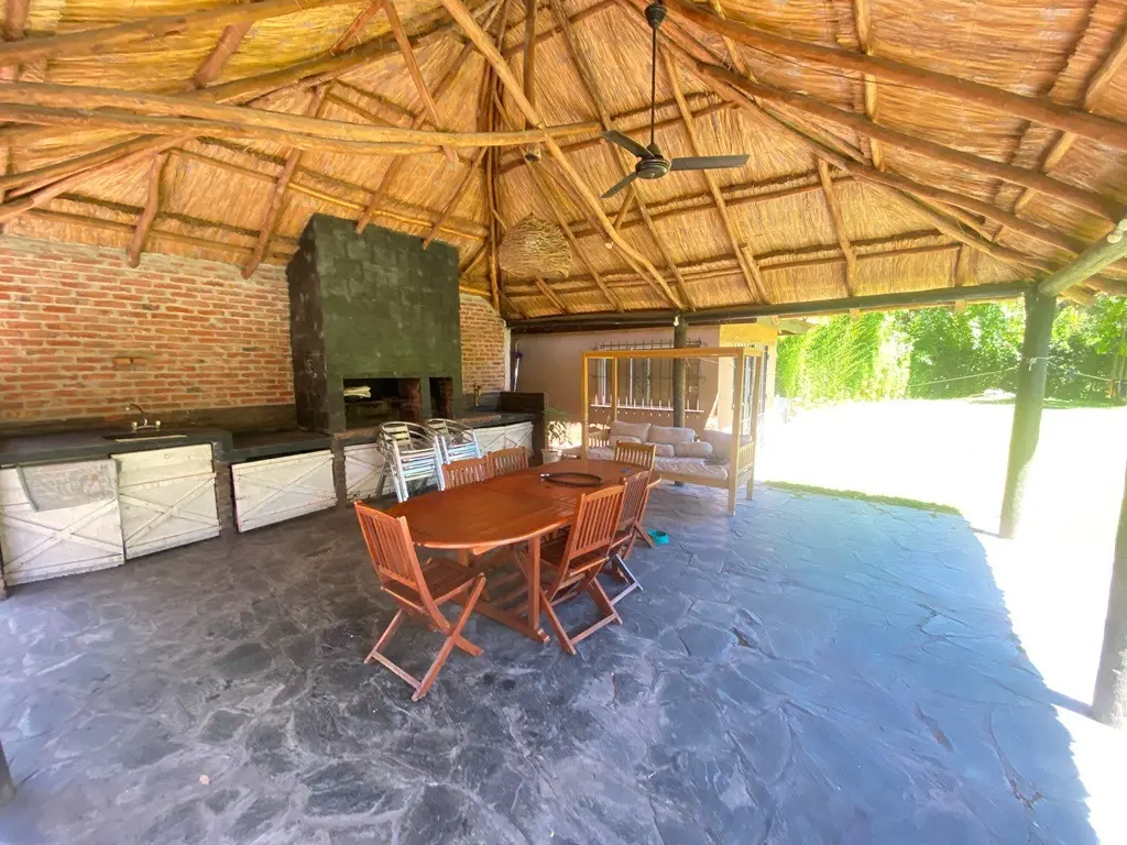 Casa en alquiler permanente en Parque Leloir, Ituzaingó. Cuenta con 4 dormitorios, 2 baños completos, toilette de recepción y un espacio de escritorio. El terreno es de 1378 m² e incluye living comedor con cocina integrada (8x5), quincho semicubierto con parrilla (7x7) y baño exterior, pileta de natación con filtro, y entrada de autos con portón automatizado. Se entrega amoblada y se alquila con seguro de caución exclusivamente.