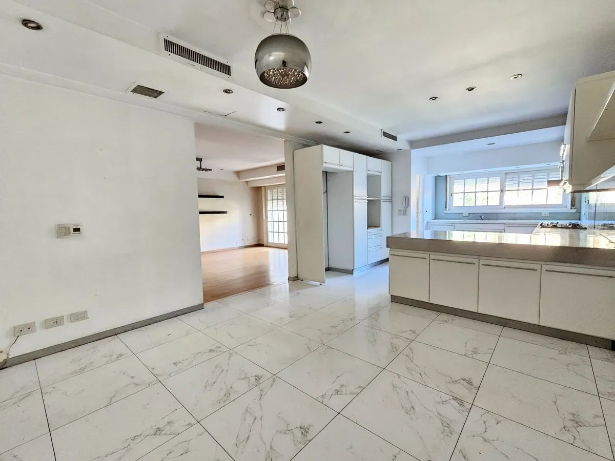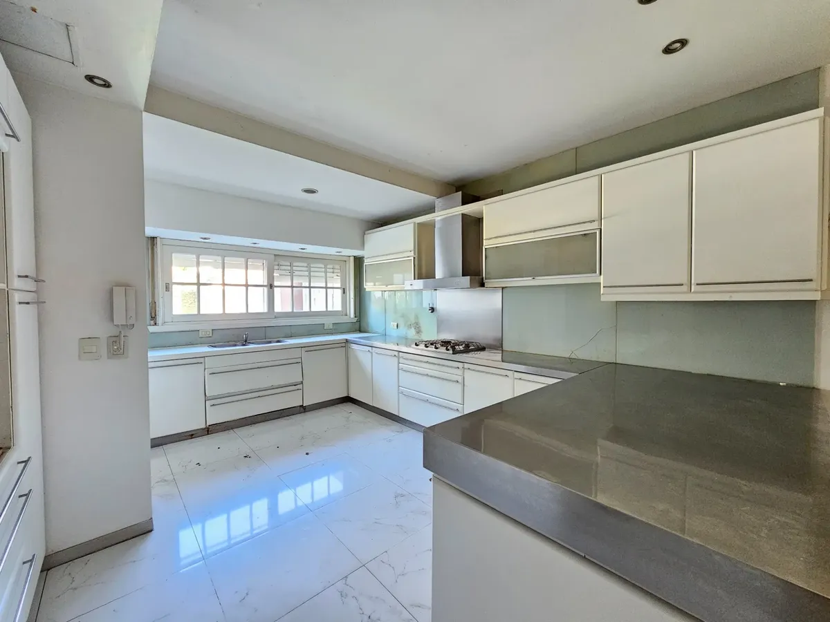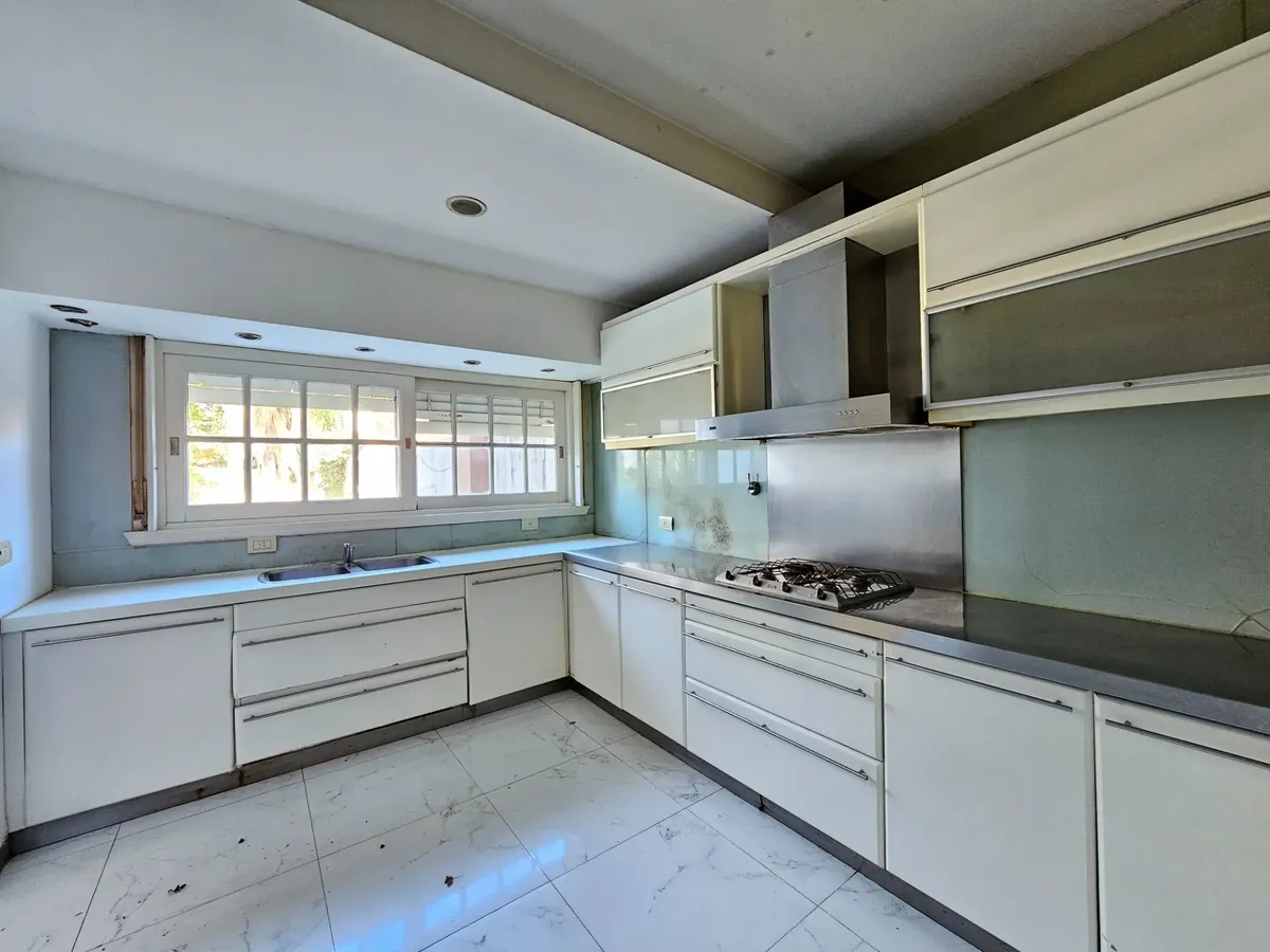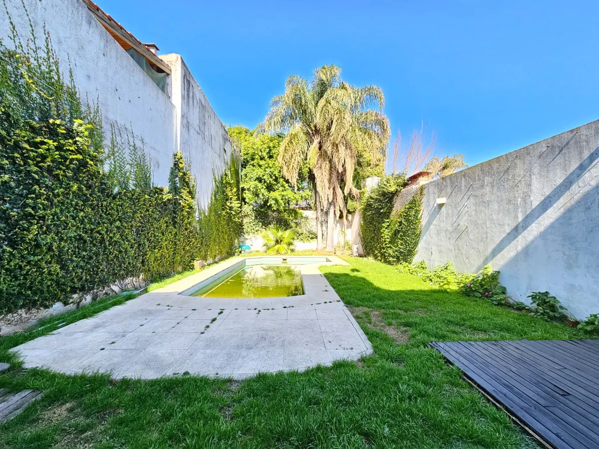 Chalet de 5 ambientes en 3 plantas en Ramos Mejía, con fondo libre y pileta. Incluye garage para 3 autos y habitación de servicio, y cuenta con solarium. En planta baja tiene living al frente, escritorio, baño completo con antebaño, jardín de invierno, comedor al contrafrente y cocina comedor diario con salida al jardín. En 1º piso dispone de suite al frente con vestidor, 2 dormitorios al contrafrente con baño completo y vestidor, y en 2º piso hay playroom. En subsuelo ofrece garage para 2 autos