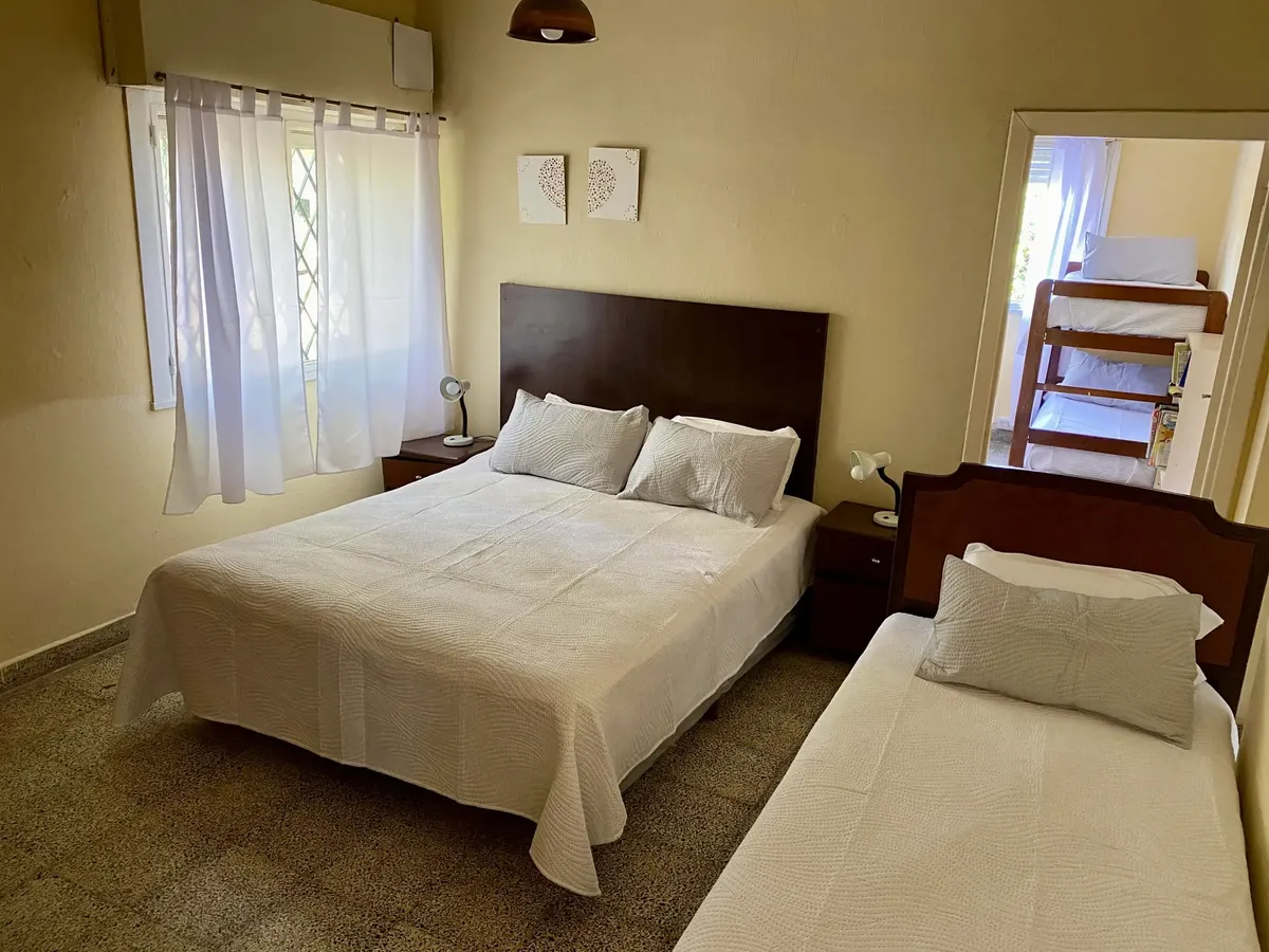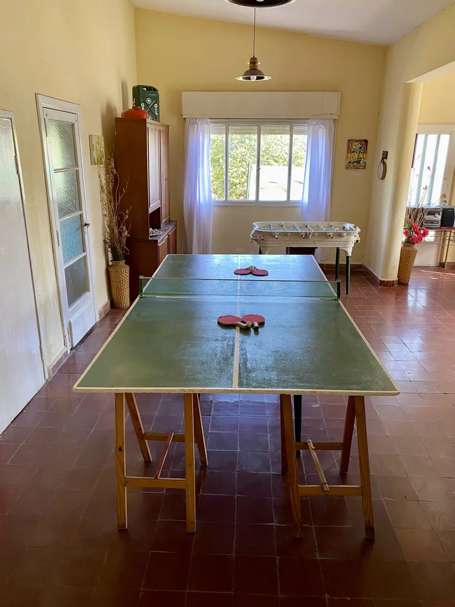 Quinta para alquiler turístico en 20 de Junio, con capacidad para 12 personas. Cuenta con 4 habitaciones, un living con metegol y ping-pong, y quincho cerrado con sector de asador criollo al aire libre. Incluye 2 piletas, canchas de vóley y tenis, cancha de básquet y juegos, con sector con sombra.