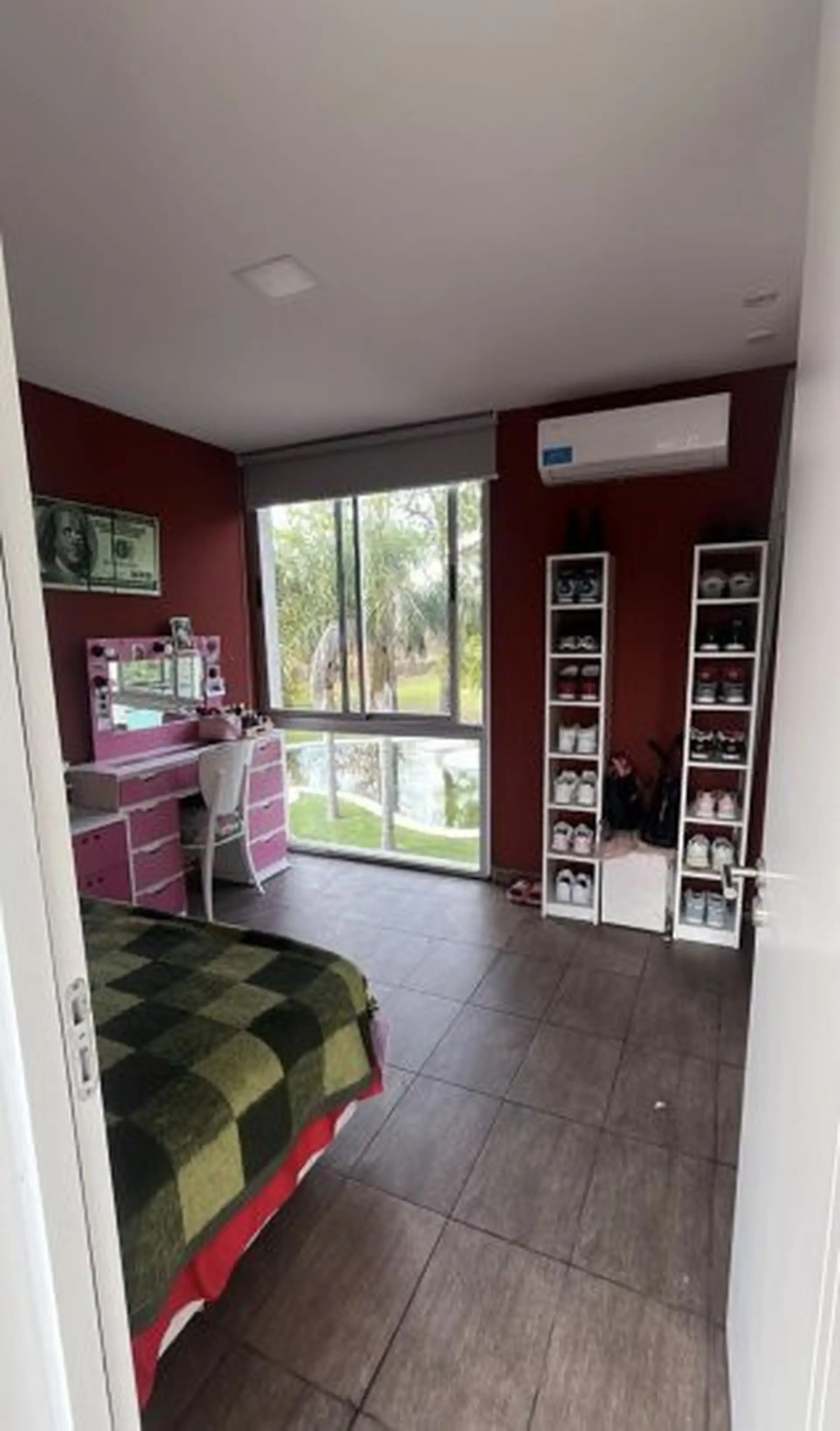 Casa en alquiler en Las Perdices, en un club de campo de Virrey del Pino, de 2 plantas. Cuenta con 4 dormitorios: 3 amplios dormitorios, con el principal en suite y vestidor, doble bacha y bañera con hidromasaje; el segundo y tercer dormitorio con placares con frentes espejados. Incluye living-comedor con salida al jardín mediante galería con parrilla, cocina integrada con desayunador e isla con horno y anafe eléctrico, lavadero independiente con salida al exterior y 2 baños completos adicionale