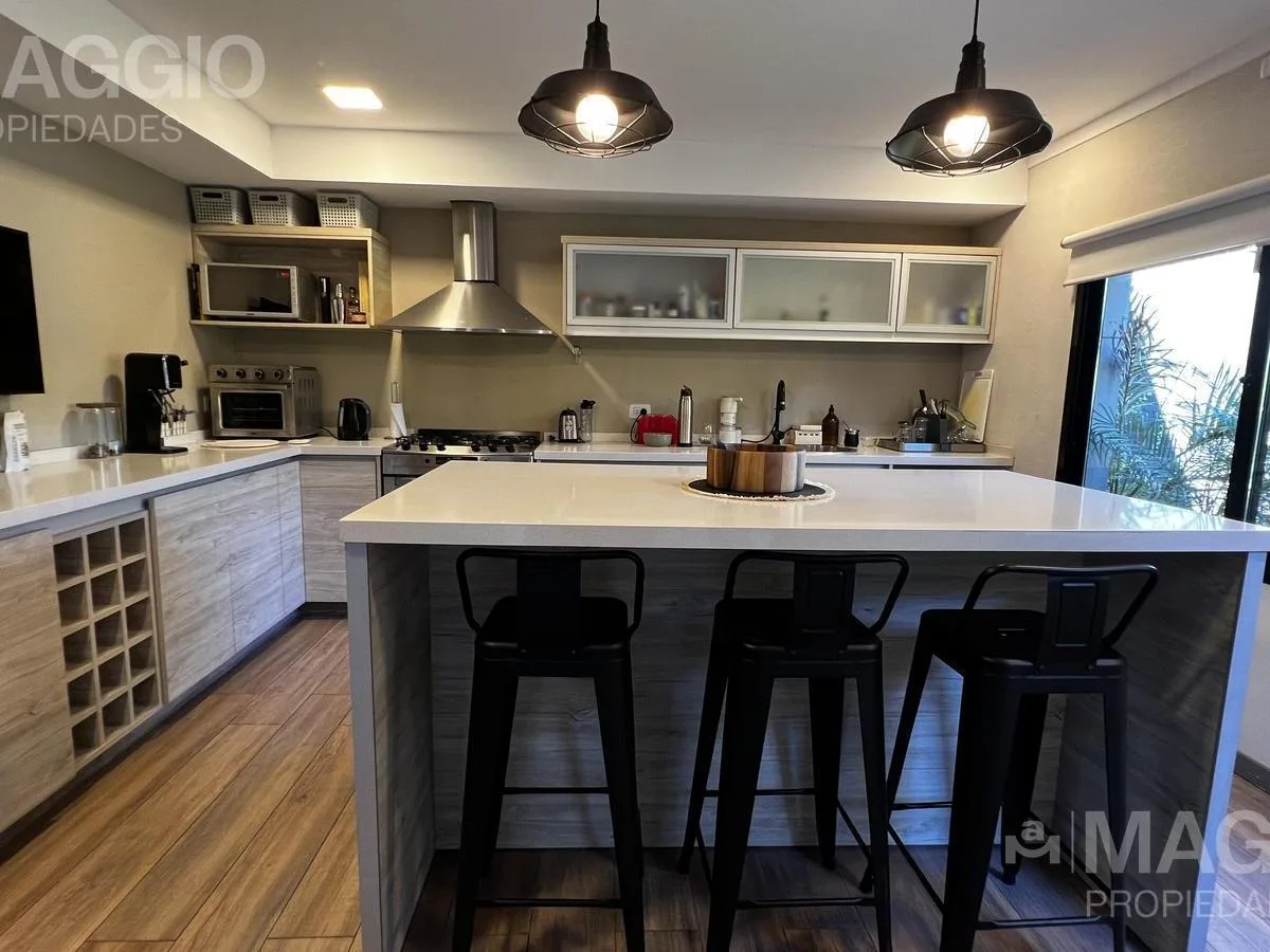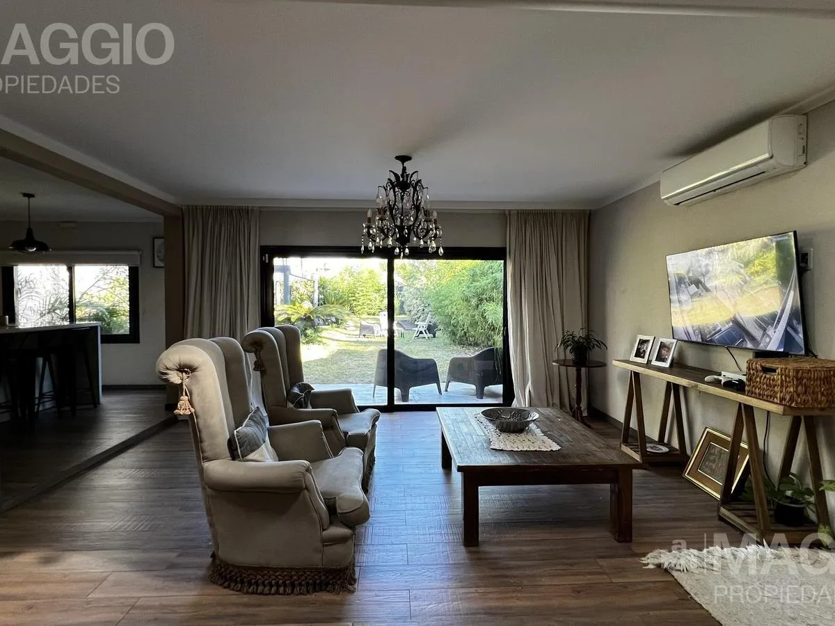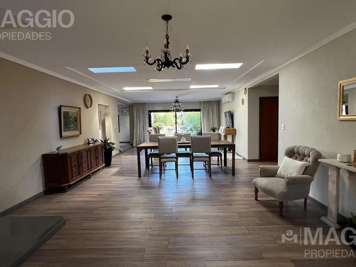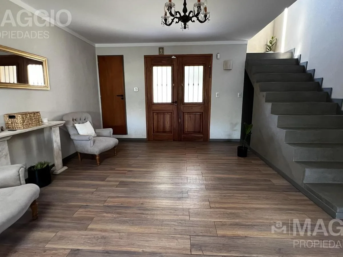 Casa de 2 pisos en Villa Luzuriaga, Zapiola 300. Tiene 593 m² totales, con 210 m² cubiertos, y 5 ambientes con 4 dormitorios, 2 baños completos y un toilette; el dormitorio principal cuenta con vestidor y los demás no tienen placard. Incluye living comedor, cocina, comedor diario, oficina y lavadero, además de baulera bajo escalera, vestidor, escritorio y galería. Cuenta con sistema de alarma monitoreada, cerco eléctrico, losa radiante general y aire acondicionado individual, con servicios de ag