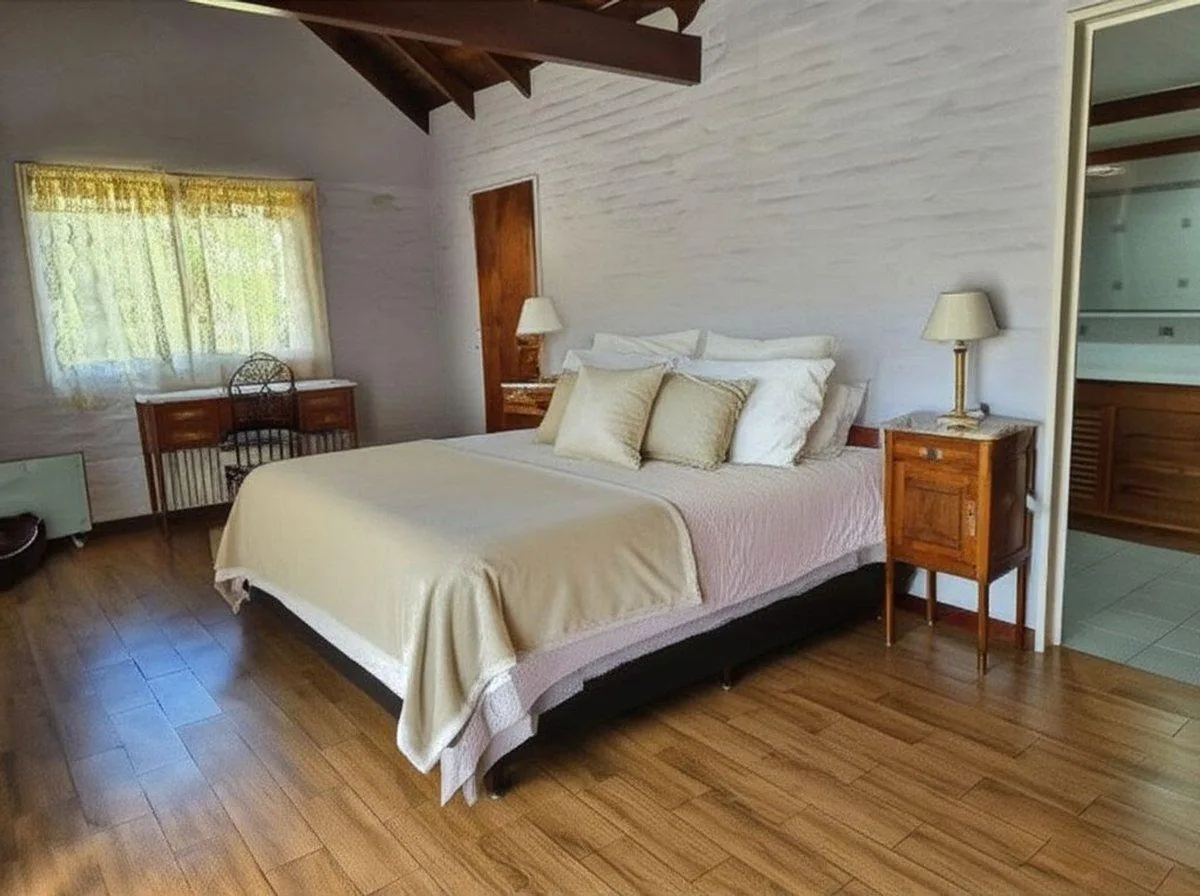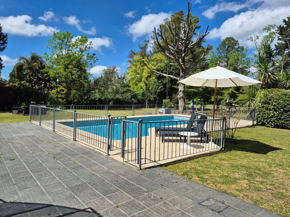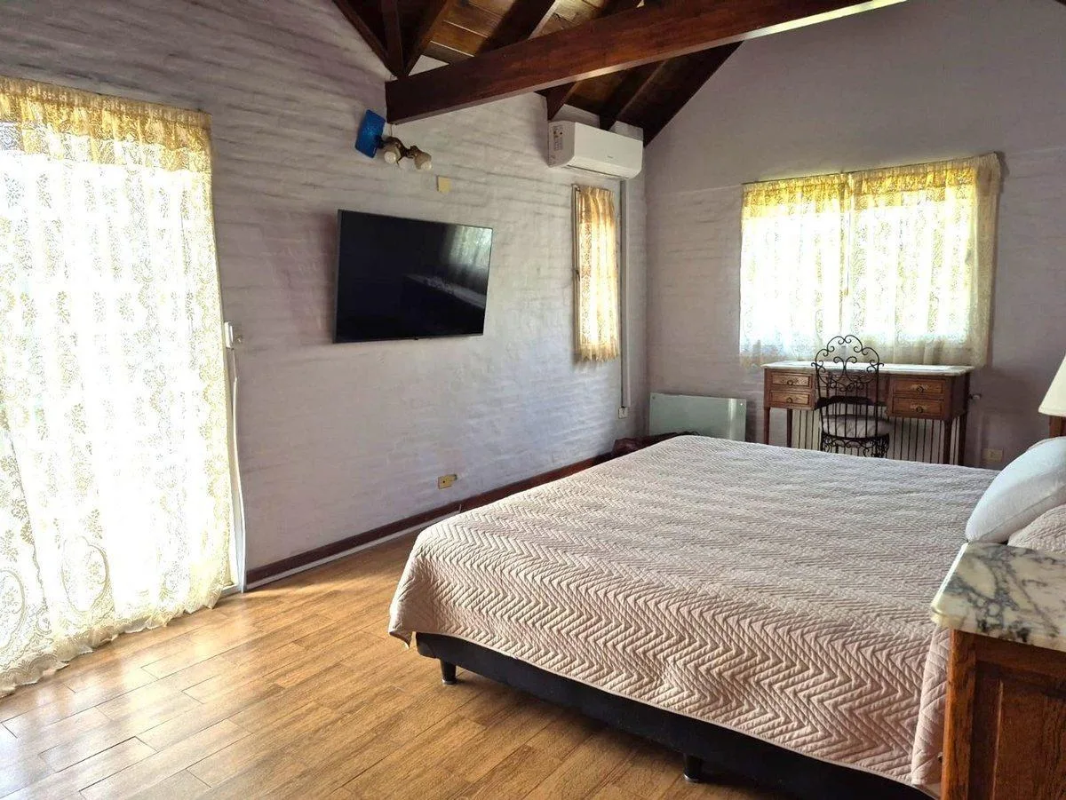 Casa de 6 ambientes con parque de 2000 m² y pileta. Incluye quincho y capacidad para hasta 10 personas. En planta baja: living con hogar, hall de recepción y toilette; sala de estar y comedor formal con salida al jardín; cocina equipada con heladera con freezer, microondas, cafetera, pava eléctrica y cocina Bosch de 6 hornallas, con horno, extractor y vajilla para 12 personas; 2 habitaciones (1 con cama matrimonial y 1 con 2 camas individuales tipo sommier); baño completo con bañadera; estar rec