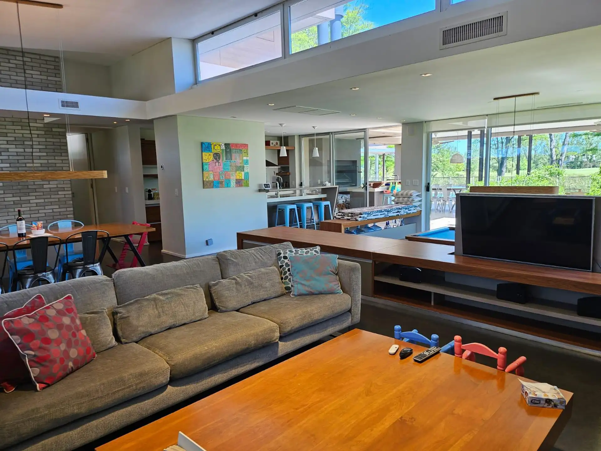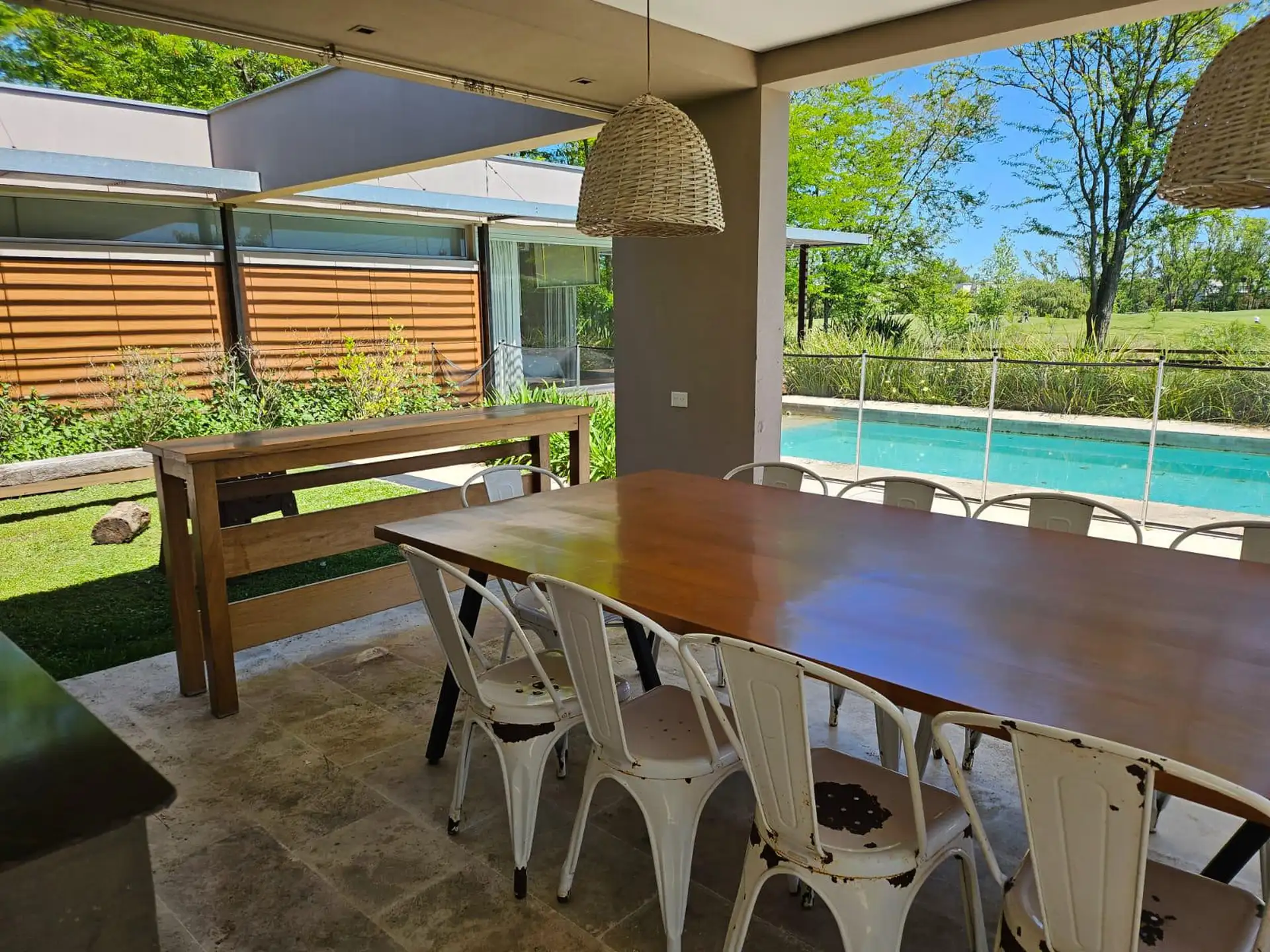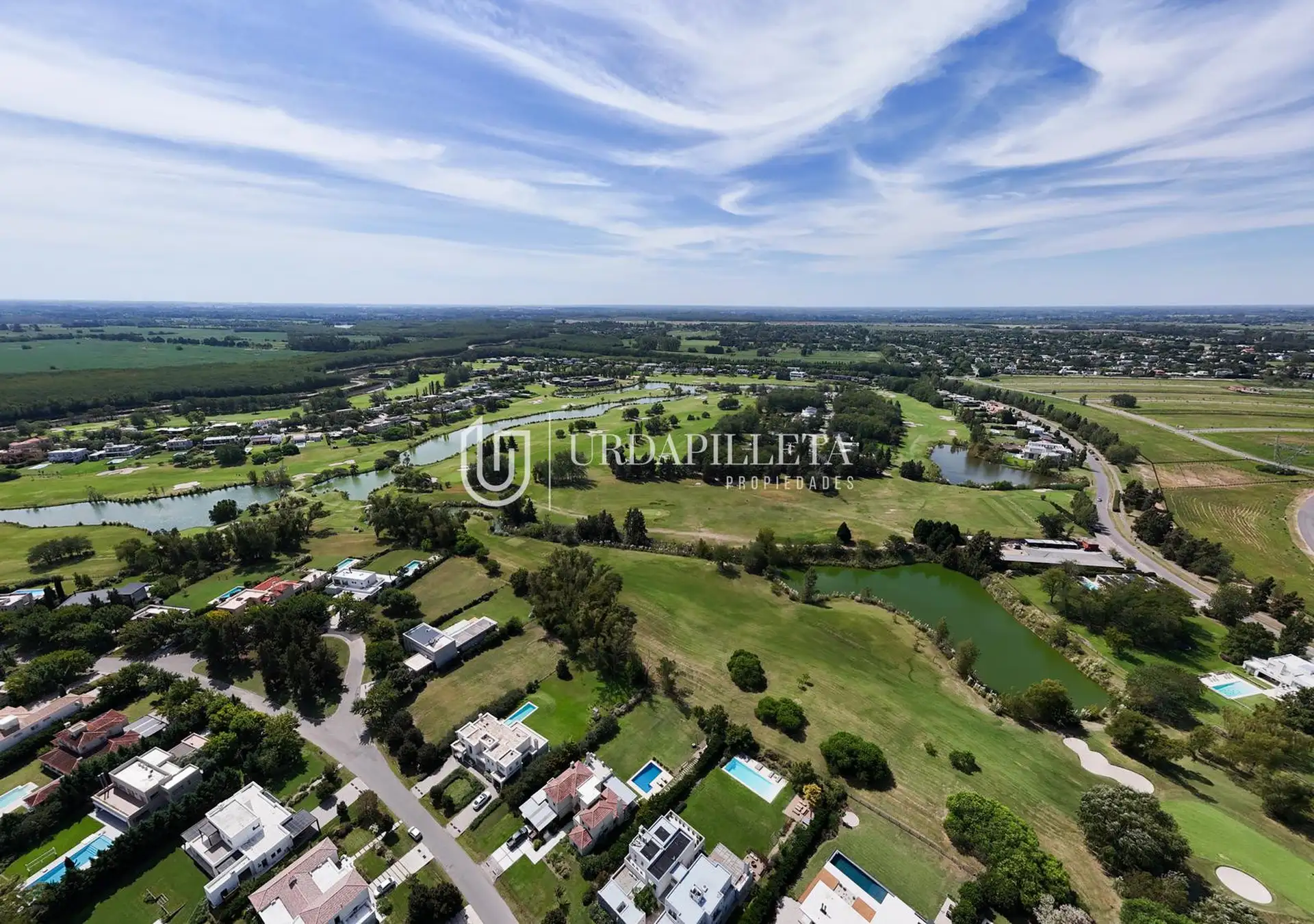 Casa en dos plantas en el Barrio Golf de Estancias del Pilar, implantada sobre un lote de 2.000 m² con vista abierta al golf y a la laguna. En planta baja cuenta con living comedor con desniveles y chimenea, cocina integrada, toilette, suite principal y 2 dormitorios que comparten 1 baño completo. En planta alta tiene playroom, lavadero y un cuarto adicional que puede funcionar como dormitorio, dependencia o espacio de trabajo.