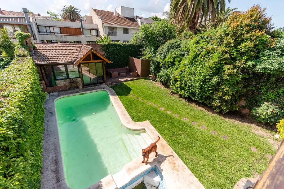Casa en alquiler y venta en Martínez, entre Av. Libertador y el río, sobre una calle de poco tránsito. Cuenta con 4 dormitorios, 2 suites, playroom, jardín con piscina y quincho, además de dependencias y lavadero independiente. La propiedad está por encima del nivel de la vereda; incluye hall de entrada, living comedor con salida al jardín, toilette, cocina con comedor diario y isla de Silestone, y cochera para 2 autos con espacio previo para 1 auto. En planta alta tiene escritorio pasante, pasi