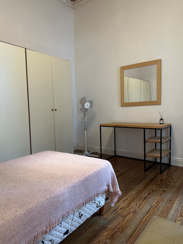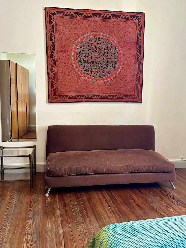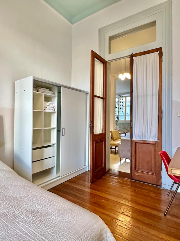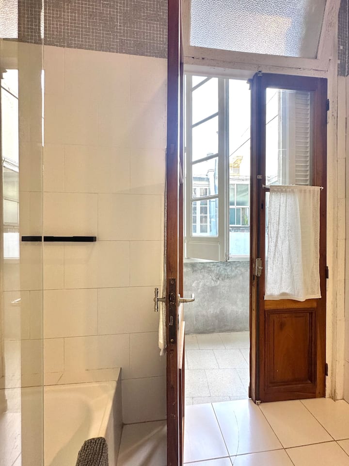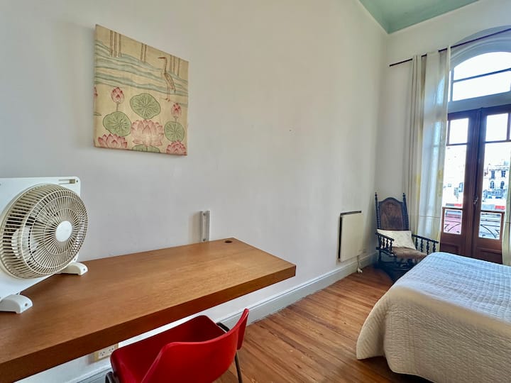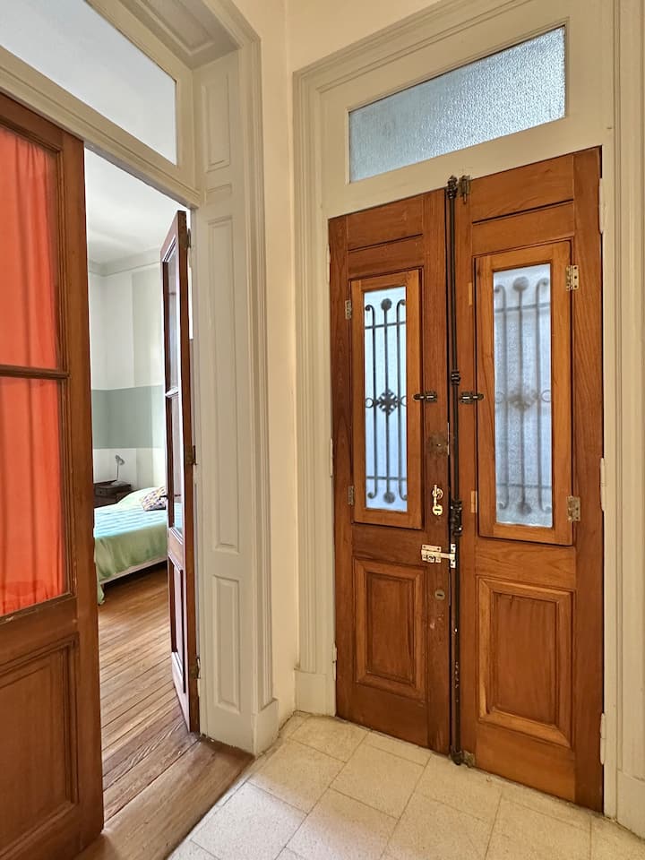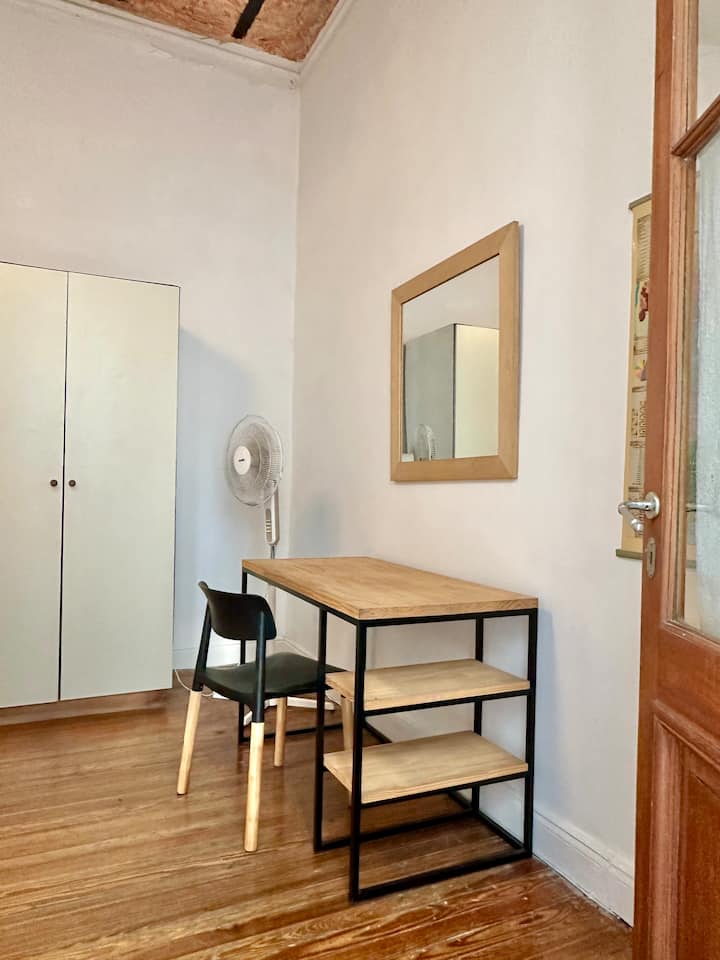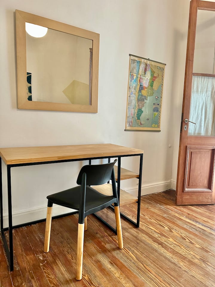 Departamento tipo loft renovado, de 4 dormitorios, ubicado en el distrito histórico de Monserrat. Cuenta con un living y espacio de comedor integrados a la zona de cocina, 2 dormitorios con cama doble, 2 dormitorios con cama simple y 2 baños. Tiene balcones a la calle y grandes ventanas. Está en un 2do piso y el edificio no tiene ascensor.