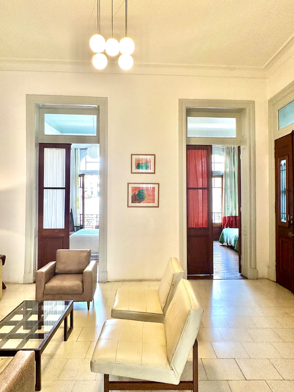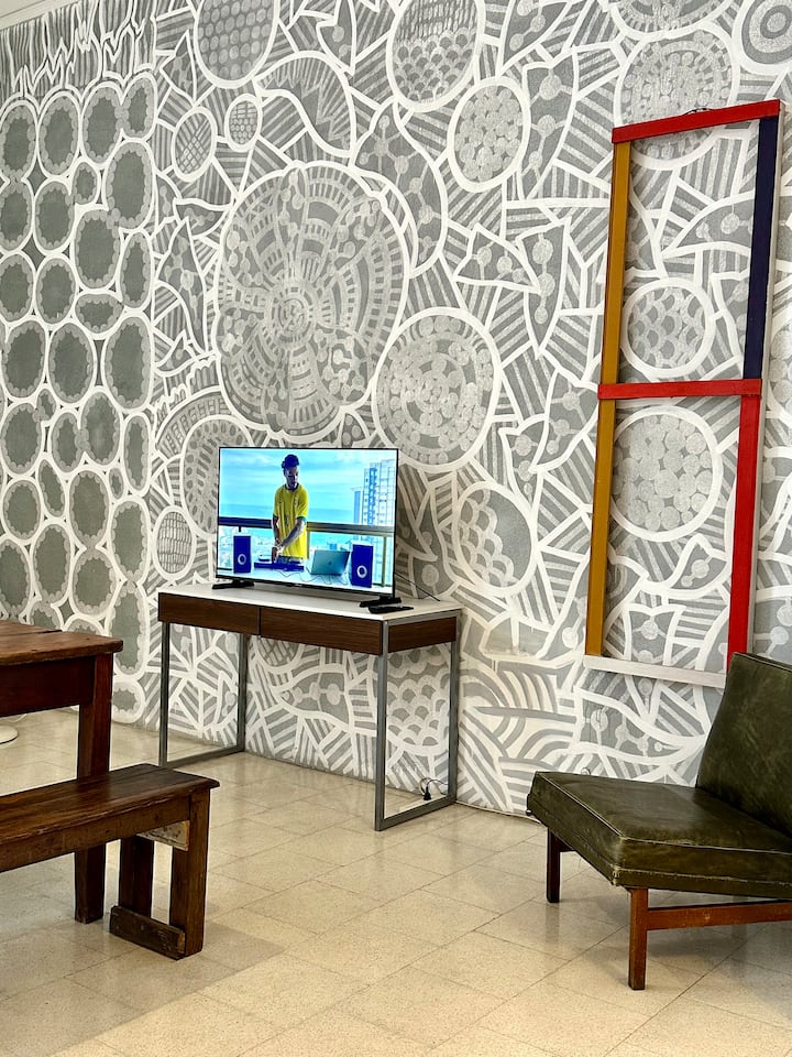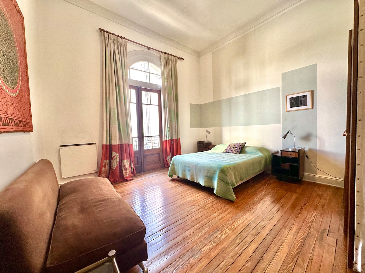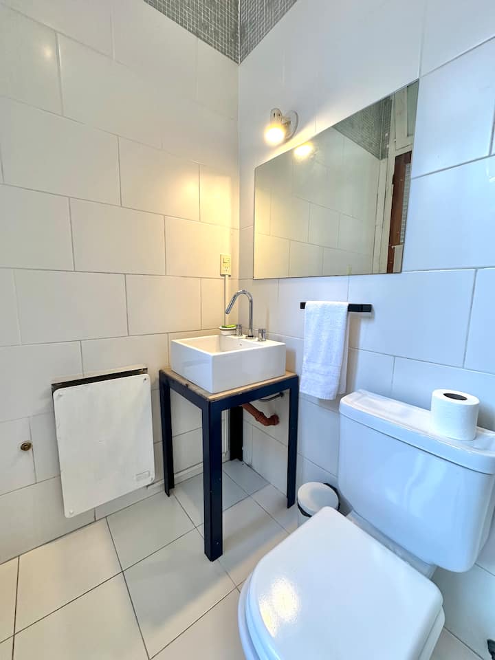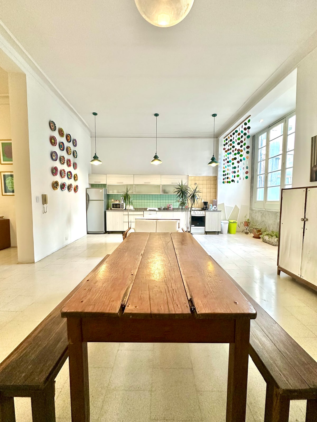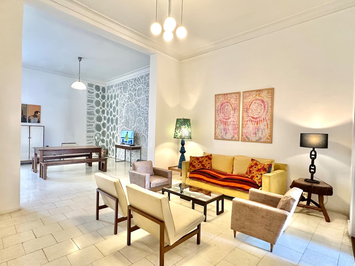Departamento tipo loft renovado, de 4 dormitorios, ubicado en el distrito histórico de Monserrat. Cuenta con un living y espacio de comedor integrados a la zona de cocina, 2 dormitorios con cama doble, 2 dormitorios con cama simple y 2 baños. Tiene balcones a la calle y grandes ventanas. Está en un 2do piso y el edificio no tiene ascensor.