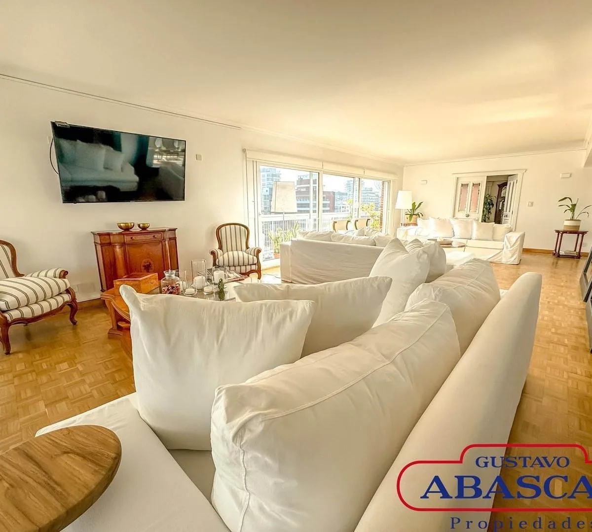 Piso en alquiler en Palermo, en Torre Aisenson. Cuenta con 4 o 5 dormitorios, de los cuales 2 son en suite, y 3 baños completos, más family room, estar íntimo y escritorio. Dispone de living y comedor independiente, gran recibidor con toilette y placard de recepción, balcón aterrazado, aberturas nuevas en PVC y DVH, puertas blindadas, pisos de parquet y 2 cocheras fijas con gran baulera. El edificio ofrece pileta, gym, SUM, solarium, jardín, vigilancia 24 hs, grupo electrógeno y reja perimetral,