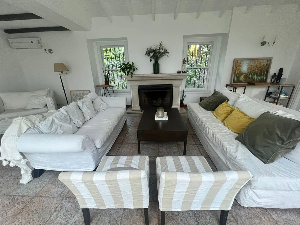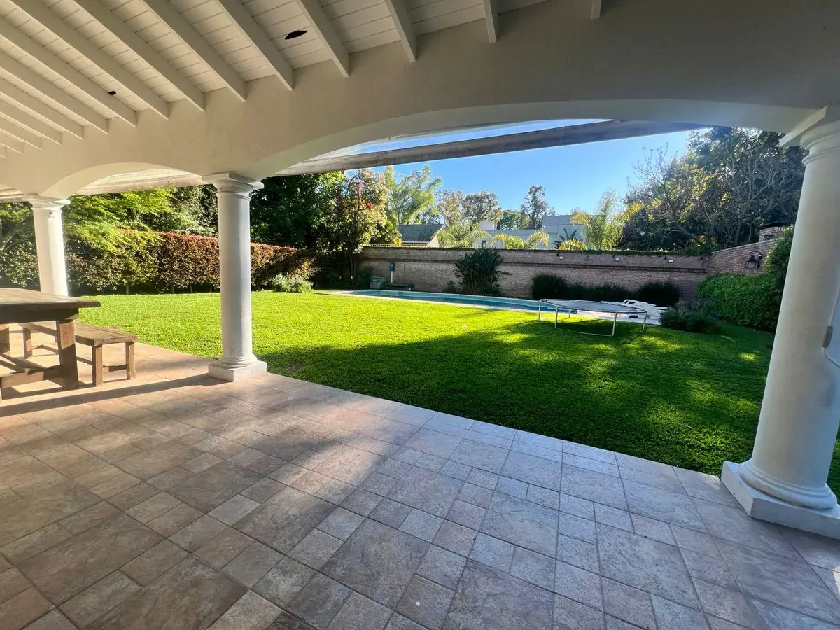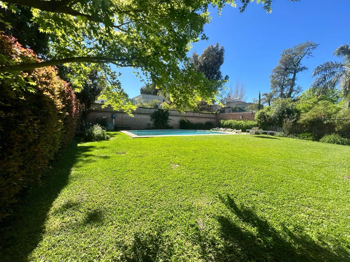 Casa de 4 dormitorios en San Isidro, disponible para alquiler temporario del 20 de diciembre al 10 de enero. El precio es USD 6.000 por el período completo. La planta baja cuenta con recepción con hall y patio interior con fuente, living, comedor principal separado para 10 personas, toilette de recepción y baño completo adicional; también incluye habitación/estar de TV, dependencia de servicio completa y lavadero independiente. La cocina está equipada con horno industrial y lavavajillas, y tiene