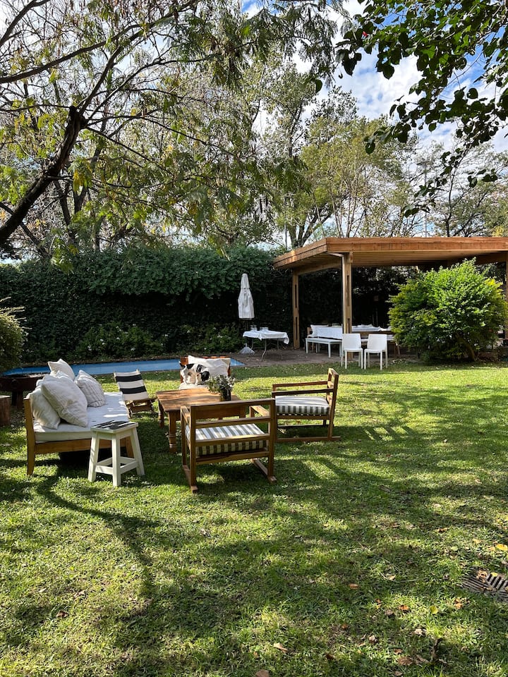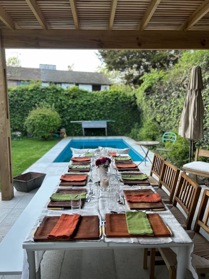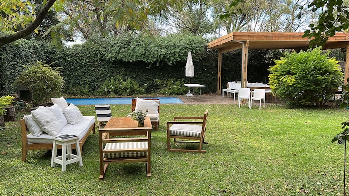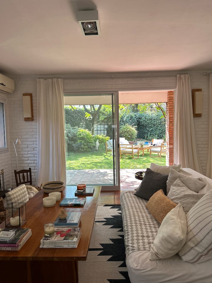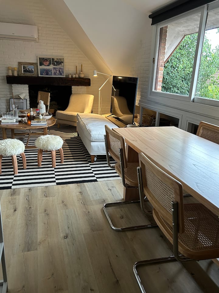 Departamento en San Isidro con 4 dormitorios, tres de ellos con cama doble. Incluye un dormitorio en suite. En el 3er piso cuenta con una sala de juegos con espacio para trabajar, con Wi-Fi y TV. Tiene living con acceso a jardín y quincho.