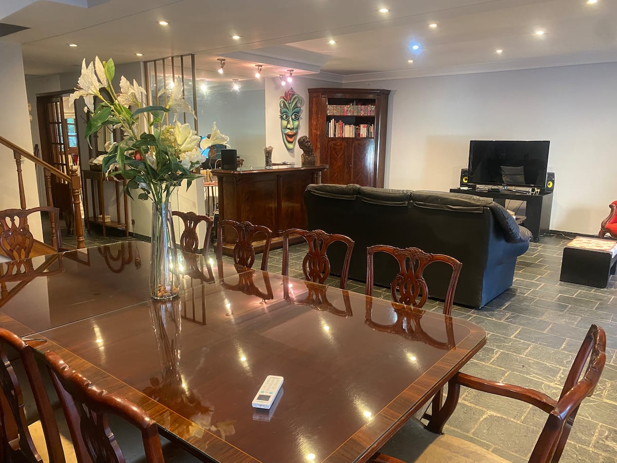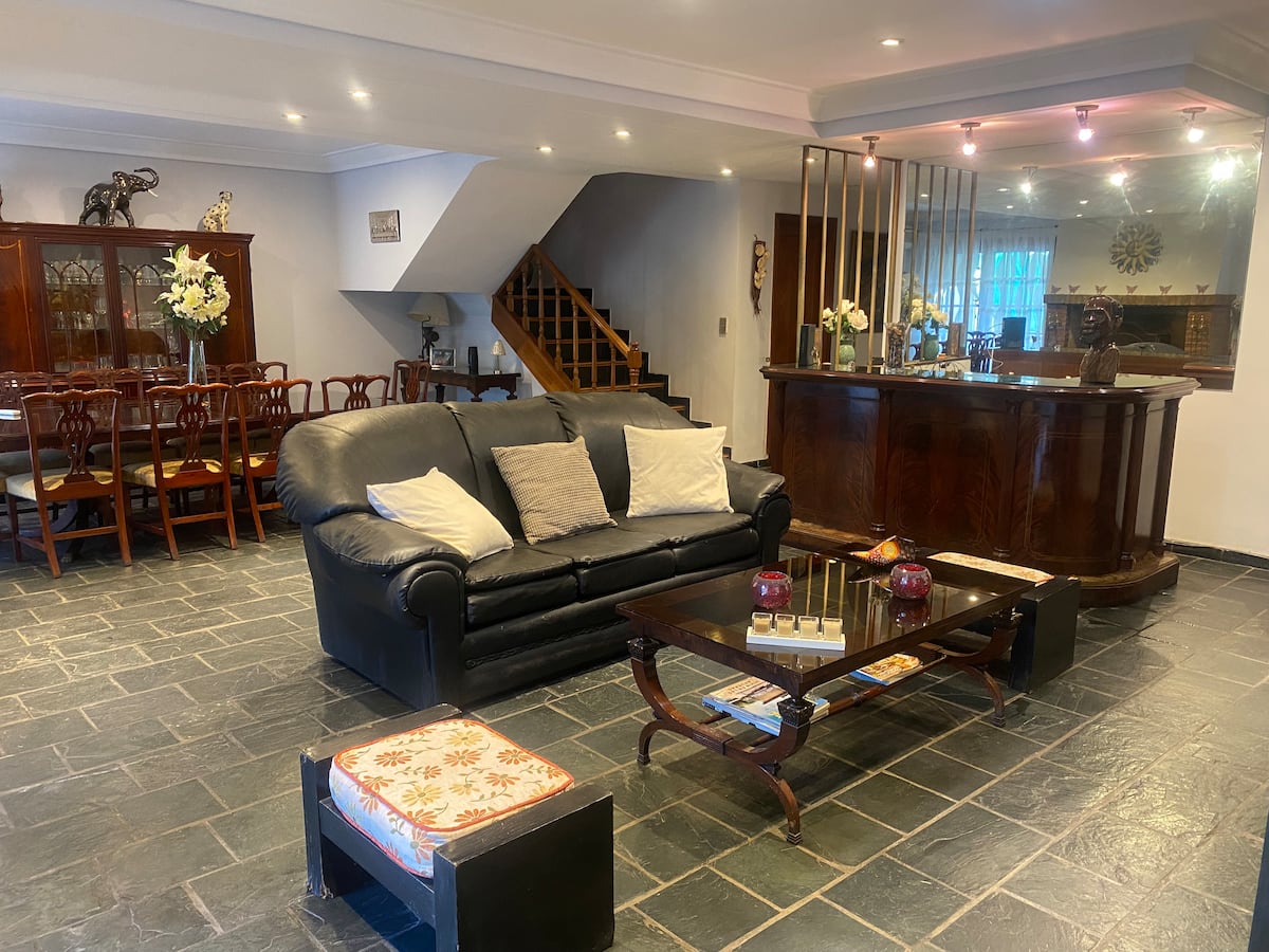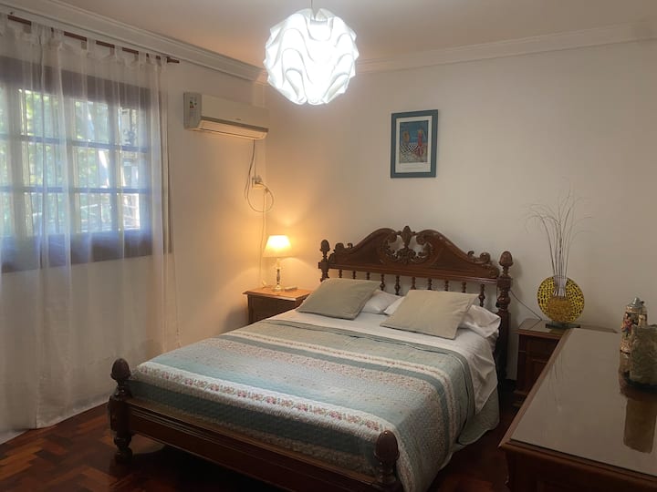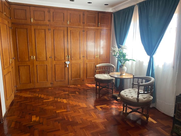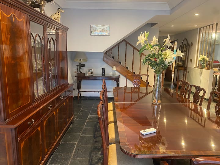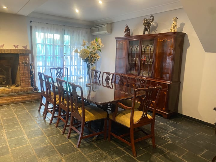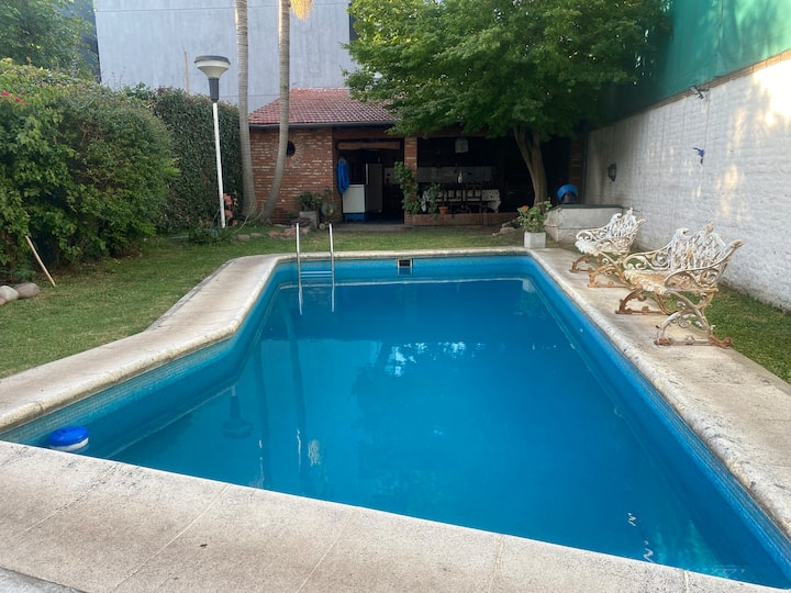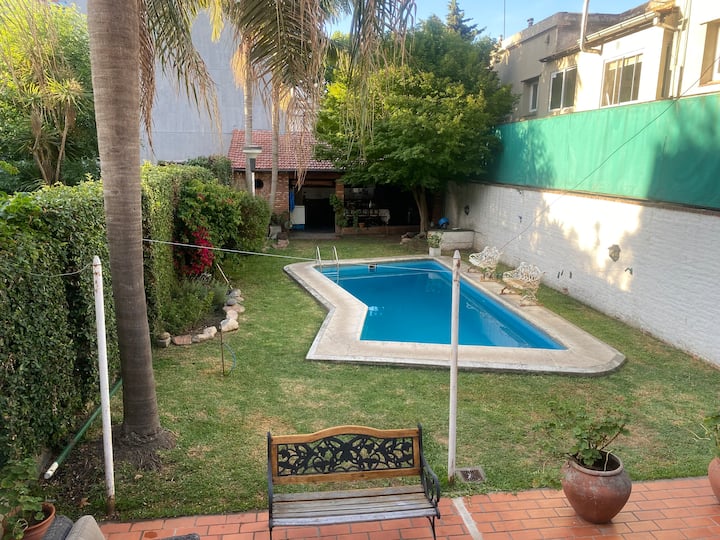Casa en 2 plantas en el centro de San Isidro, frente al hipódromo. En la planta baja cuenta con cocina con comedor diario, living, comedor de 10x5 y toilette. En la planta alta tiene 3 dormitorios, uno en suite de 10x5 con vestidor y baño con jacuzzi, y dos dormitorios con baño compartido. Desde el living se accede al jardín con piscina de 8x4 y quincho con baño. El acceso permite el uso de toda la casa.