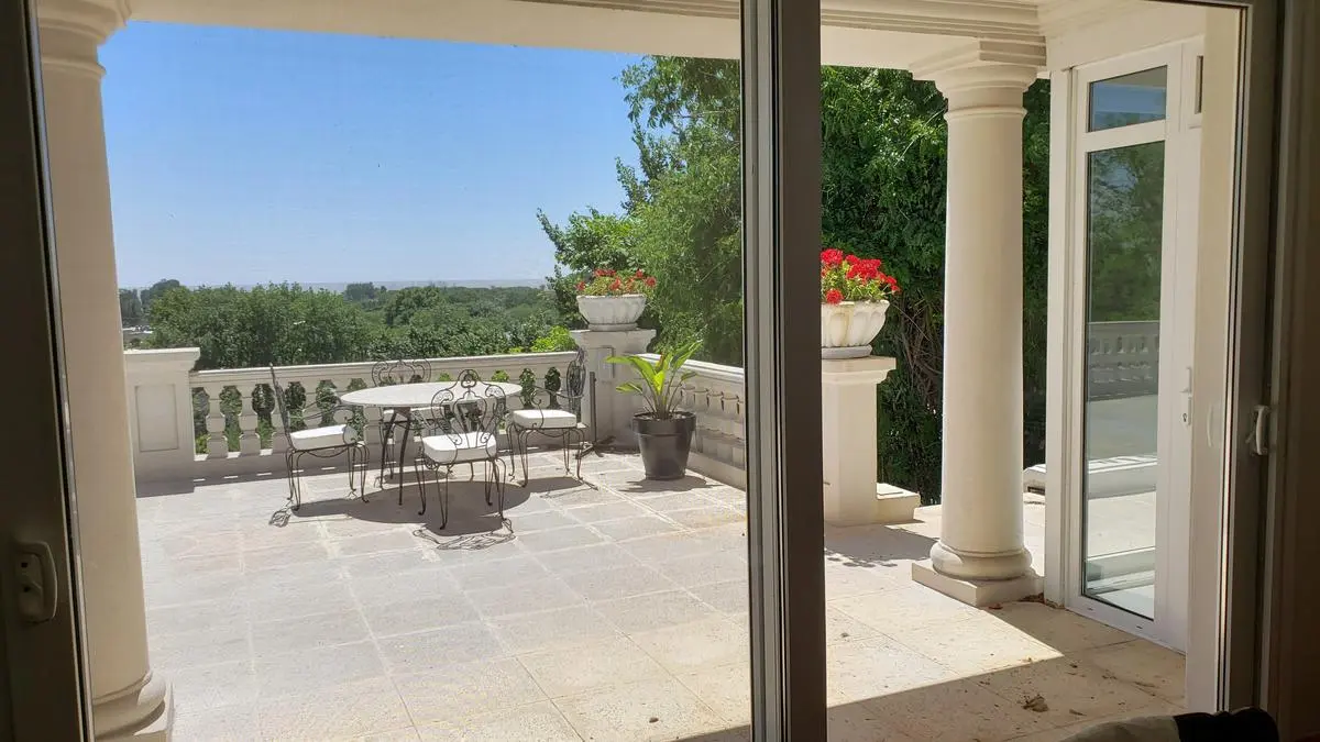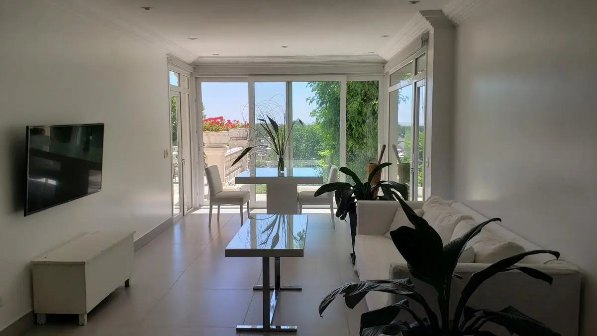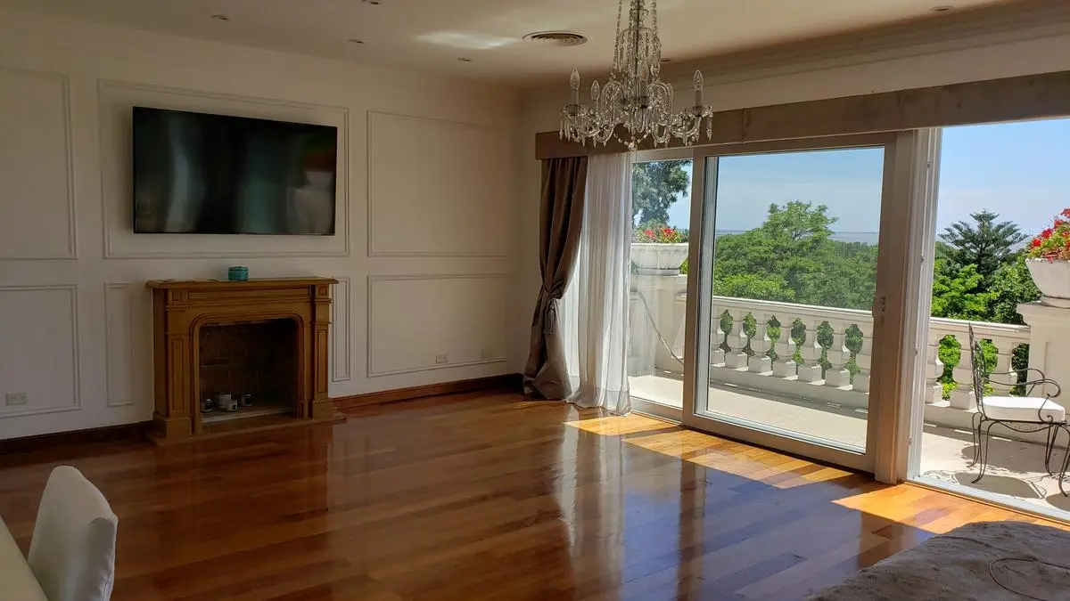 Casa en alquiler en San Isidro, en el casco histórico, al final de la calle Martin y Omar, con vista abierta al río. Se desarrolla en 3 plantas conectadas por ascensor y escaleras. Tiene pisos de mármol Travertino y parquets, techos altos y amplios ventanales. En planta baja cuenta con porch, hall de entrada, toilette, living con chimenea y salida a terraza y galería, comedor separado y office. Incluye bow window con vista al río, a la pileta y a los jardines, además de placard de recepción, equ