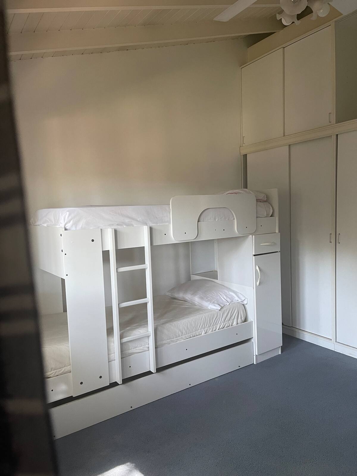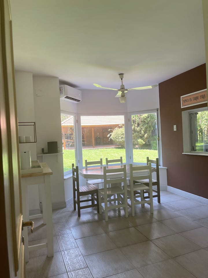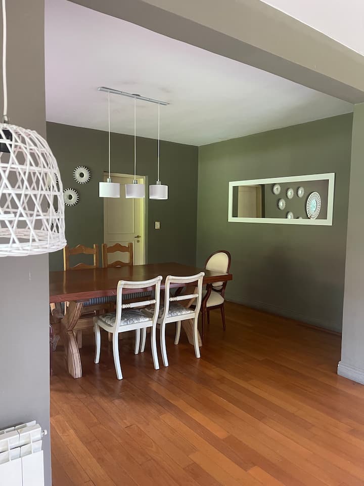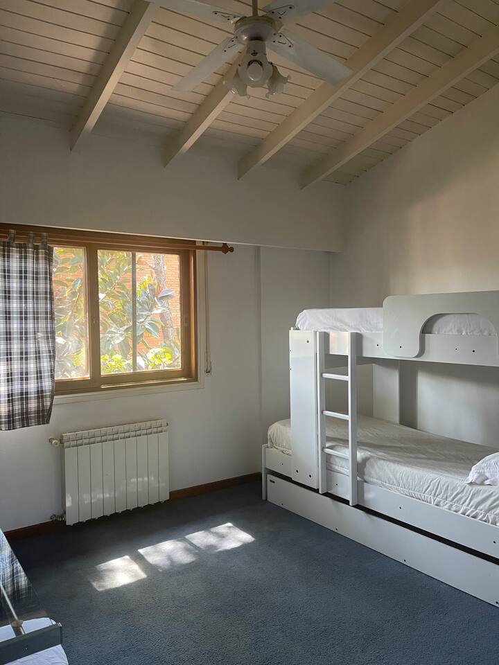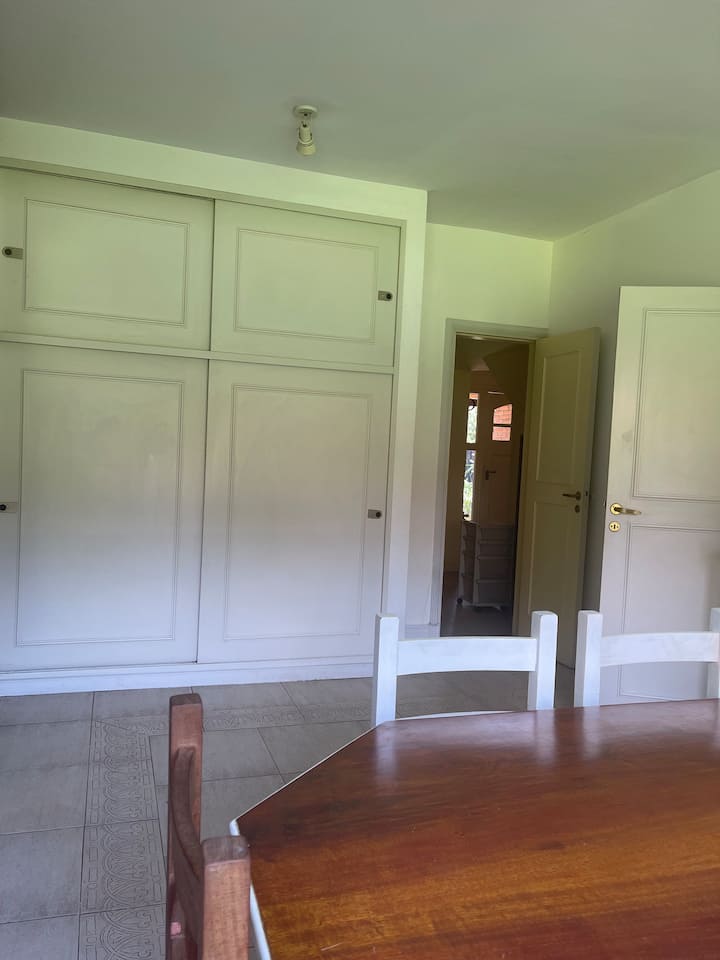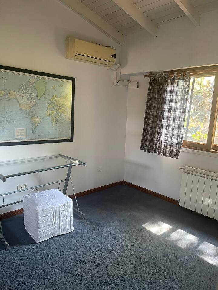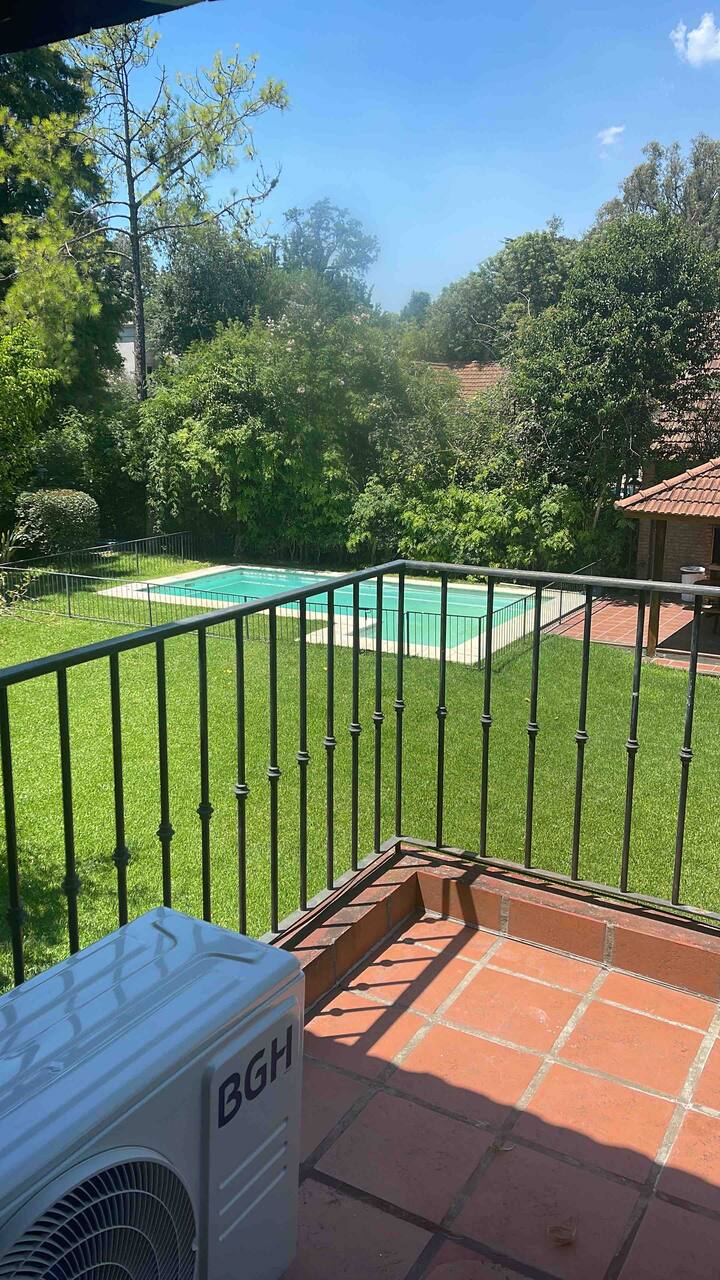 Casa quinta en San Isidro con 4 dormitorios. La suite principal cuenta con 2 placards, 2 balcones y 1 baño completo, con un escritorio empotrado. El segundo dormitorio es suite, con placard y 1 baño completo, y espacio para trabajar a distancia; los dormitorios 3 y 4 comparten un baño completo, tienen 2 camas cada uno, placards grandes y ventanas al jardín lateral, además de área de trabajo remoto. Todas las habitaciones tienen aire acondicionado; en planta baja hay toilette de recepción, doble